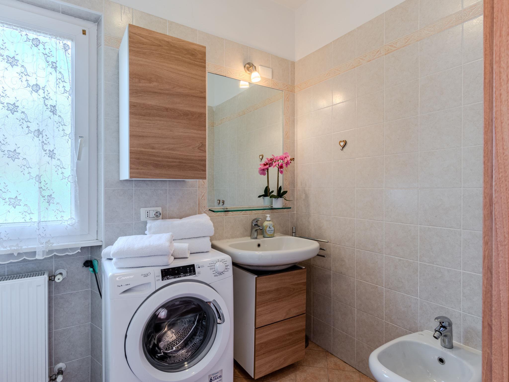 3-Zimmer-Wohnung 60 m2 im 1. Stock, Südostlage. Wohn-/Schlafzimmer mit 1 Doppeldiwanbett, Esstisch, Sat-TV und Klimaanlage. Ausgang zum Balkon. 1 Doppelzimmer mit TV und Klimaanlage. Ausgang zum Balkon. 1 Zimmer mit 1 x 2 Etagenbetten, 1 Ausziehbetten. Offene Küche (4 Kochplatten, Backofen, Geschirrspüler, Tiefkühler, elektrische Kaffeemaschine). Dusche/WC. G-Heizung. Balkon Balkon. Balkonmöbel, Liegestühle (4). Sicht auf den See. Zur Verfügung: Waschmaschine, Bügeleisen, Babybett bis 2 Jahre. Internet (Wireless LAN, gratis). Parkplatz (1 Auto). Bitte beachten: Maximal 1 Haustier/Hund erlaubt. Eigener Eingang. IT013249C2RT377BKU
