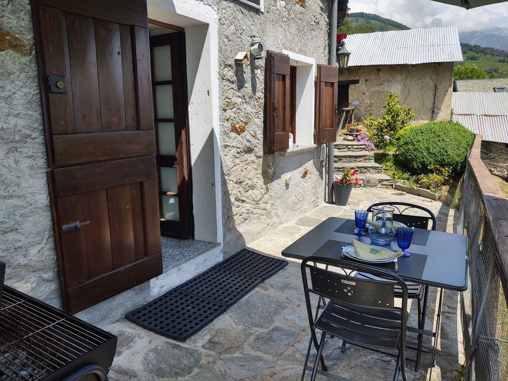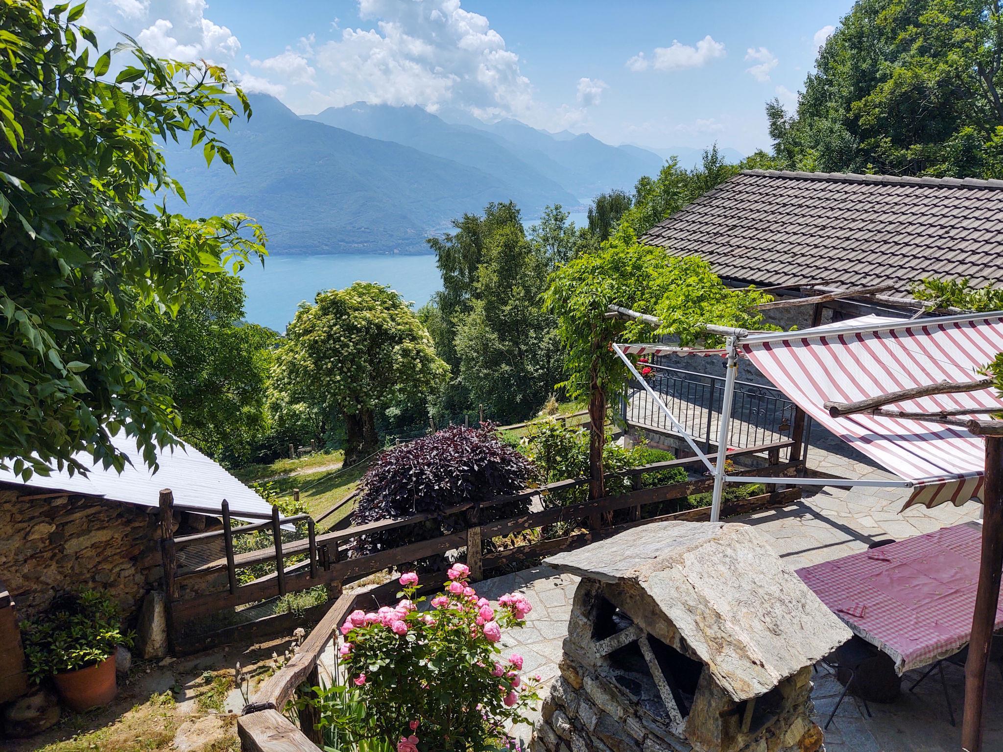 Rustikales Zweifamilienhaus "Baita dei Nonni", 950 m.ü.M., umgeben von Bäumen. Unterhalb von Bodone, in einem Weiler mit 8 Häusern, 8 km vom Zentrum von Gravedona, 60 km vom Zentrum von Como, 61 km vom Zentrum von Lecco, erhöhte Lage am Hang, 8 km vom See. Zur Mitbenutzung: naturbelassenes Grundstück (eingezäunt), terrassierter Garten mit Pflanzen, Wiese. 3 km lange holprige, steile, schmale Zufahrt (250 m Naturweg, Bergstrasse). Treppenweg (20 Stufen) bis zum Haus. Parkplatz beim Haus in 20 m. Einkaufsgeschäft 3 km, Supermarkt 8 km, Restaurant 3 km, Bushaltestelle 3 km, Bahnstation "Como" 60 km, Kieselstrand "Lido di Gravedona" 8 km, Freibad 8 km.