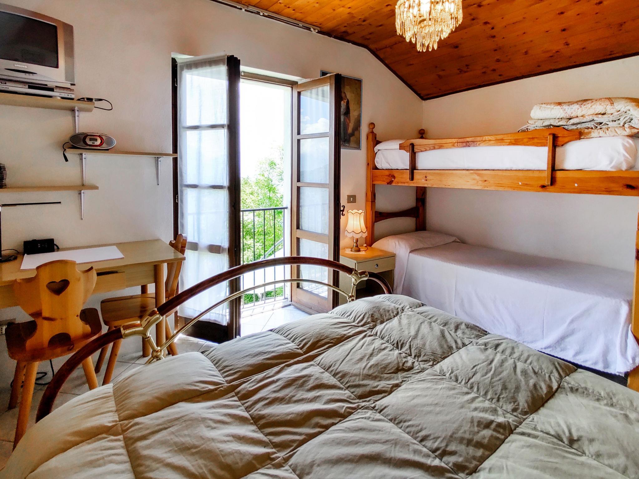 3-Zimmer-Haus 85 m2 auf 2 Stockwerken. Objekt geeignet für 6 Erwachsene + 2 Kinder. Zweckmässig und mit viel Holz eingerichtet: Wohn-/Schlafzimmer mit 1 Bett, 1 Doppeldiwanbett, 1 Klappbett, Esstisch, Sat-TV und E-Heizofen. Ausgang zur Terrasse. Offene Küche (2 Kochplatten, Toaster, Wasserkocher, Mikrowelle, Tiefkühler, elektrische Kaffeemaschine). Dusche/WC. E-Heizung. Obergeschoss: (Aussentreppe) Wohn-/Esszimmer mit offenem Kamin, Esstisch, Sat-TV und Heizofen. 1 Zimmer mit 1 x 2 Etagenbetten, 1 Doppelbett. Kleine, offene Küche (Backofen, Geschirrspüler, 4 Flammen, Toaster, Wasserkocher, Tiefkühler, elektrische Kaffeemaschine). Sitzbad/WC. Heizung nicht in allen Räumen. Balkon, Terrasse teilweise überdacht Terrasse, Gartensitzplatz. Terrassenmöbel, Balkonmöbel, Gartengrill, Liegestühle (8). Herrliche Sicht auf den See. Zur Verfügung: Waschmaschine, Kinderhochstuhl, Babybett. Internet (WLAN, extra). Bitte beachten: Nichtraucher-Unterkunft. Maximal 2 Haustiere/Hunde erlaubt. Keine interne Verbindung zwischen den Etagen. IT013178C2O77ZN8MH