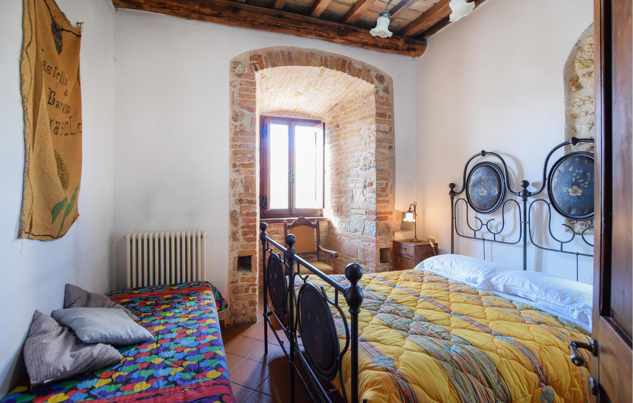 Erleben Sie einen einzigartigen Aufenthalt in dieser charmanten Ferienwohnung in einem Schloss aus dem 13. Jahrhundert. Die dicken Steinmauern und rustikalen Holzbalken verleihen der Unterkunft eine besondere Atmosphäre, während die gemütliche Einrichtung Ihnen modernen Komfort bietet. Der offene Wohnbereich mit gut ausgestatteter Küche lädt Sie zum Verweilen ein, und das Schlafzimmer sorgt für erholsame Nächte.