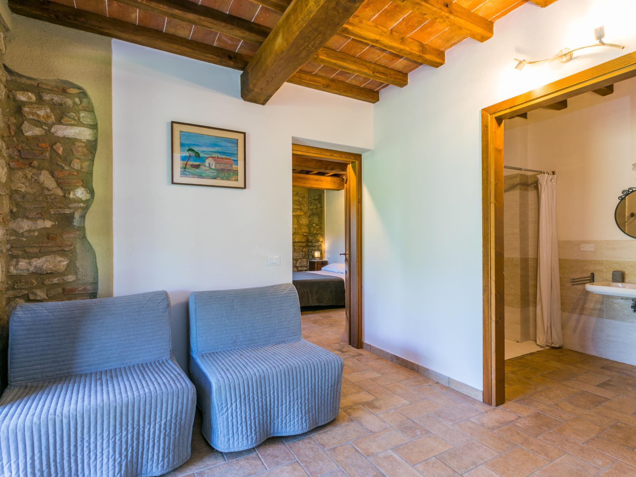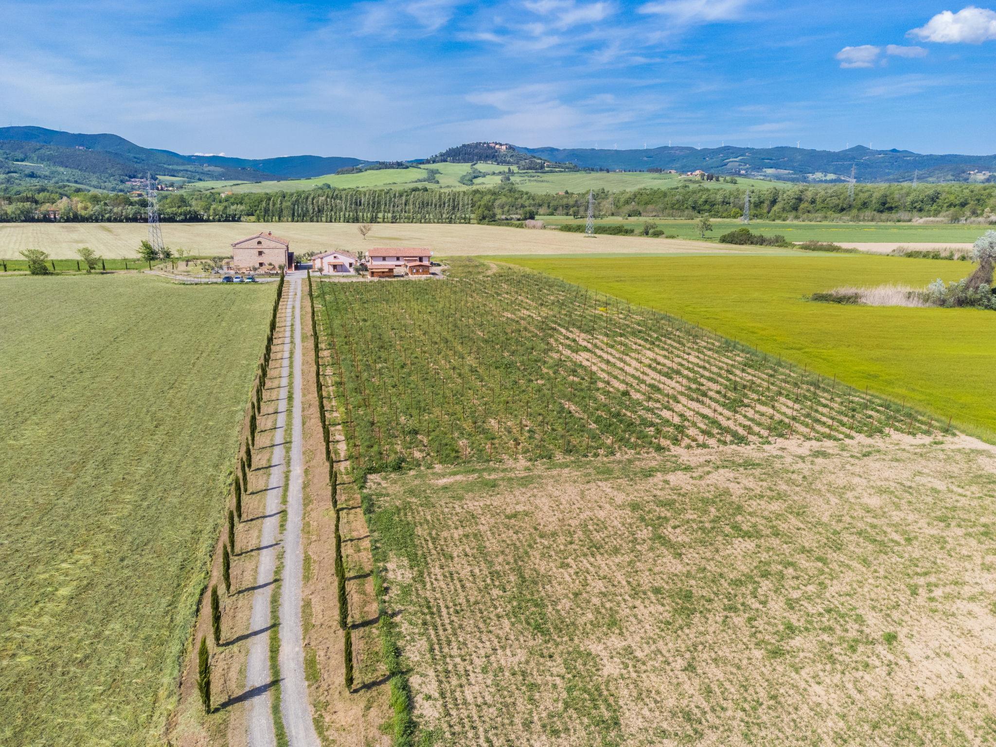Diese schöne, liebevoll restaurierte Anlage liegt mitten in den Feldern des Val di Cecina, nur ein paar Schritte vom gleichnamigen Flusslauf entfernt. Besonders viel Aufmerksamkeit wurde beim Bau des Pools gelegt, wo ein Sprudelbad (ca. 11 Personen) und ein Kinderbecken in Stein gemeisselt, entstanden sind. Ferienanlage "Podere la Querciola", auf 2 Stockwerken, renoviert im Jahre 2021, umgeben von Wiesen und Feldern. Im Ortsteil Casino di Terra, 11 km vom Zentrum von Guardistallo, 14 km vom Zentrum von Cecina, alleinstehende, ruhige Lage, 16 km vom Meer. Zur Mitbenutzung: Grundstück mit Pflanzen und Bäumen, Schwimmbad (6 x 11 m, 150 cm tief, saisonale Verfügbarkeit: 01.Mai. - 15.Okt.). Kinderbecken, Aussendusche, Sprudelbad, Gartenmöbel, Grill. In der Anlage: Wireless LAN, Waschmaschine (extra). Zufahrt (700 m Naturweg). Parkplatz. Einkaufsgeschäft 11 km, Restaurant 2 km, Bar 2 km, Bushaltestelle 1.1 km, Sandstrand "Marina di Cecina" 16 km. Nahe gelegene Sehenswürdigkeiten: Volterra 24 km, Pisa 70 km, Firenze 100 m.