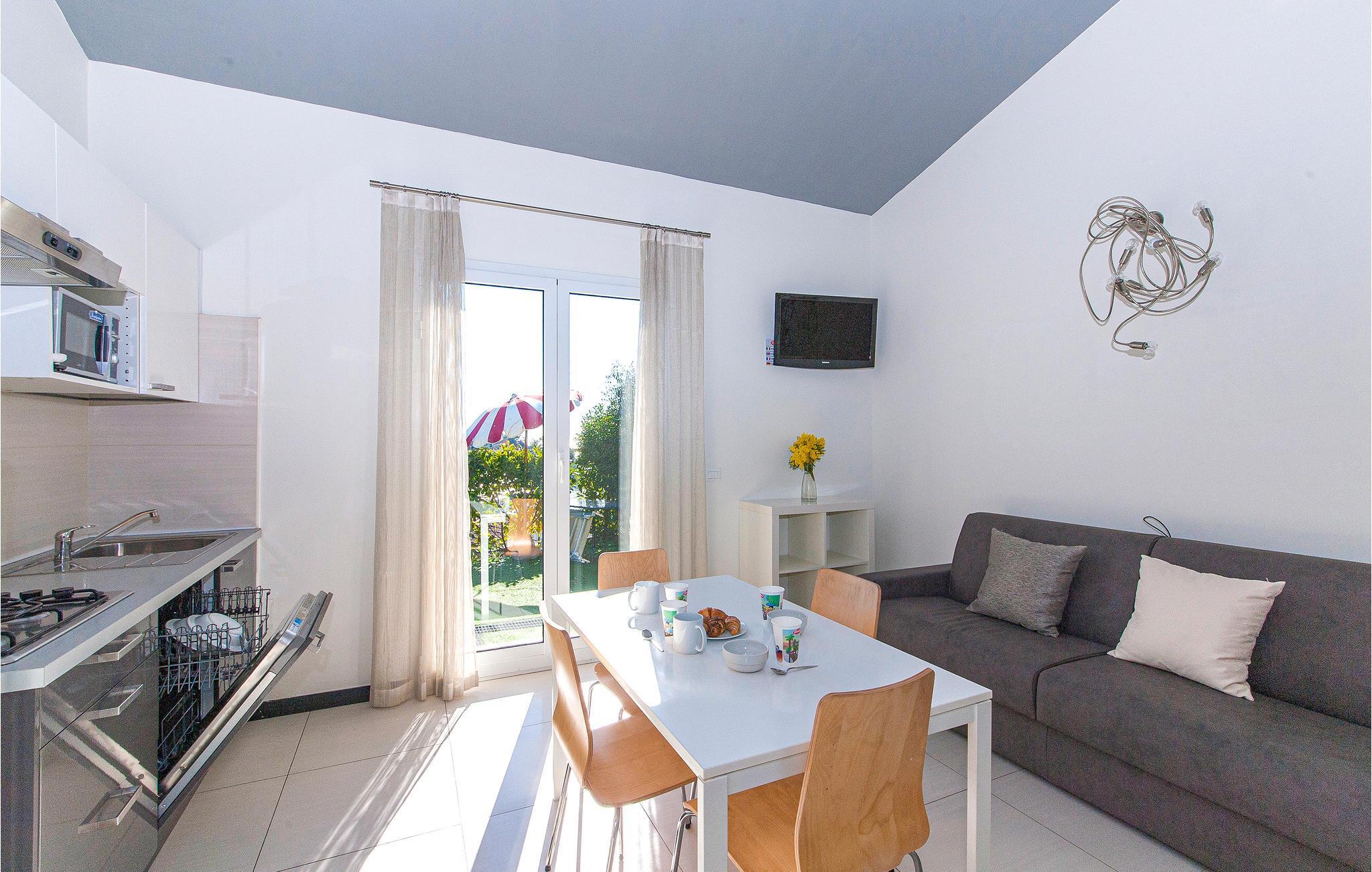 Touristische Anlage in einem ca. 12.000 m² großen Gut mit Gärten und Olivenhainen, in sonniger Panoramalage mit schönem Ausblick auf das Meer und die umliegenden Hügel. Zwei Pools sind im Komplex verfübar: Der 'blaue' Pool mit einem für Kinder geeigneten Bereich und großem mit Liegen und Sonnenschirmen ausgestattem Solarium; der Pool ' der Wasserfälle' mit einem weiteren 50cm tiefen Becken für Kinder und Jacuzzi für 8 Personen. Mehrzweckplatz (Tennis, Fußball, Baskettball). Minigolf. Internet-Point. Restaurant. Kostenloser Shuttle-Service mit Minibus zum/vom Strand mit Reservierungspflicht am Vortag. Großer Parkplatz (ein Parkplatz für jede Wohnung vorhanden); Wäscheservice auf Anfrage. Babybett und Kinderstuhl auf Anfrage. Abbildungen sind Wohnbeispiele. S. auch ILL149-150, ILL160 und ILL277. Autobahn in ca. 1 Km Luftlinie. Anreise ausschließlich samstags zwischen 16-19 Uhr. Abreise 8-10 Uhr.