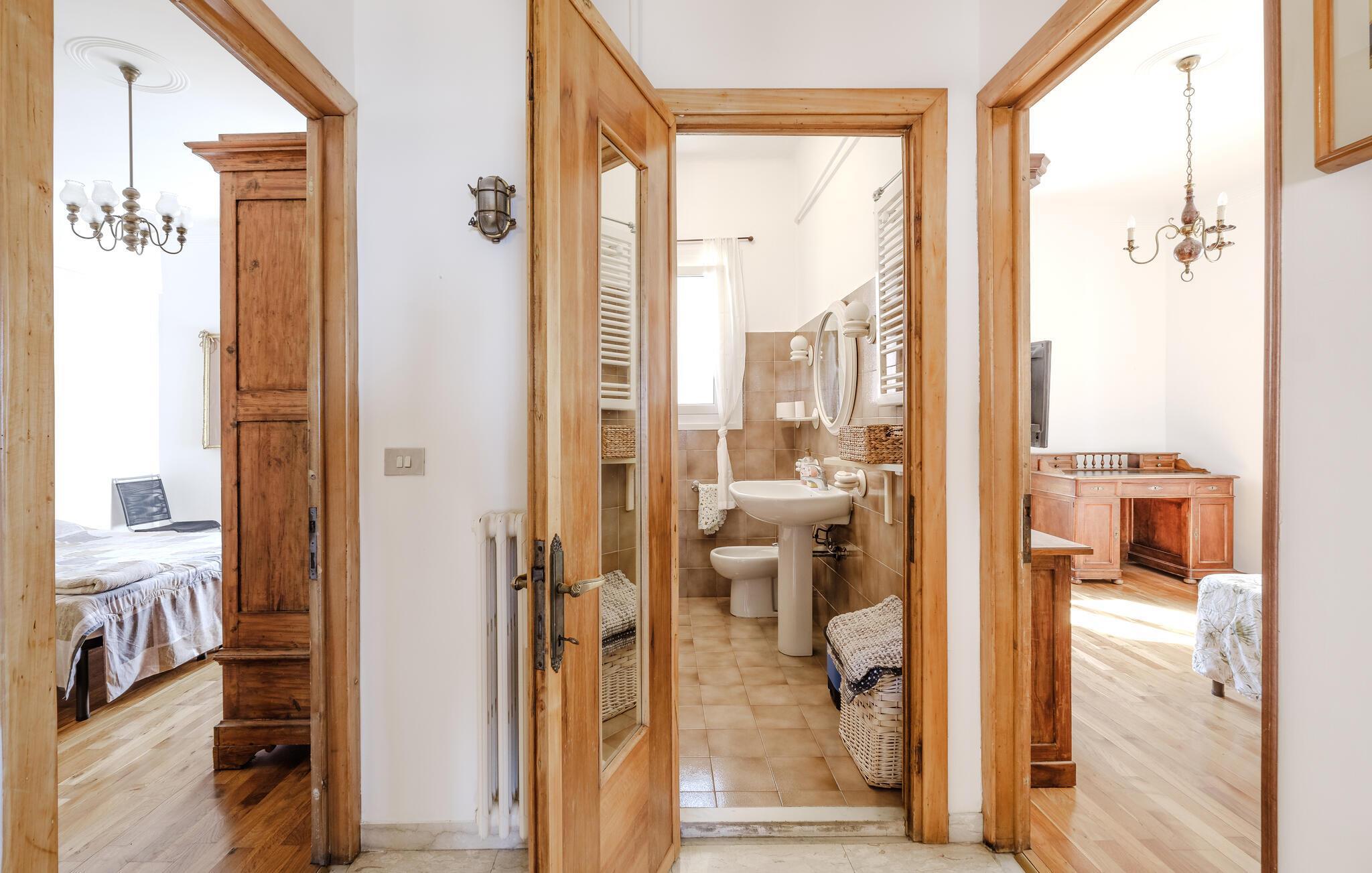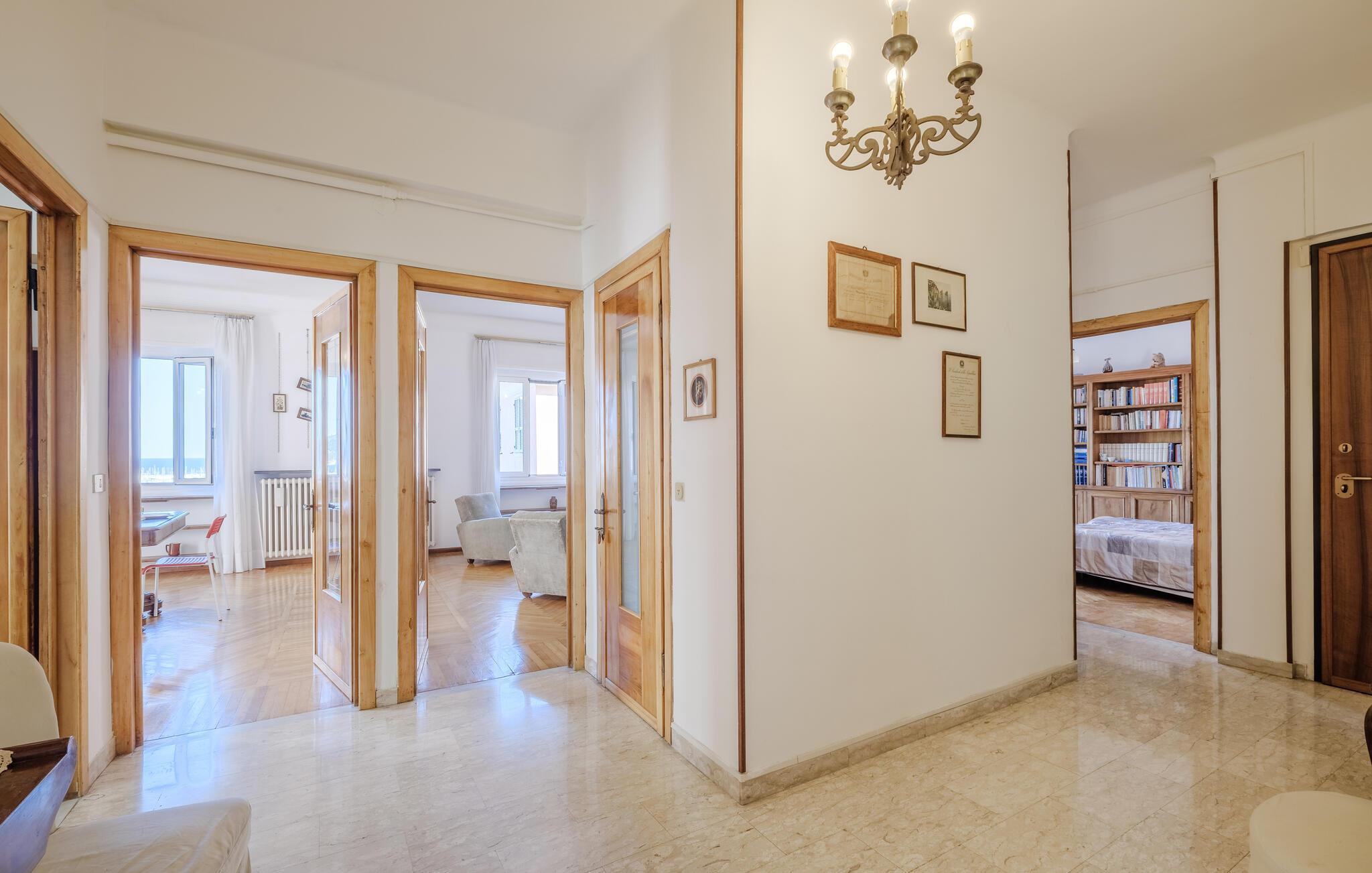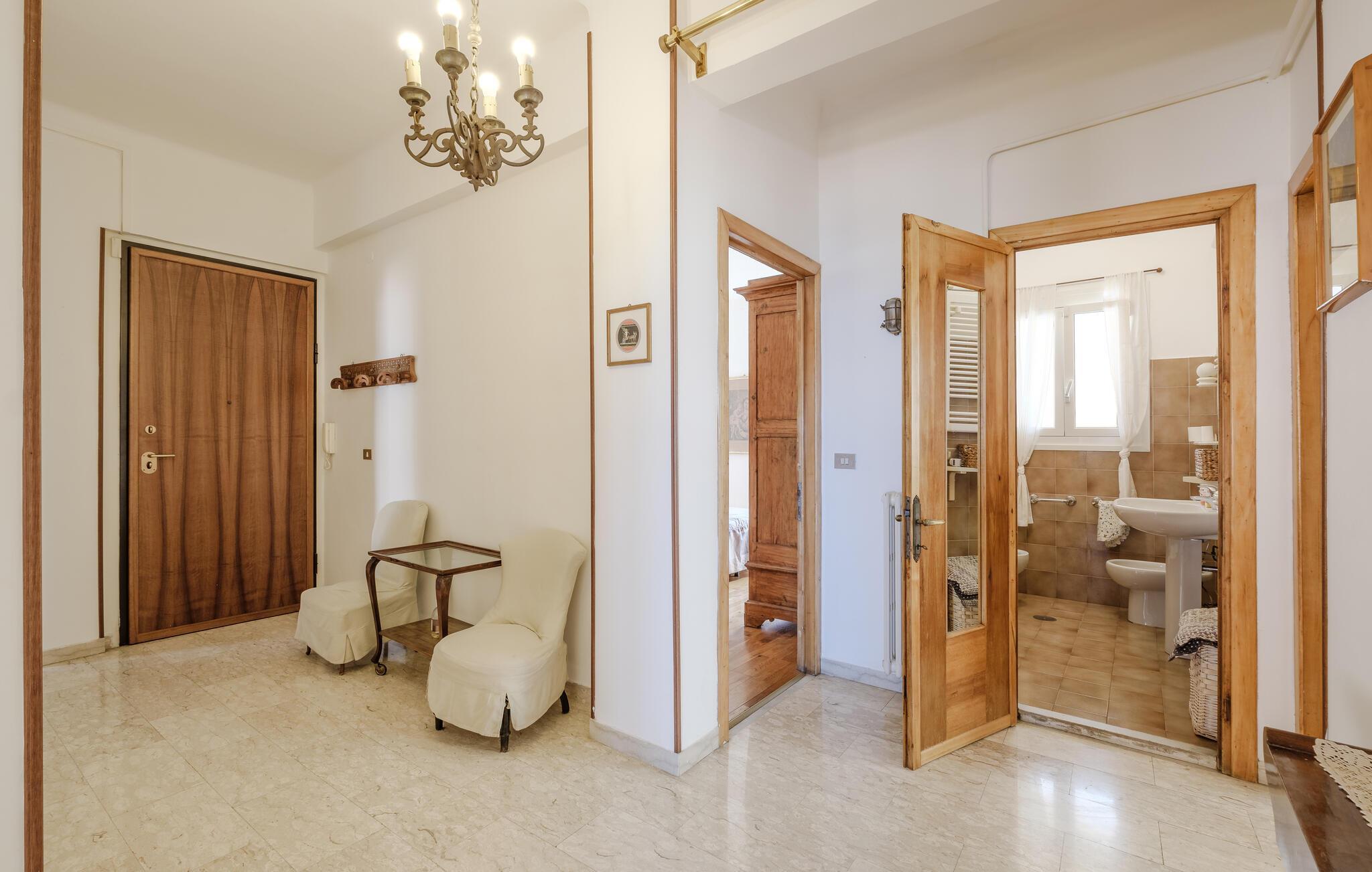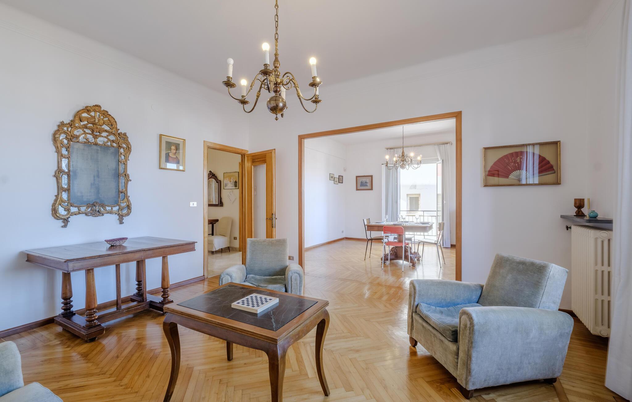 Die Wohnung begrüßt ihre Gäste in idealer Lage in unmittelbarer Entfernung zum Meer. Mit der wohnlichen Einrichtung und gepflegten Holzböden ist sie der ideale Ort für einen erholsamen Urlaub, in dem Badespaß und Strandvergnügen nicht zu kurz kommen. Nach Ihren Unternehmungen können Sie in der Küche gemeinsam kochen, es sich anschließend im Wohnzimmer gemütlich machen und auf bequemen Sofas noch lange plaudern.