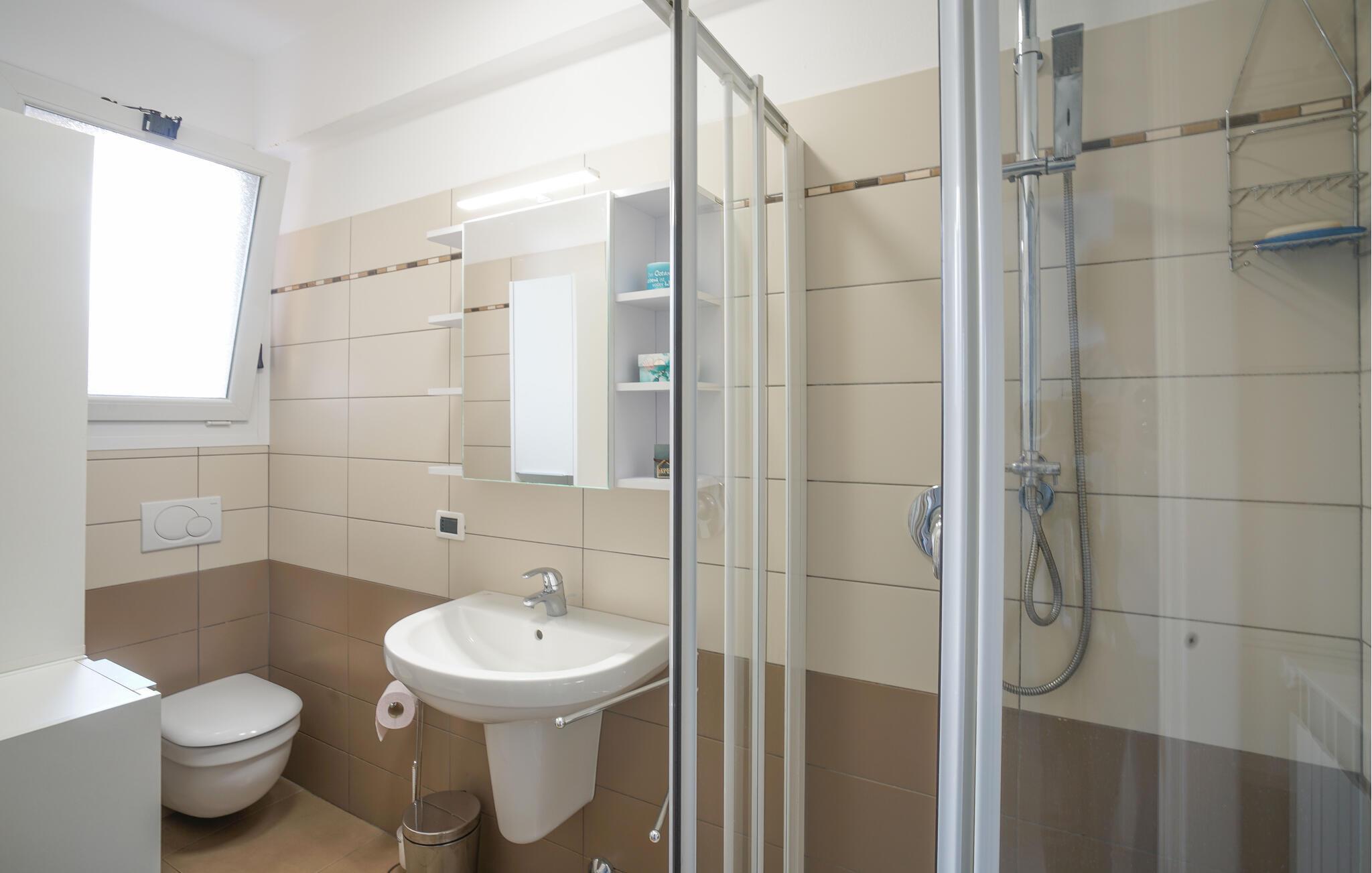 Badezimmer (nr. 1) - WC. Warmes und kaltes Wasser. Dusche