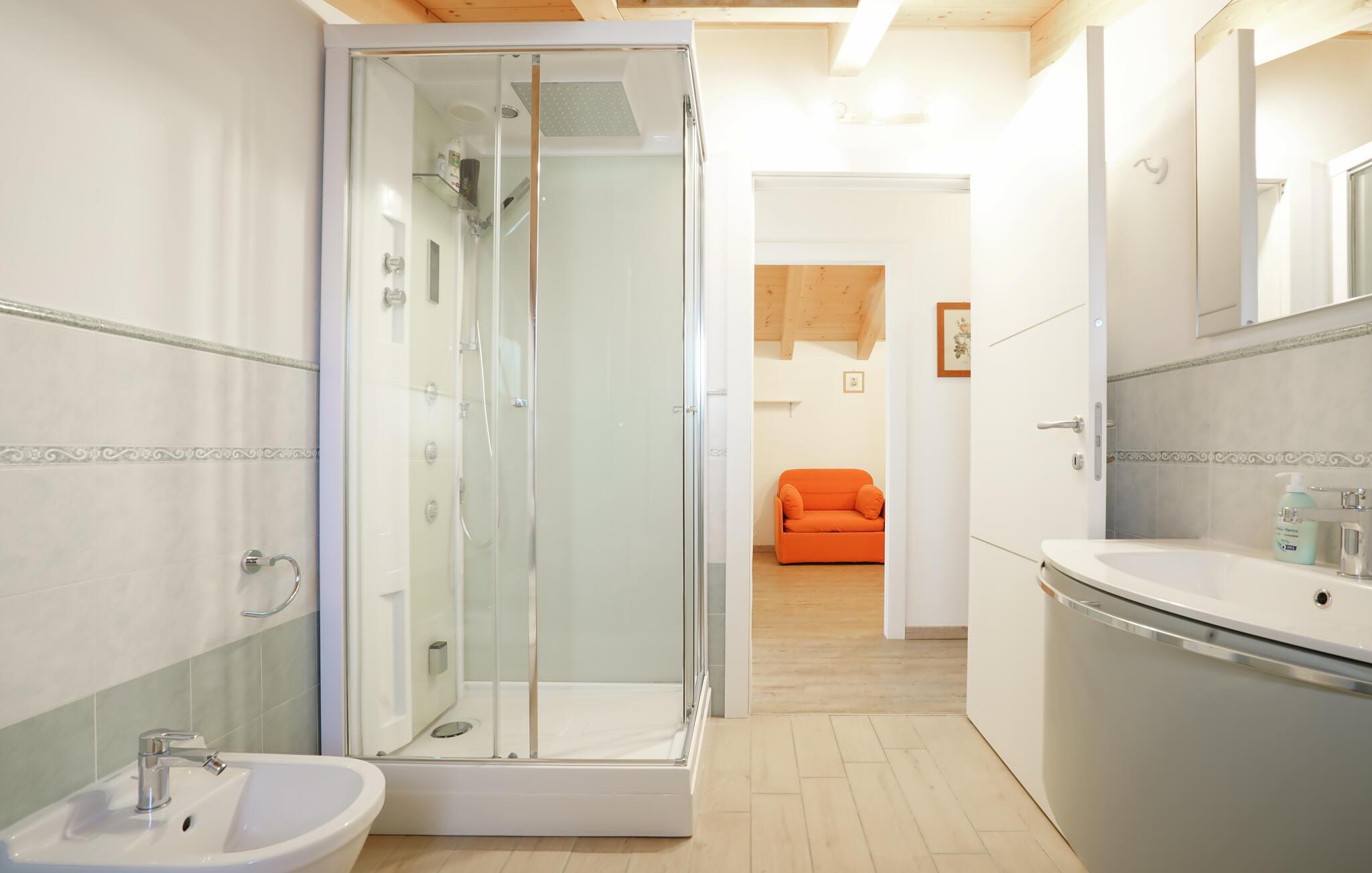 Badezimmer (nr. 2) - WC. Warmes und kaltes Wasser. Dusche