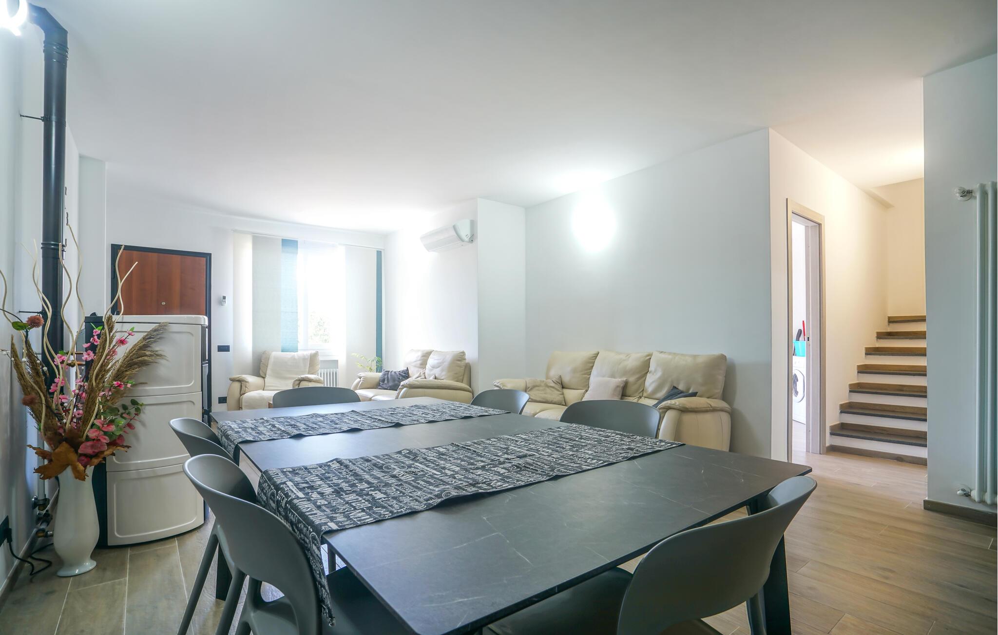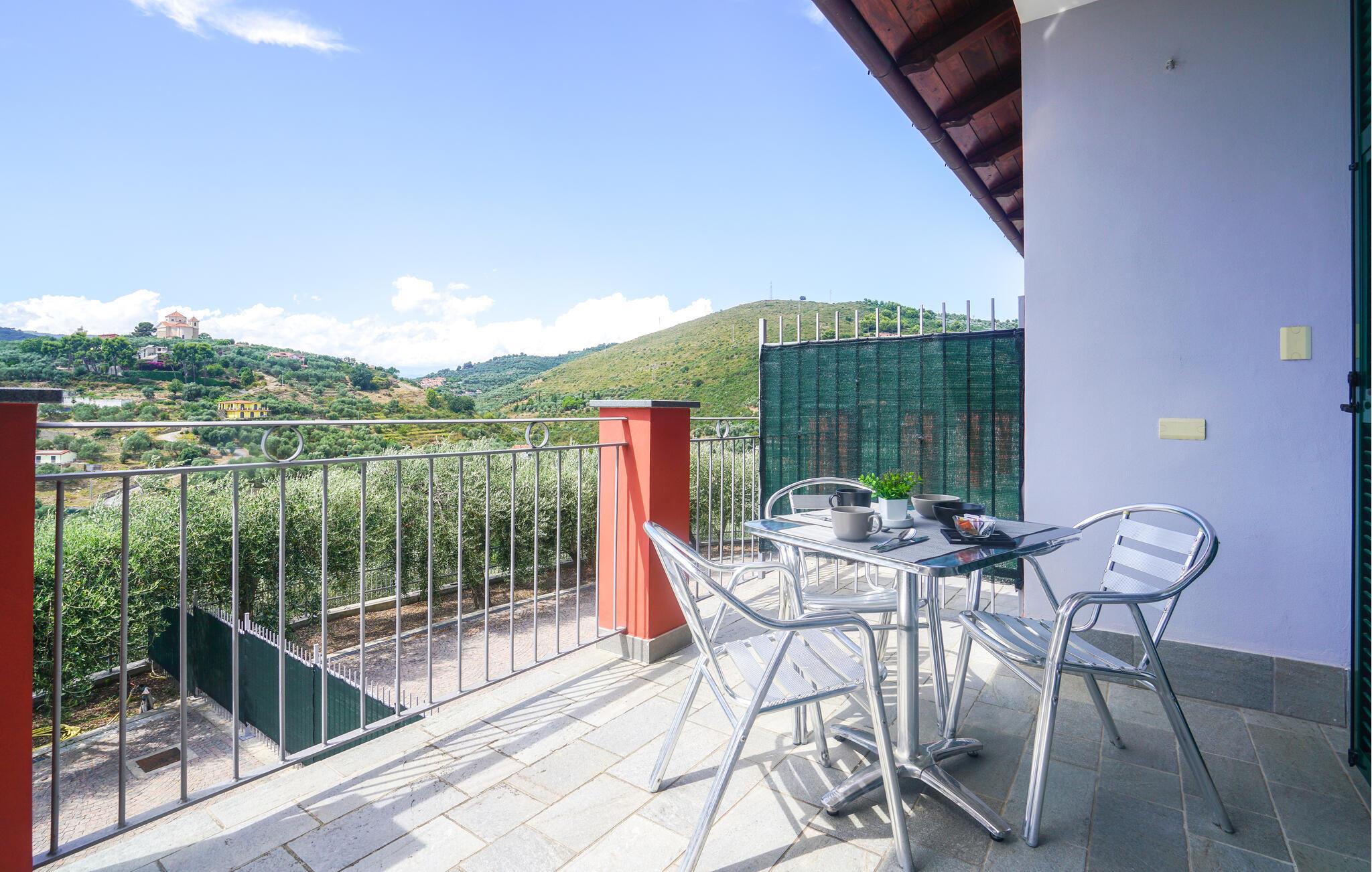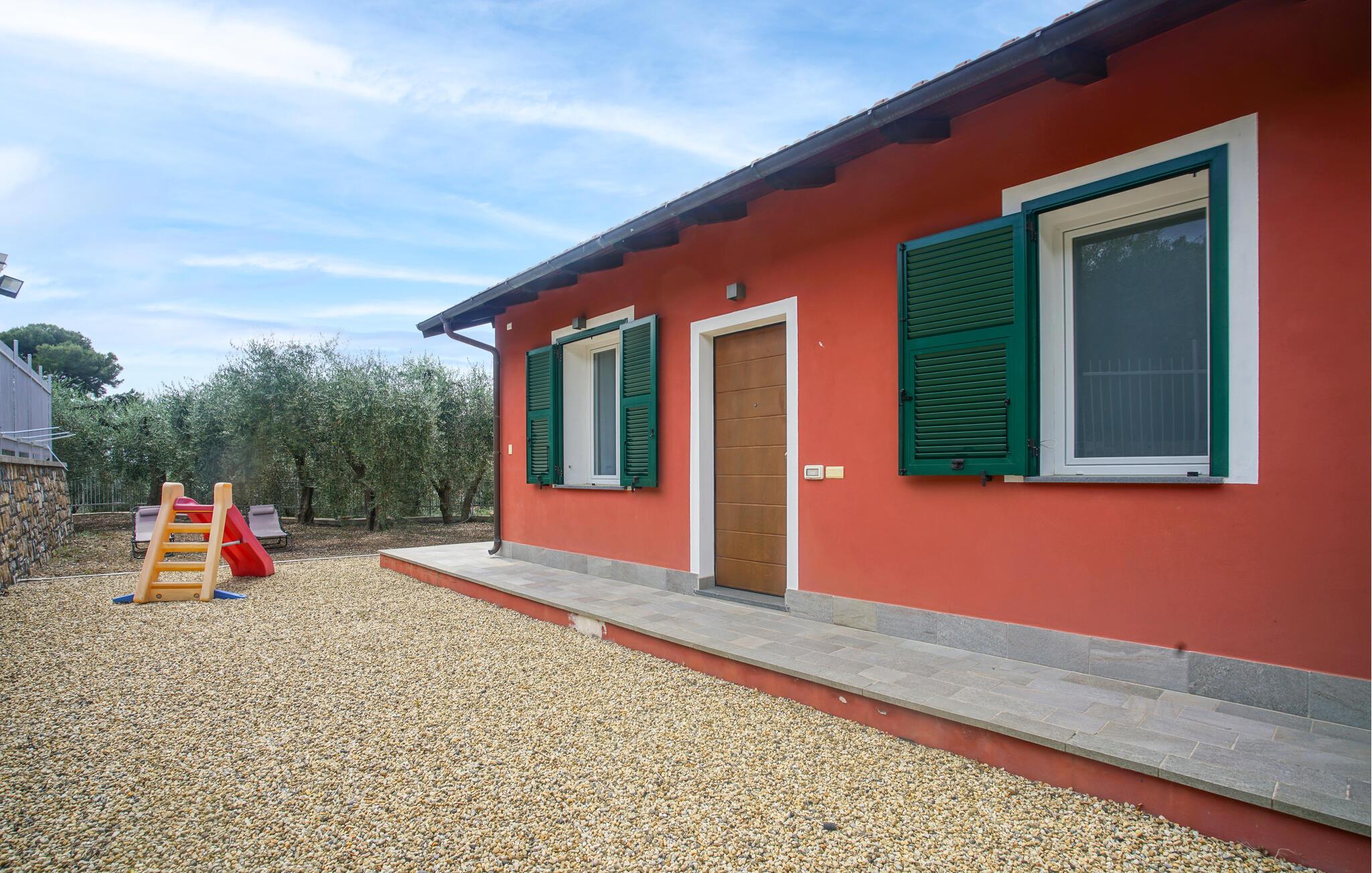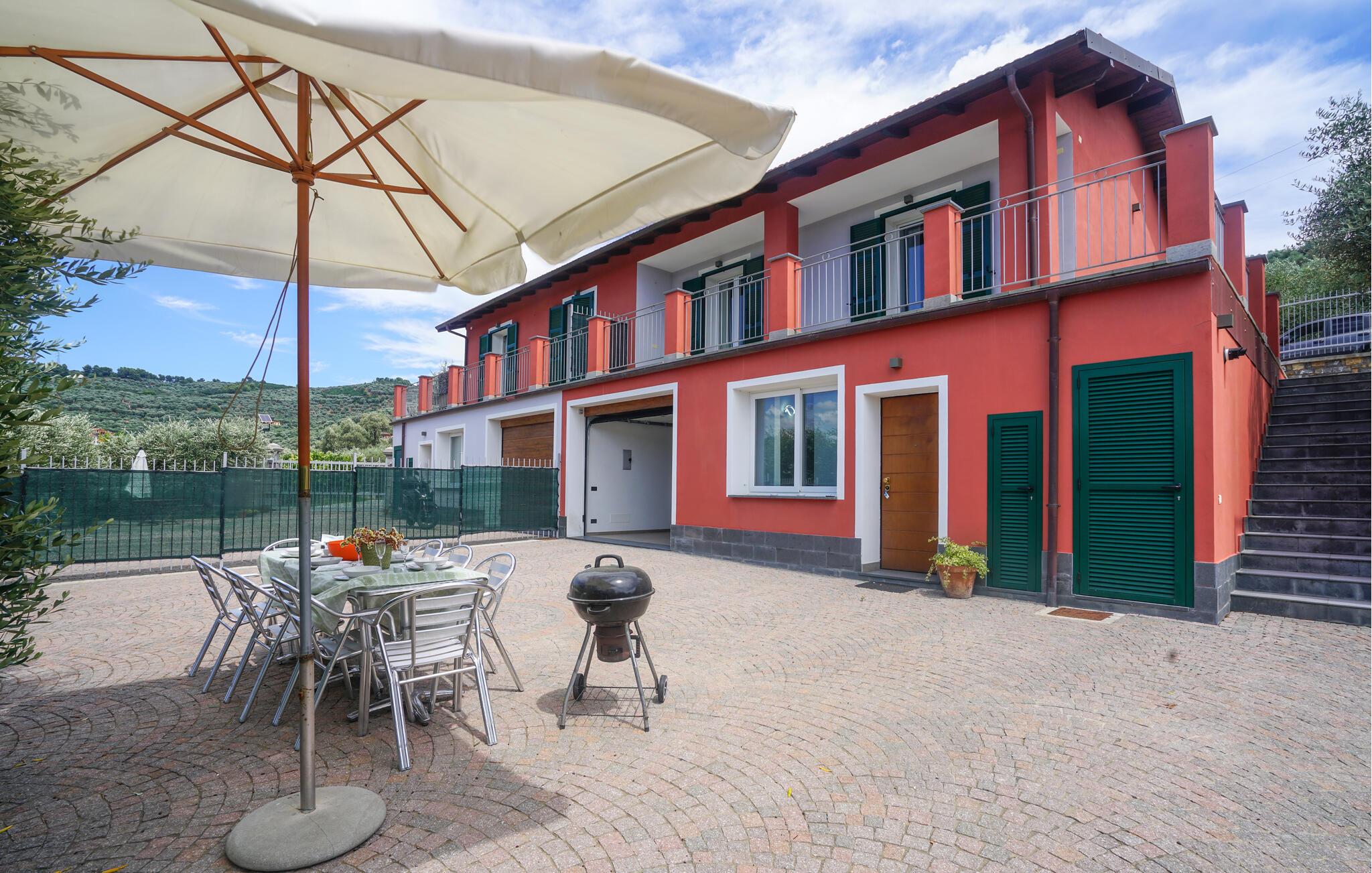 Willkommen in diesem großzügigen Doppelhaus inmitten des grünen, hügeligen Hinterlands der Küstenstadt Imperia. Hier werden Sie von einem gepflegten, modern eingerichteten Interieur begrüßt, in dem Sie sich wie zu Hause fühlen können. Zaubern Sie Ihre Lieblingsmahlzeiten, planen Sie Ihre Unternehmungen am einladenden Esstisch und streamen Sie nach einem langen Tag einen spannenden Film auf dem Sofa.