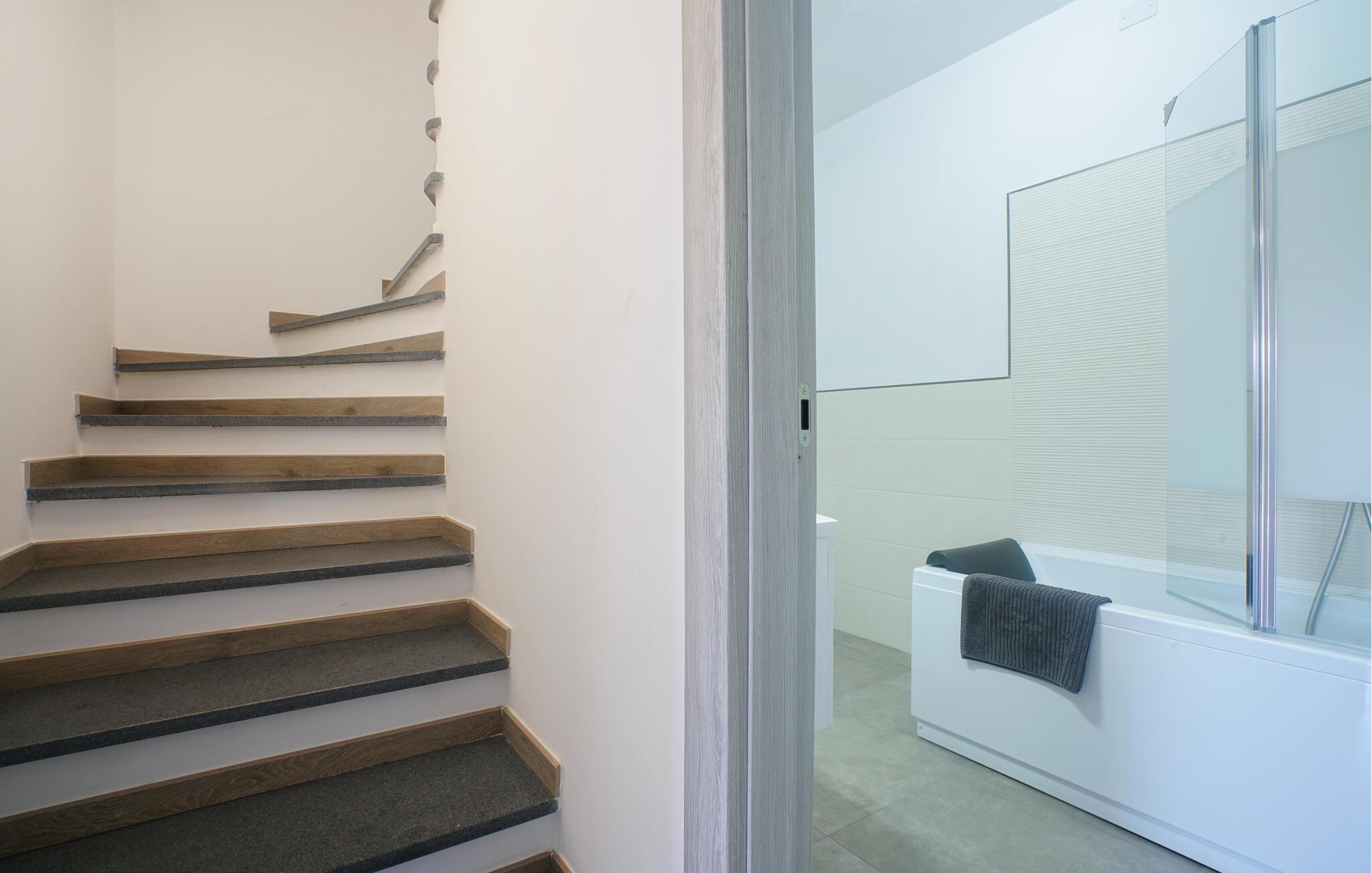- WC mit warmem und kaltem Wasser, Handbrause, Badewanne und Dusche