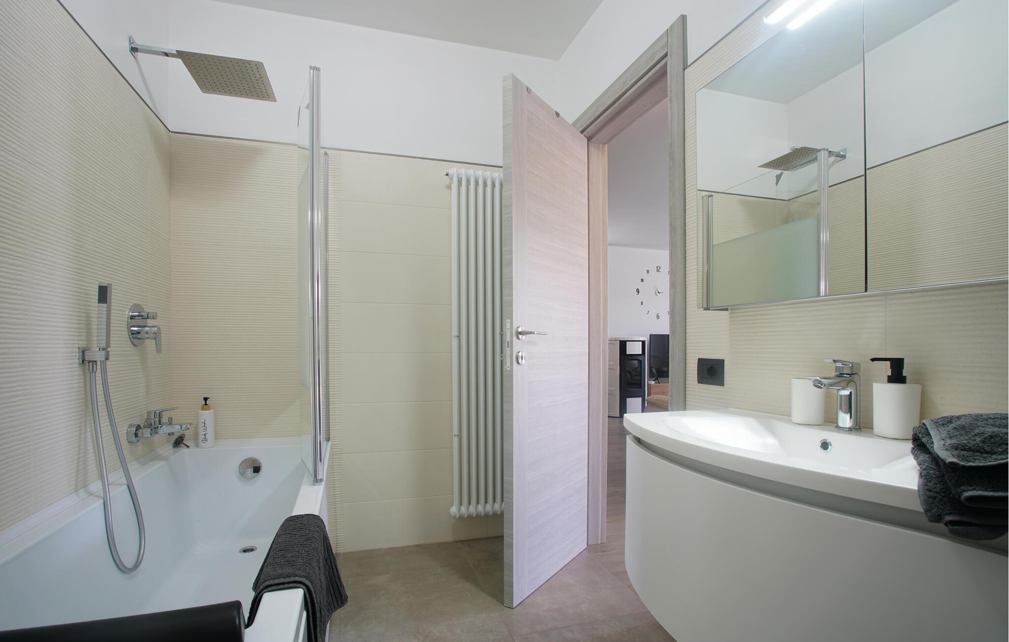 Badezimmer (nr. 1) - WC. Warmes und kaltes Wasser. Handdusche, Wanne und Dusche