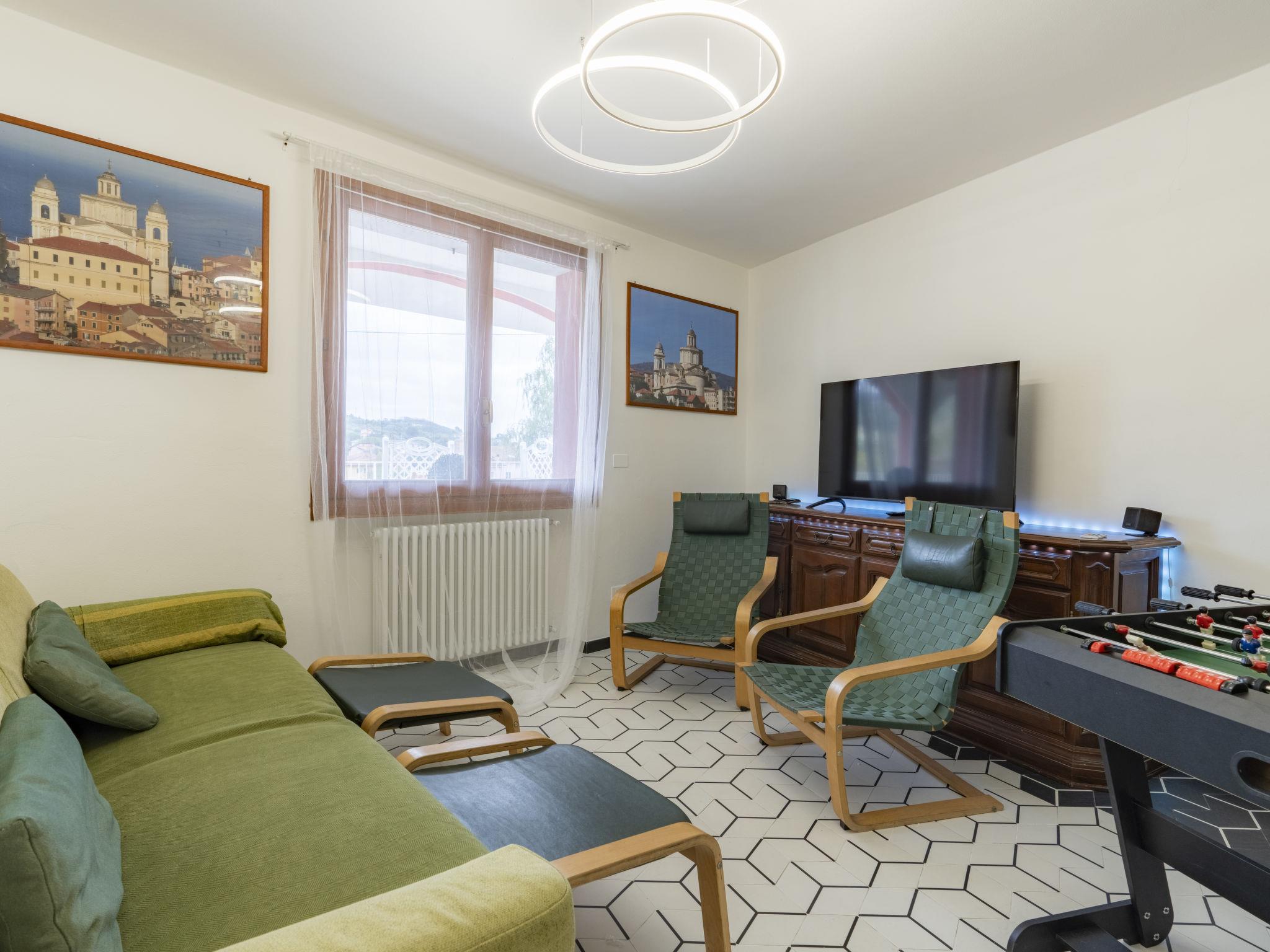 Schönes, freistehendes, komfortables Zweifamilienhaus auf 2 Stockwerken, umgeben von Bäumen und Wiesen. 2 Wohnungen im Ferienhaus. 1 km vom Zentrum von Imperia Porto Maurizio, 25 km vom Zentrum von San Remo, 90 km vom Zentrum von Nizza, alleinstehende, sonnige, erhöhte Lage am Hang, in einem Wohnquartier, 2 km vom Meer. Zur Mitbenutzung: grosser, gepflegter Garten (eingezäunt), Liegewiese. Zur Alleinbenutzung: kleiner, schöner, gepflegter terrassierter Garten. Im Hause: Tischfussball, Einstellraum für Fahrräder. Parkplatz (für 3 Autos) auf dem Grundstück. Einkaufsgeschäft, Lebensmittelgeschäft, Supermarkt, Einkaufszentrum 800 m, Restaurant 50 m, Bar 1 km, Bäckerei 1 km, Café 1 km, Fahrradverleih 1 km, Bushaltestelle 500 m, Bahnstation "Imperia Oneglia" 5 km, Sandstrand 2 km, Kieselstrand 2 km. Radweg 1.5 km. Nahe gelegene Sehenswürdigkeiten: Pista ciclabile lungo mare 1.5 km, Porto Maurizio Altstadt Parasio 1 km, Valloria das Dorf mit 150 bemalten Türen 14 km, Cervo 24 km, Finale Ligure Mountainbike Paradies 50 km, Monaco Monte Carlo 70 km.