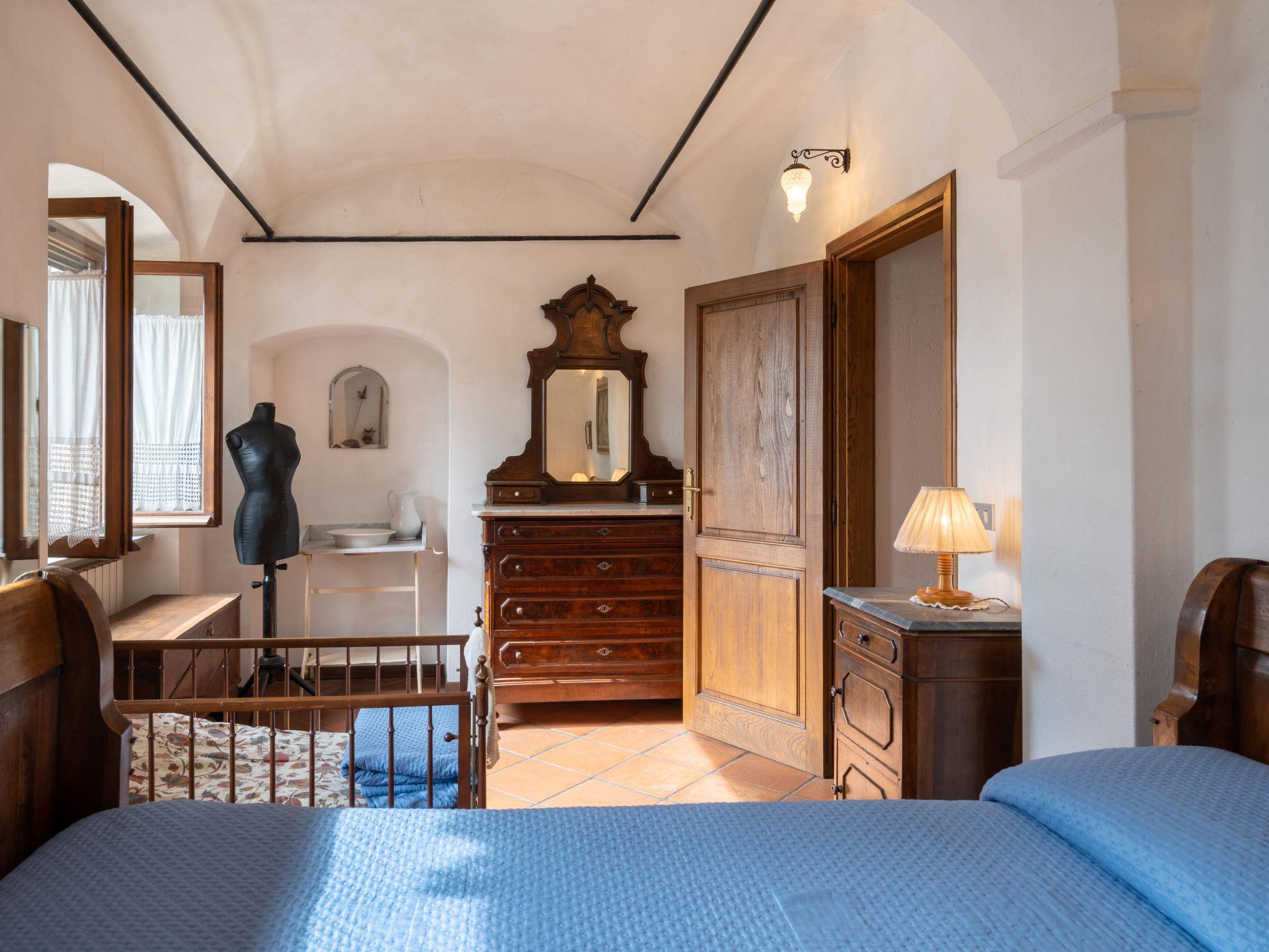 "Casa Massabovi (IMP244)", 5-Zimmer-Haus 150 m2 auf 3 Stockwerken. Antik eingerichtet: offenes grosses Wohn-/Esszimmer mit 2 Betten (90 cm), offenem Kamin, Esstisch und Sat-TV. Kleine, offene Küche (Backofen, Geschirrspüler, 4 Flammen, Toaster, Wasserkocher, elektrische Kaffeemaschine). Dusche/WC. Obergeschoss: 1 Zimmer mit 1 franz. Bett (130 cm). 1 Zimmer mit 1 Doppelbett (1 x 140 cm). 1 Zimmer mit 1 Doppelbett (1 x 160 cm). Dusche/WC. 2. Obergeschoss: Wohnzimmer mit Esstisch. Ausgang zur Terrasse. G-Heizung. Terrasse teilweise überdacht, Südlage. Terrassenmöbel. Schöne Sicht auf die Landschaft. Zur Verfügung: Waschmaschine, Kinderhochstuhl, Babybett. Internet (Wireless LAN, gratis). Maximal 2 Haustiere/Hunde erlaubt. IT008024C2ZAQSK9R6