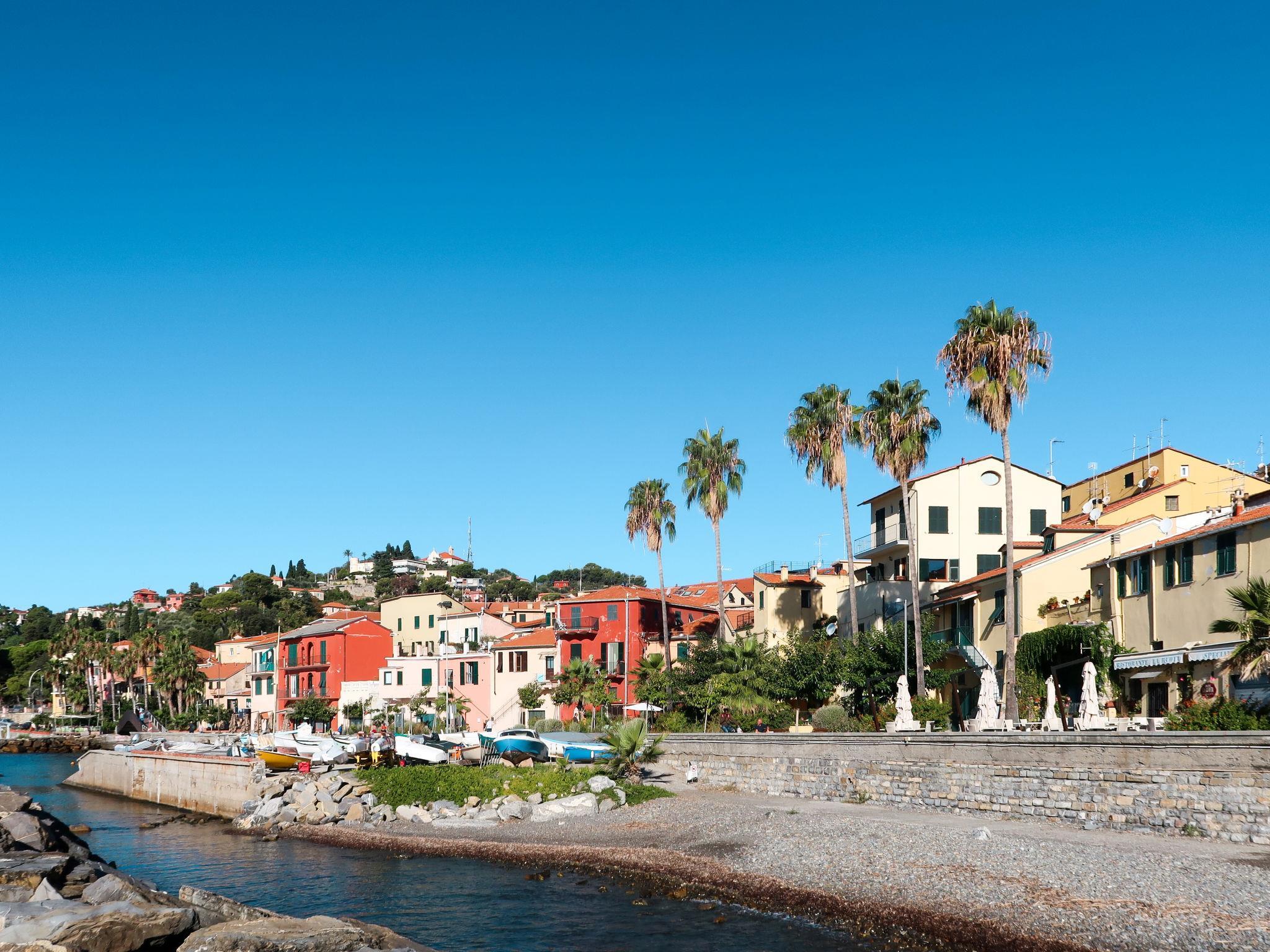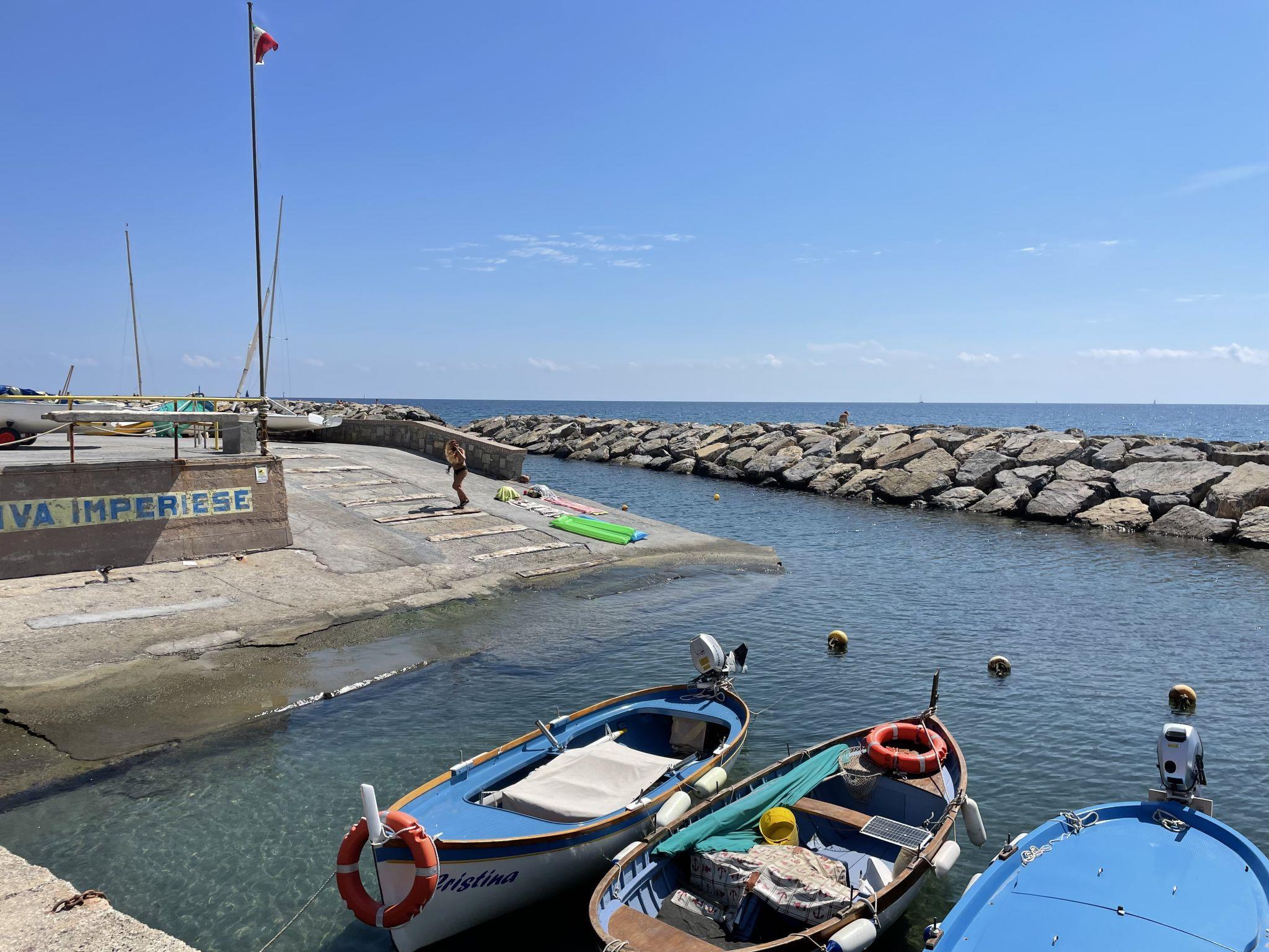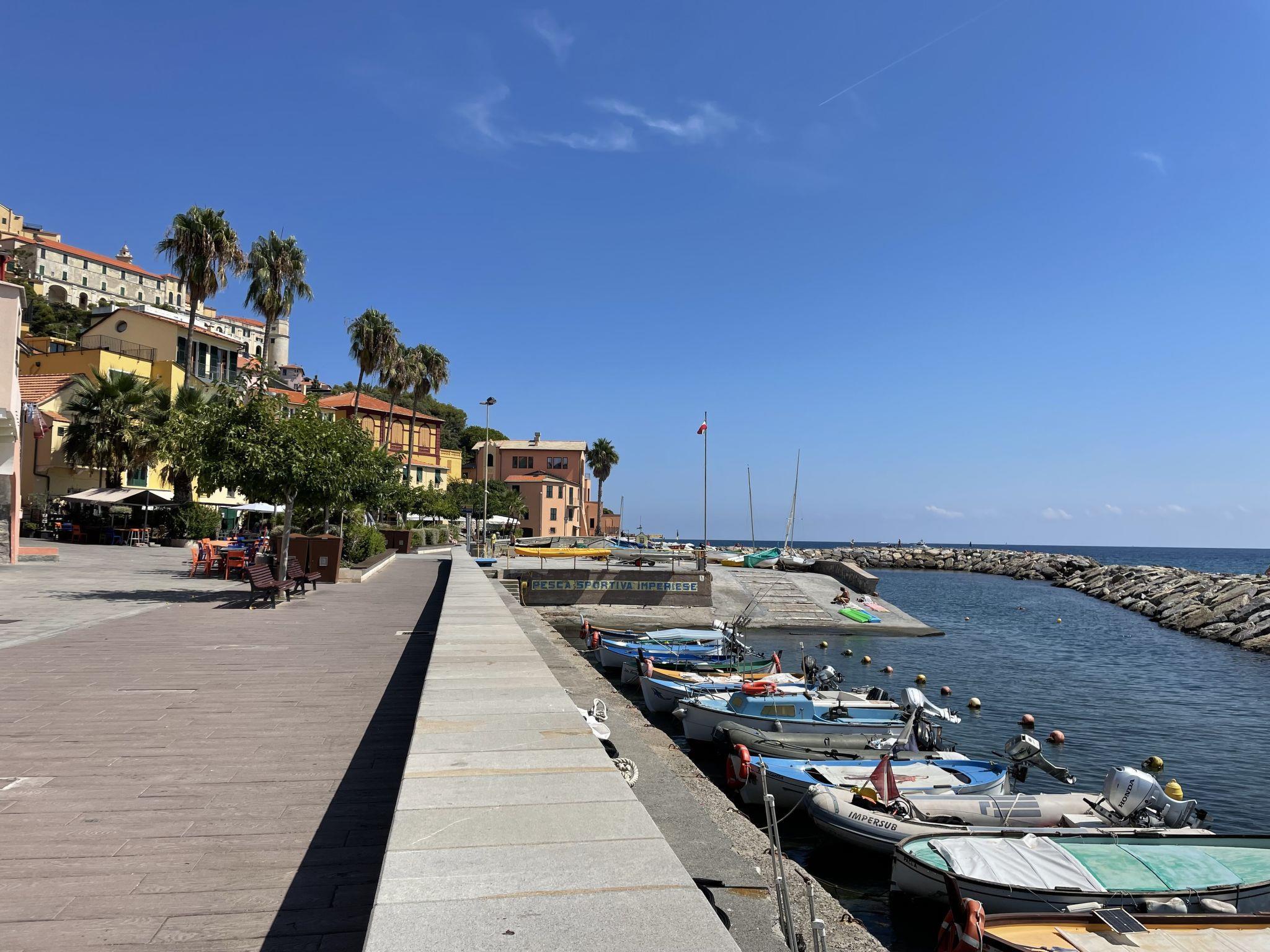 Schönes Zweifamilienhaus "Casa del Sole". Im Ortsteil Borgo Foce, 100 m vom Zentrum von Imperia Porto Maurizio, 23.5 km vom Zentrum von San Remo, 23.5 km vom Zentrum von Alassio, zentrale, belebte, sonnige Lage, 10 m vom Meer, direkter Zugang zum Strand. Fussweg bis zum Haus. Öffentliche Parkplätze 200 m extra. Supermarkt 800 m, Restaurant 50 m, Bar, Café, Fahrradverleih 10 m, Bushaltestelle 150 m, Bahnstation "Imperia" 4.5 km, Sandstrand 500 m, Kieselstrand 20 m (klein), Steinstrand (klein), Felsstrand 20 m (klein), Freibad 5 km, Hallenbad 2 km. Jacht-Hafen 600 m, Radweg 800 m.