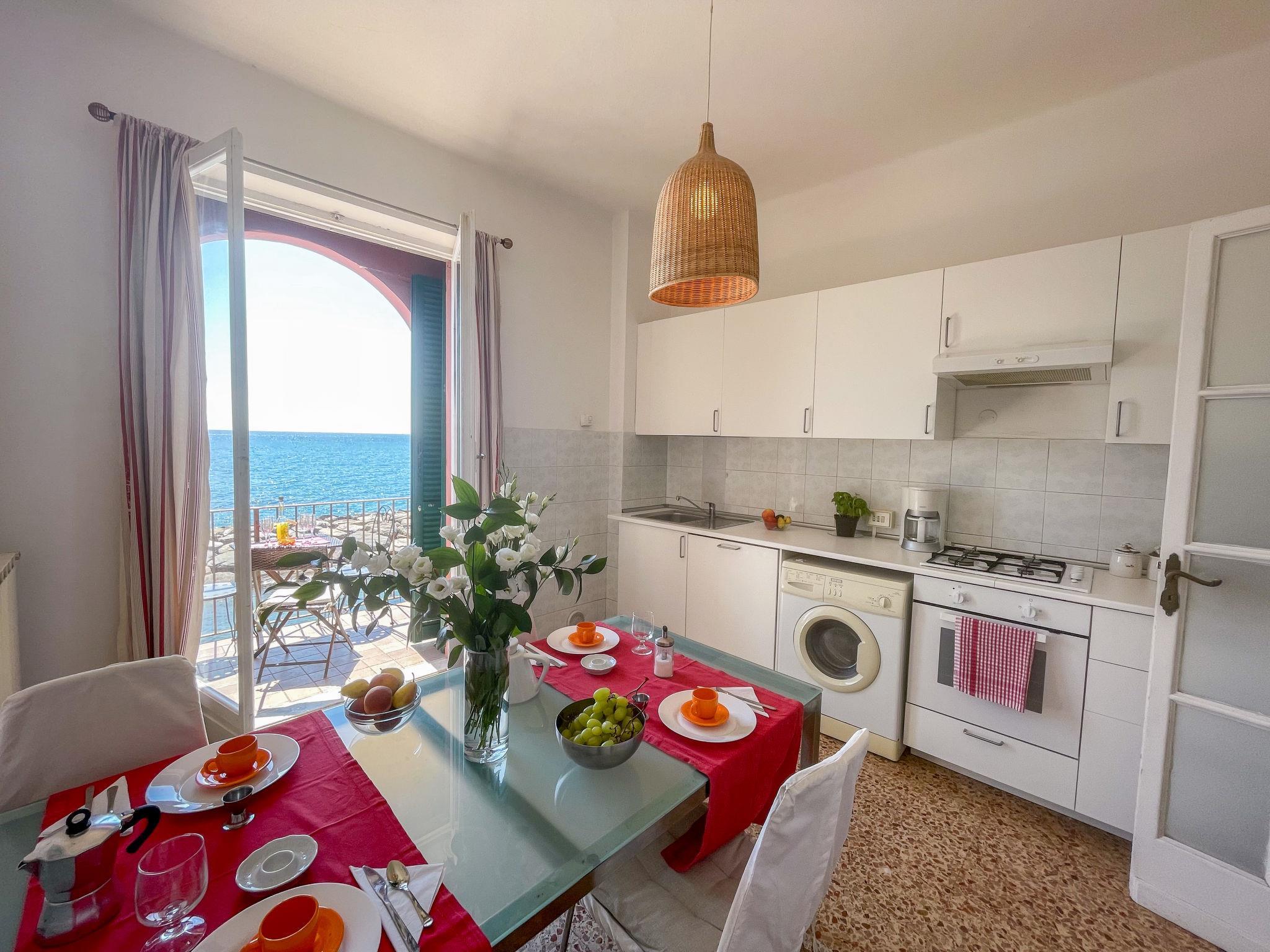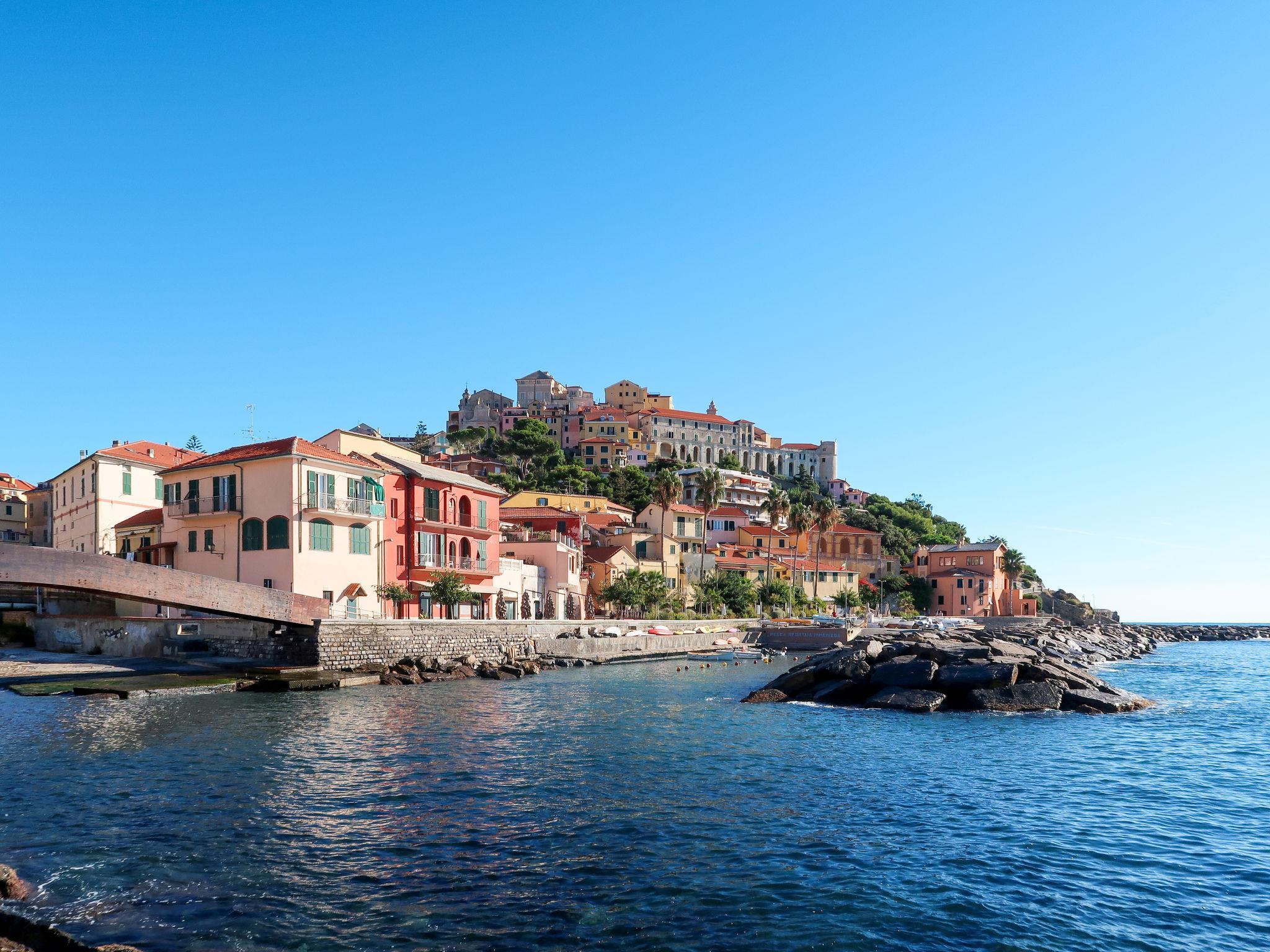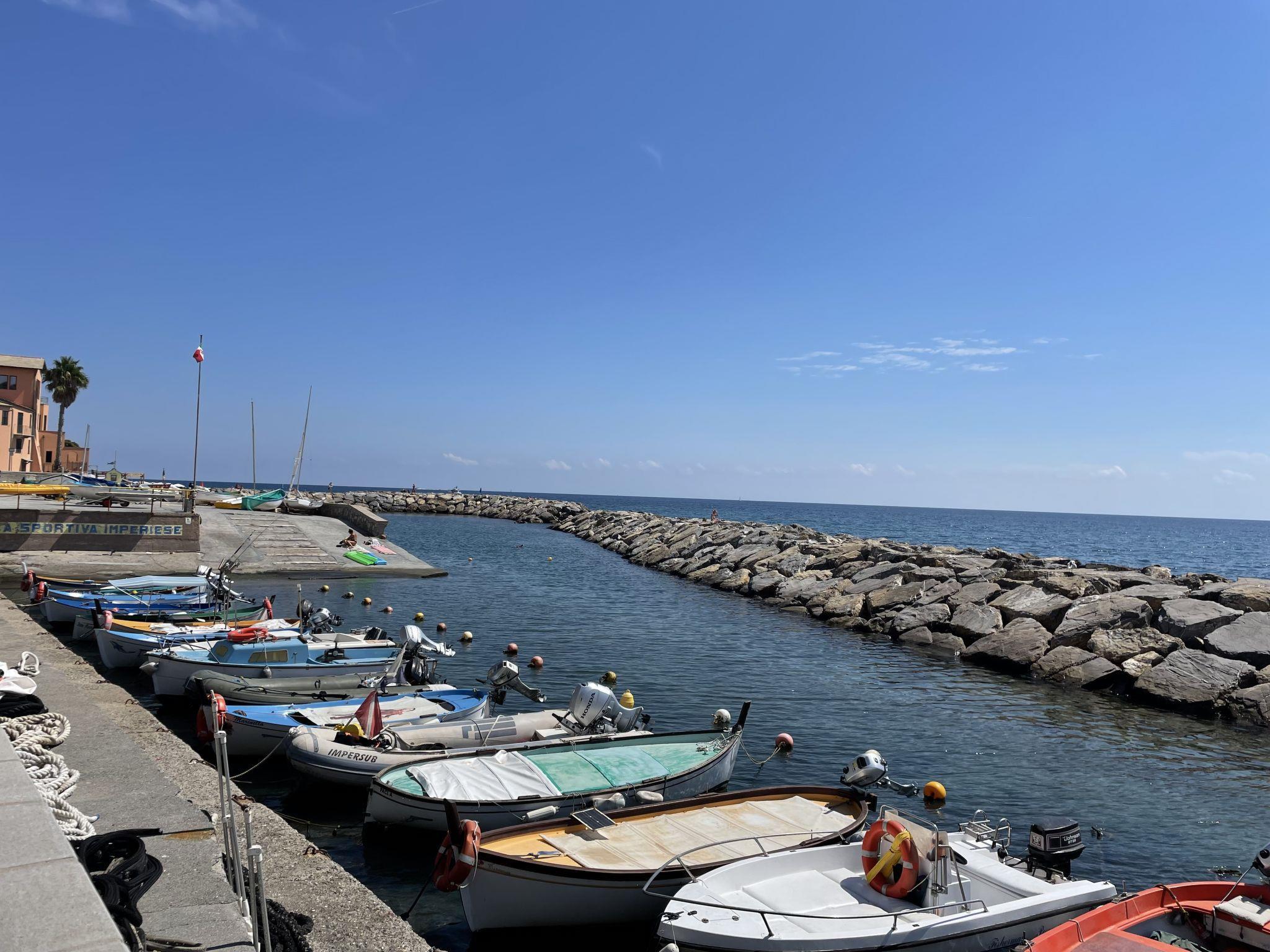 Schönes Zweifamilienhaus "Casa del Sole". Im Ortsteil Borgo Foce, 100 m vom Zentrum von Imperia Porto Maurizio, 23.5 km vom Zentrum von San Remo, 23.5 km vom Zentrum von Alassio, zentrale, belebte, sonnige Lage, 10 m vom Meer, direkter Zugang zum Strand. Fussweg bis zum Haus. Öffentliche Parkplätze 200 m extra. Supermarkt 800 m, Restaurant 50 m, Bar, Café, Fahrradverleih 10 m, Bushaltestelle 150 m, Bahnstation "Imperia" 4.5 km, Sandstrand 500 m, Kieselstrand 20 m (klein), Steinstrand (klein), Felsstrand 20 m (klein), Freibad 5 km, Hallenbad 2 km. Jacht-Hafen 600 m, Radweg 800 m.