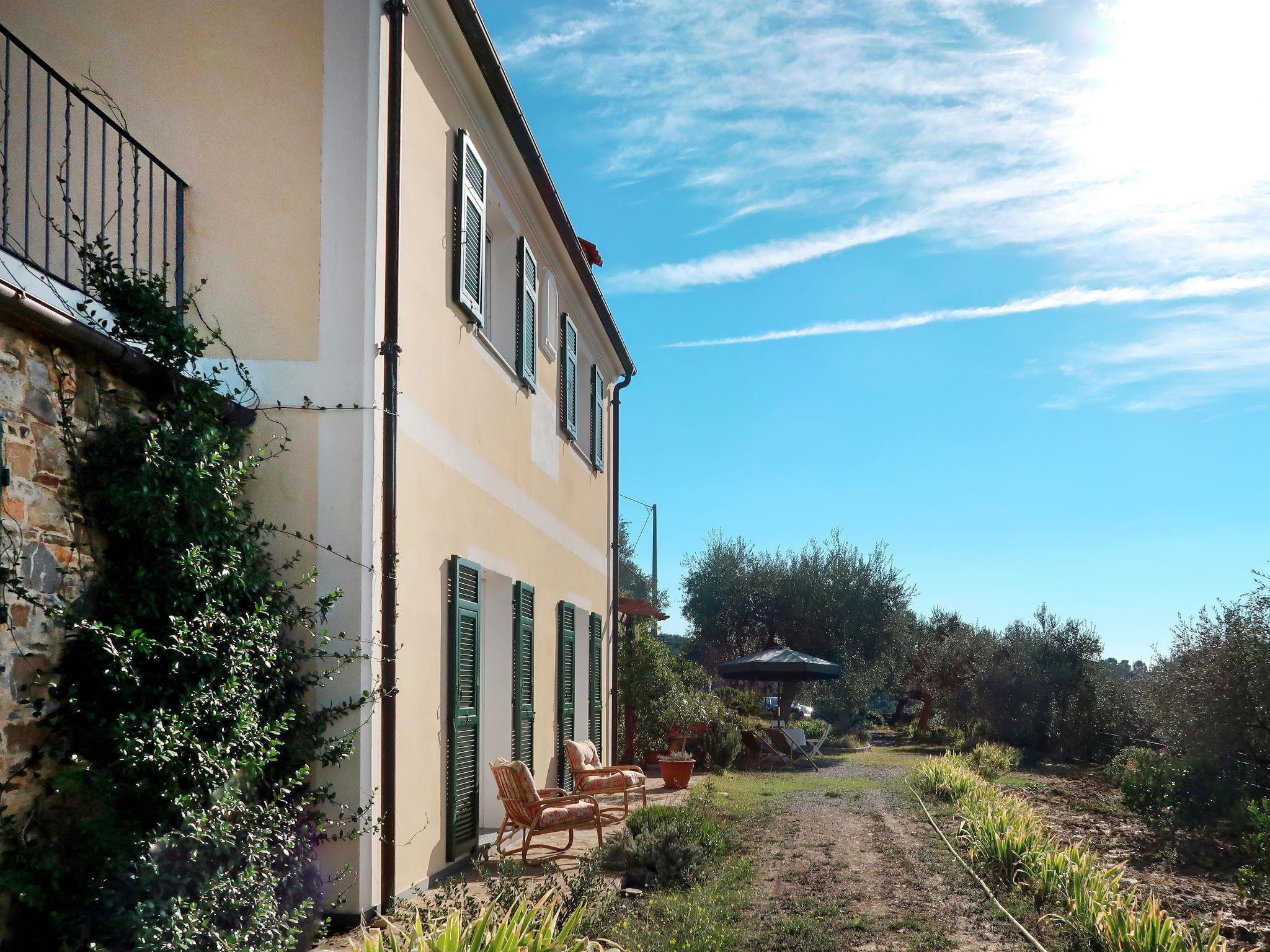 Kleines, gemütliches Landhaus "Il Terebinto", umgeben von Bäumen und Feldern. Im Ortsteil Panegai, 4.3 km vom Zentrum von Imperia Oneglia, 7.5 km vom Zentrum von Porto Maurizio, 31 km vom Zentrum von Sanremo, alleinstehende, erhöhte Lage am Hang, 4.5 km vom Meer, im Grünen. Zur Alleinbenutzung: naturbelassenes Grundstück 3 ha, terrassierter Garten mit Pflanzen und Bäumen. 900 m lange holprige, steile Zufahrt. Parkplatz (für 2 Autos) auf dem Grundstück. Supermarkt 3.2 km, Bushaltestelle 3.2 km, Bahnstation "Imperia" 3.3 km, Sandstrand "Borgo Marina" 6.5 km, Felsstrand 4.5 km. Jacht-Hafen 5.5 km.