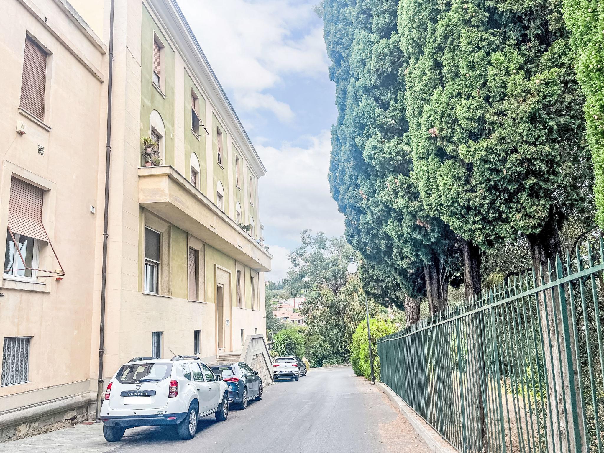 Grosses, gemütliches Appartementhaus auf 3 Stockwerken, umgeben von Bäumen. Im Ortszentrum von Imperia, sonnige, erhöhte Lage in einem Wohnquartier, im Villenviertel, im Herzen der Stadt, 600 m vom Meer. Öffentliche Parkplätze 5 m auf der Strasse. Lebensmittelgeschäft 800 m, Supermarkt 1 km, Einkaufszentrum 4 km, Restaurant 1 km, Bar, Bäckerei 800 m, Café 1 km, Fußgängerzone 1 km, Fahrradverleih 1 km, Zentrum zu Fuss in 15 Minuten erreichbar, Bushaltestelle 200 m, Bahnstation "Imperia Oneglia" 4 km. Radweg 500 m. Nahe gelegene Sehenswürdigkeiten: Pista ciclabile lungo mare 500 m, Porto Maurizio Altstadt Parasio. Wandergebiete: Monte Faudo (1149 m) Mountainbike Trails.