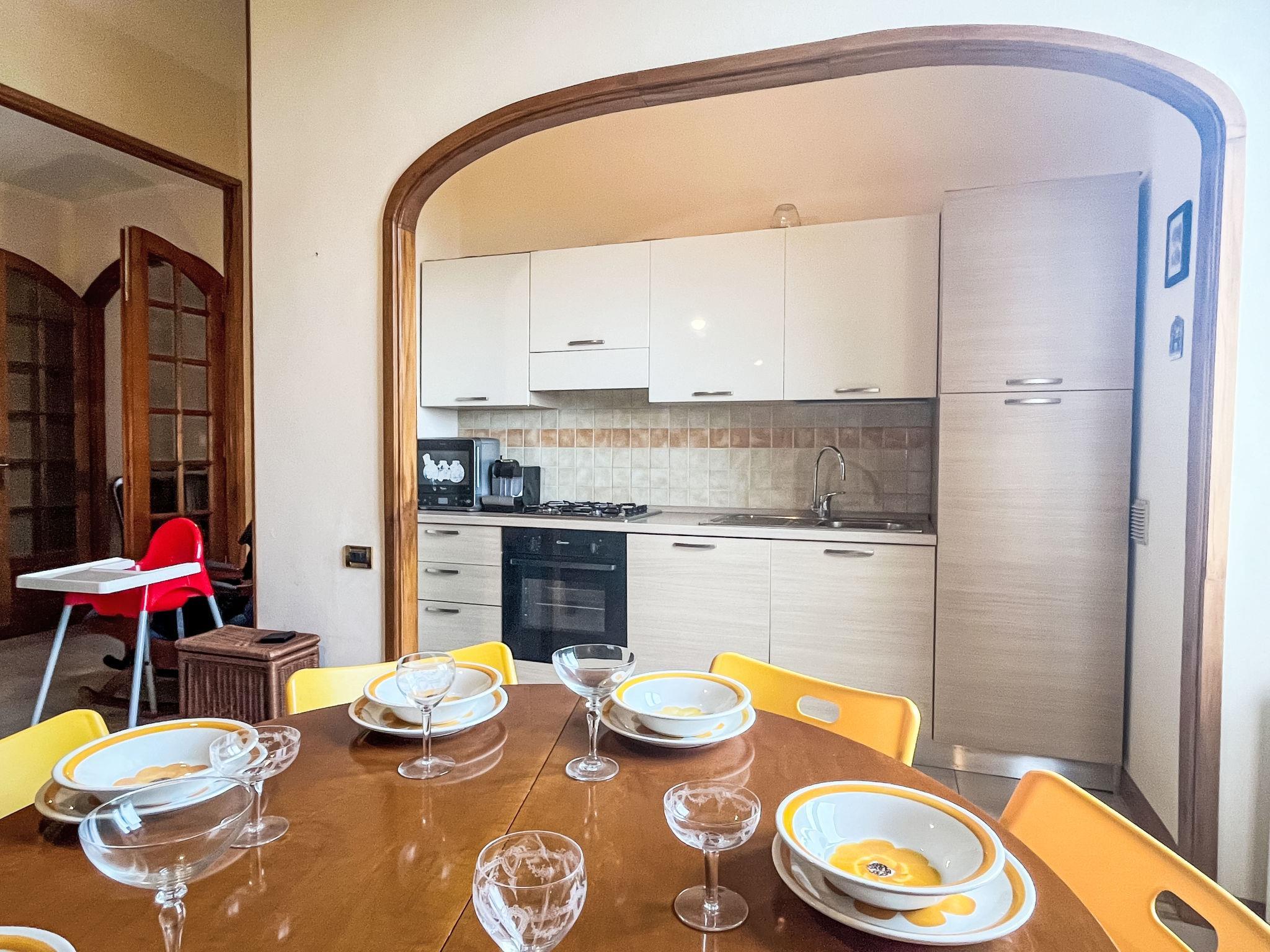 "Casa del Mare", 3-Zimmer-Wohnung 96 m2, im erhöhten Erdgeschoss. Hell, schön und gemütlich eingerichtet: Wohn-/Schlafzimmer mit 1 Doppeldiwanbett (1 x 140 cm, Länge 200 cm), Sat-TV. 1 Zimmer mit 1 Doppelbett (1 x 160 cm, Länge 200 cm). 1 Zimmer mit 1 Doppelbett (1 x 160 cm, Länge 200 cm). Kochnische (Backofen, Geschirrspüler, Gasherd, 1 Flammen, Toaster, Wasserkocher, Mikrowelle, Tiefkühler, elektrische Kaffeemaschine) mit Esstisch. Dusche/Bidet/WC. G-Heizung. Heizung nur verfügbar von 01.11. bis 12.04. Schöne Sicht auf die Ortschaft. Zur Verfügung: Waschmaschine, Bügeleisen, Kinderhochstuhl, Babybett, Haartrockner. Internet (WLAN, gratis). Bitte beachten: Nichtraucher-Unterkunft. Rauchmelder, Feuerlöscher. IT008031C2H33I03KC