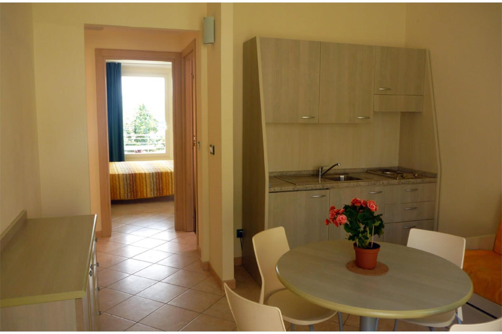 Offene Küche(Wasserkocher, Kochherd, Kühlschrank), Wohn-/Schlafzimmer(Einzelklappbett , Doppelschlafcouch, TV, Sitzecke), Schlafzimmer(Doppelbett), Badezimmer(Badewanne oder Dusche, Waschbecken, Toilette, Bidet), Balkon oder Terrasse, Klimaanlage, Gartenmöbel, Parkplatz, Pool(Gemeinschaftliche Nutzung mit anderen Gästen, 14 x 7 m., geöffnet von Jun bis einschließlich 1/2 Sep), Wäschepaket inklusive