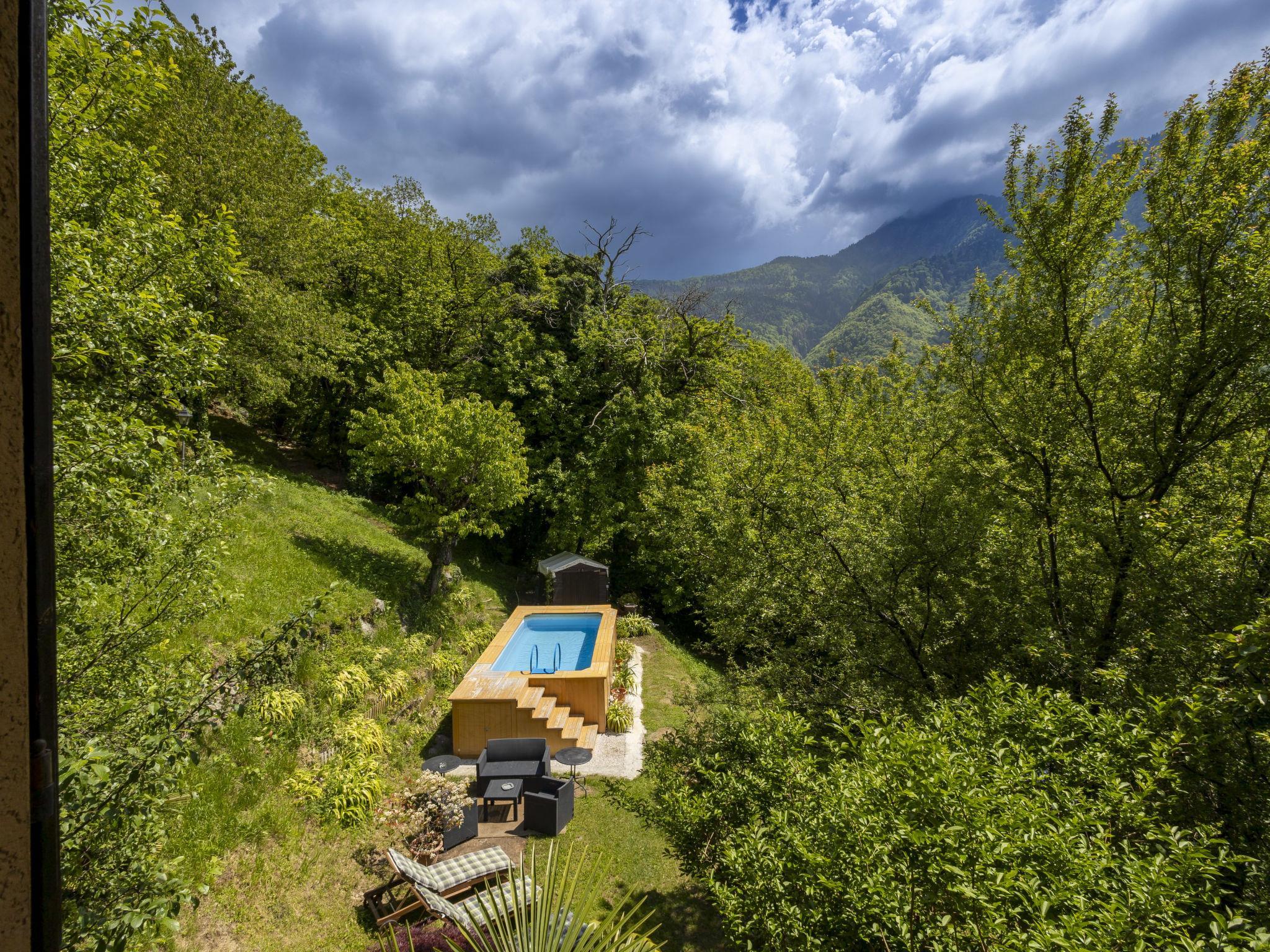 Grosse, freistehende Villa "Il Castagneto", 700 m.ü.M., auf 3 Stockwerken, umgeben von Bäumen und Wiesen. Im Weiler Cortelghe, 7 km vom Zentrum von Pisogne, alleinstehende, ruhige Lage am Hang, direkt am Waldrand, 8 km vom See, Richtung Süden. Zur Alleinbenutzung: Grundstück 5'000 m2, grosser terrassierter Garten (nicht eingezäunt) mit Blumen und Bäumen, Liegewiese, Aufstellpool nicht einsehbar (5 x 3 m, 120 - 120 cm tief, saisonale Verfügbarkeit: 01.Mai. - 30.Sep.). Aussendusche, Terrasse, Gartenmöbel, Grill, Grillhaus, Kinderspielplatz, Poolpflege durch den Besitzer/Gärtner. Im Hause: Einstellraum für Fahrräder, Sonnenterrasse, Zentralheizung. 200 m lange steile, schmale Zufahrt (Naturweg). Parkplatz beim Haus. Supermarkt 7 km, Restaurant 7 km, Bar 7 km, Bushaltestelle 1 km, Bahnstation "Pisogne" 9 km, Thermalbad "Boario Terme" 22 km. Nahe gelegene Sehenswürdigkeiten: Lovere 14 km, Iseo 23 km, Sarnico 39 km, Franciacorta (DOCG wine region) 42 km, Brescia 51 km, Bergamo 59 km. Bitte beachten: Fahrzeug empfohlen.