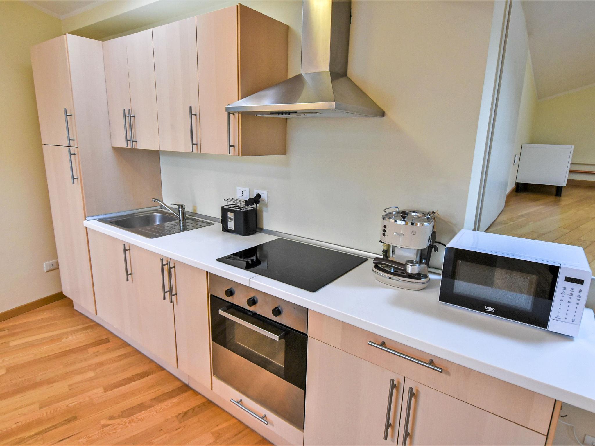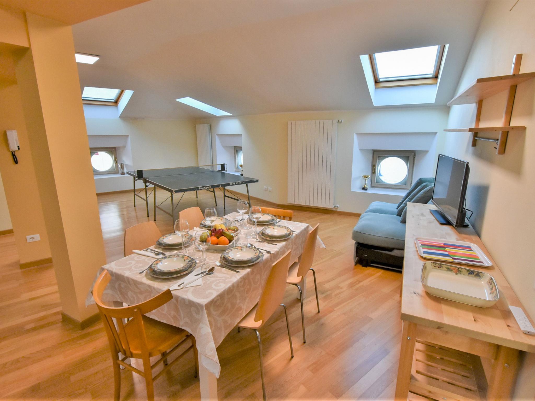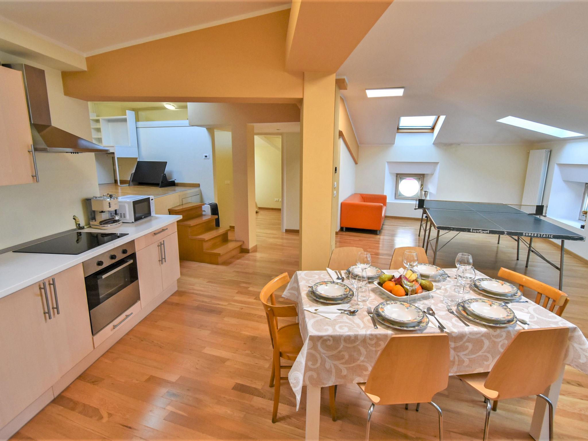 3-Zimmer-Wohnung 100 m2 im 2. Stock. Geräumig, abgeschrägt, zweckmässig und komfortabel eingerichtet: grosses Wohn-/Esszimmer mit Dachfenster mit 1 Doppeldiwanbett (140 cm, Länge 200 cm), Esstisch und TV (Flachbildschirm). 1 Zimmer mit Dachfenster mit 1 franz. Bett (140 cm, Länge 200 cm), Klimaanlage. 1 Zimmer mit Dachfenster mit 1 Doppelbett (160 cm, Länge 200 cm), Klimaanlage. Grosse Kochnische (Backofen, 4 Induktionskochplatten, Toaster, Wasserkocher, Mikrowelle, elektrische Kaffeemaschine). Dusche/Bidet/WC. Heizung. Parkettboden. Sicht auf den See und die Berge. Zur Verfügung: Haartrockner. Internet (Wireless LAN, gratis). Bitte beachten: Nichtraucher-Haus. Eigener Eingang, kein Fahrstuhl. Bettwäsche, Handtücher, Endreinigung und alle Energiekosten sind inkludiert. IT017085C2AP4OG2XO