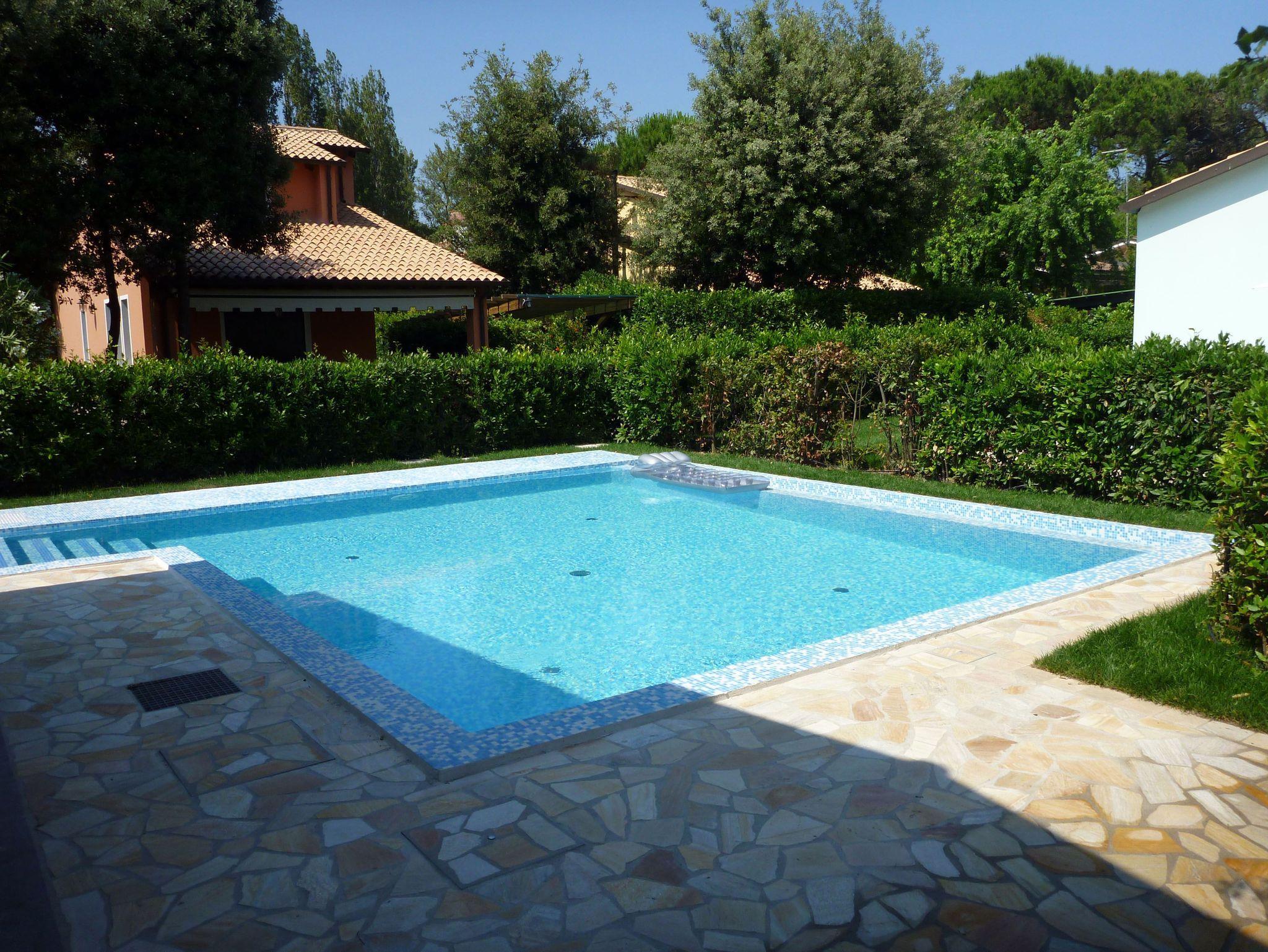 Sehr großer Garten mit Pool, überdachter Terrasse, Gartenmöbel, Sonnenliegen und Außengrill
