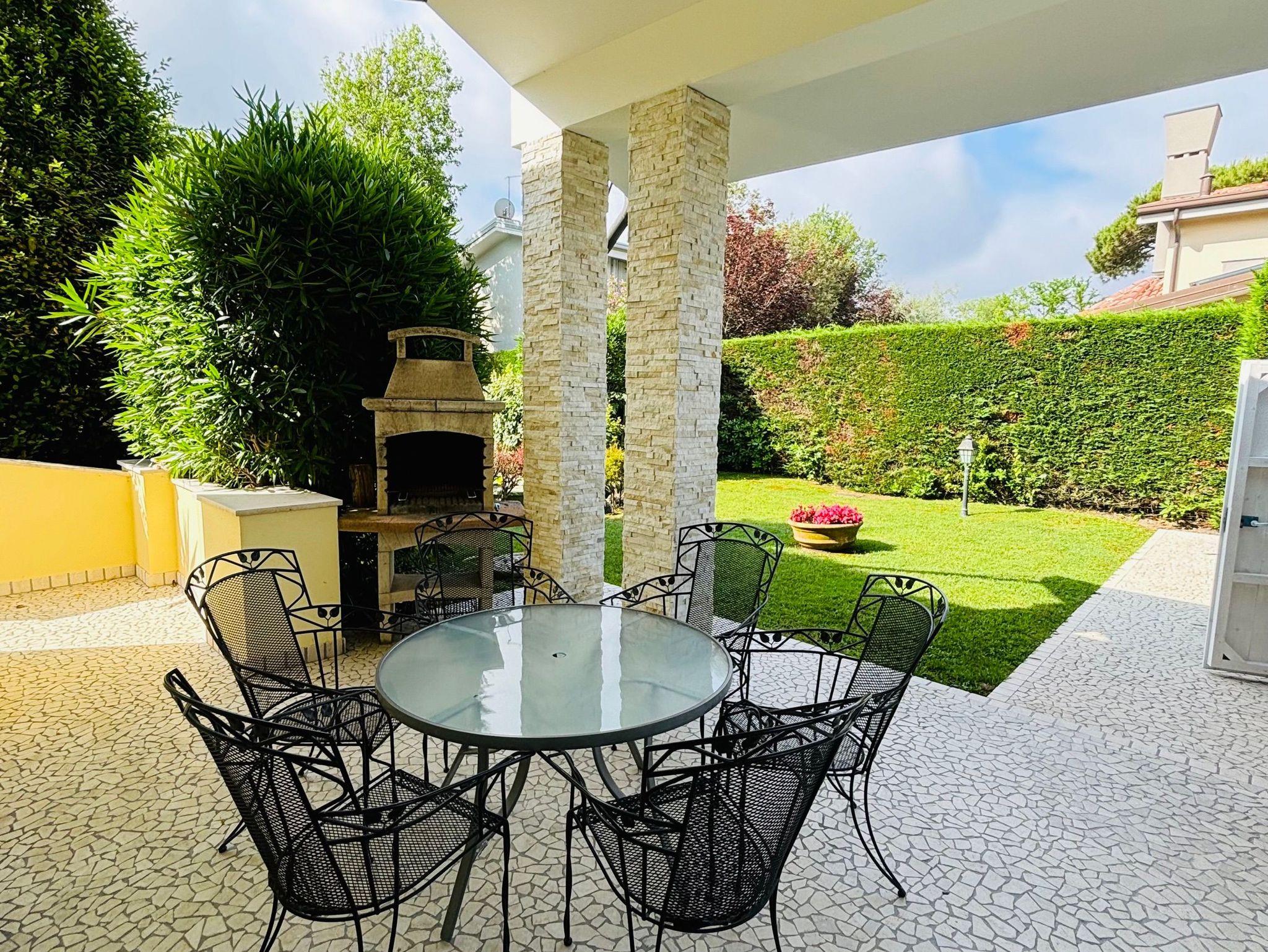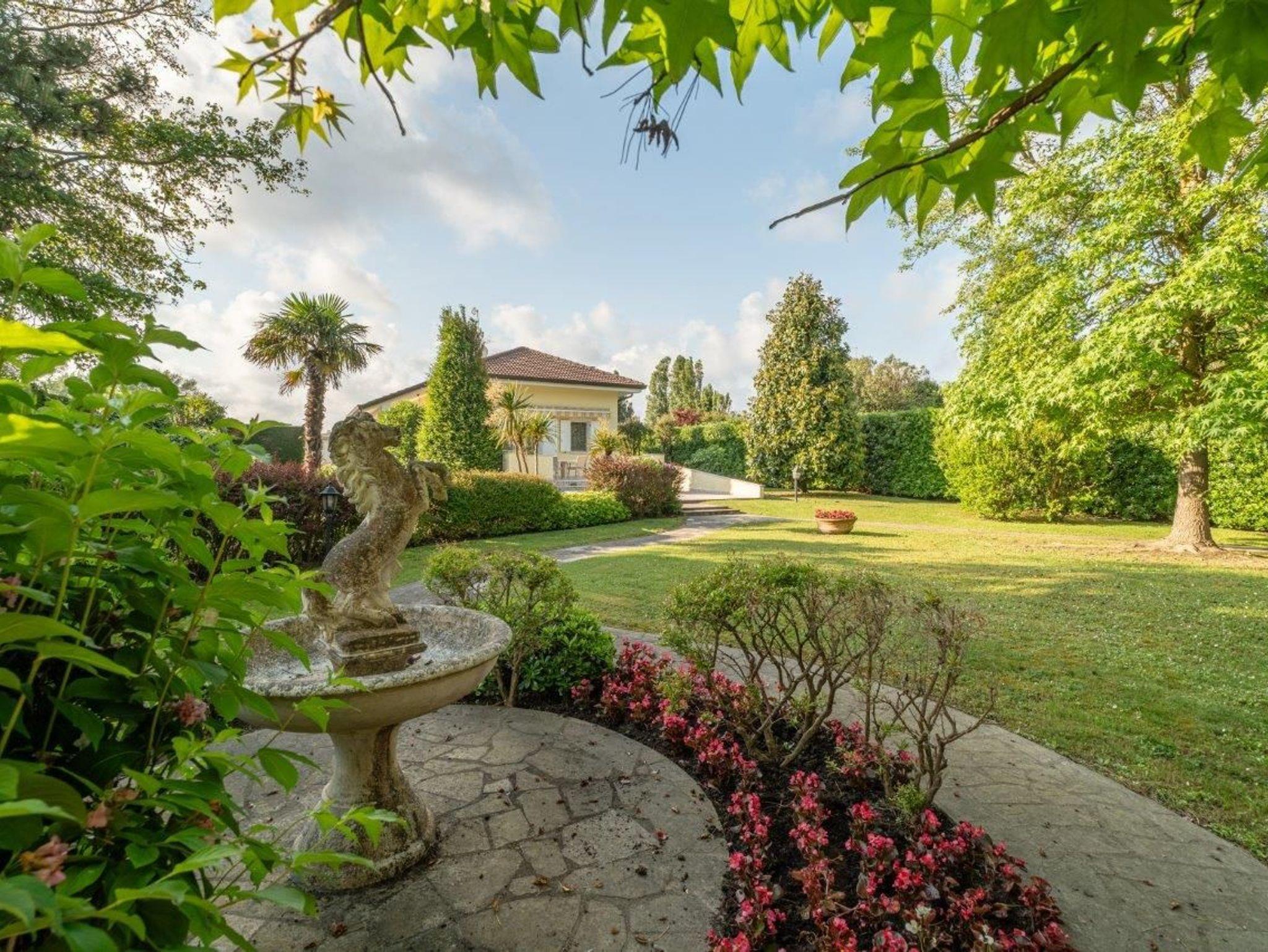 Sehr großer Garten mit Gartenmöbeln, Sonnenliegen, Außengrill und Außendusche