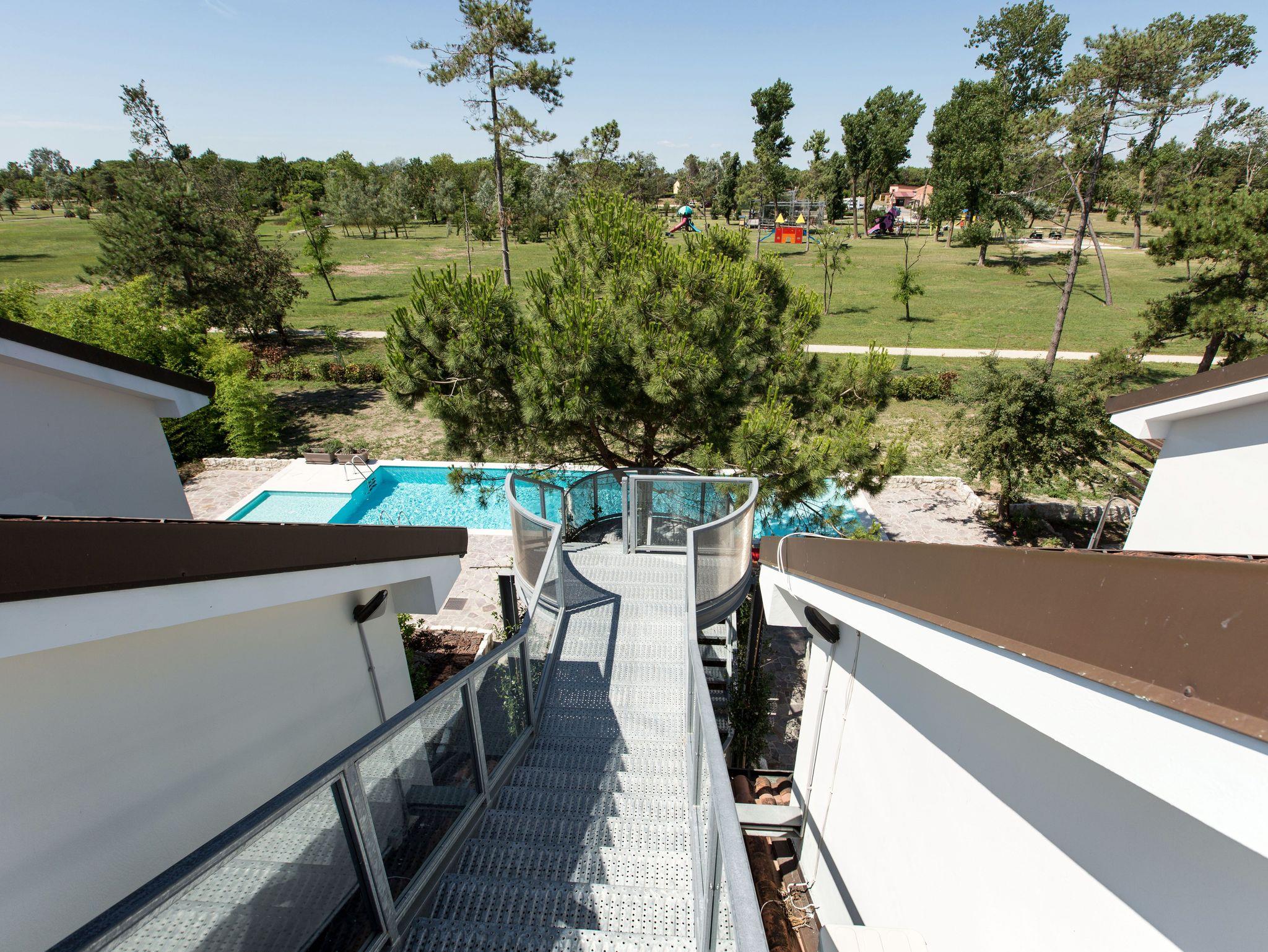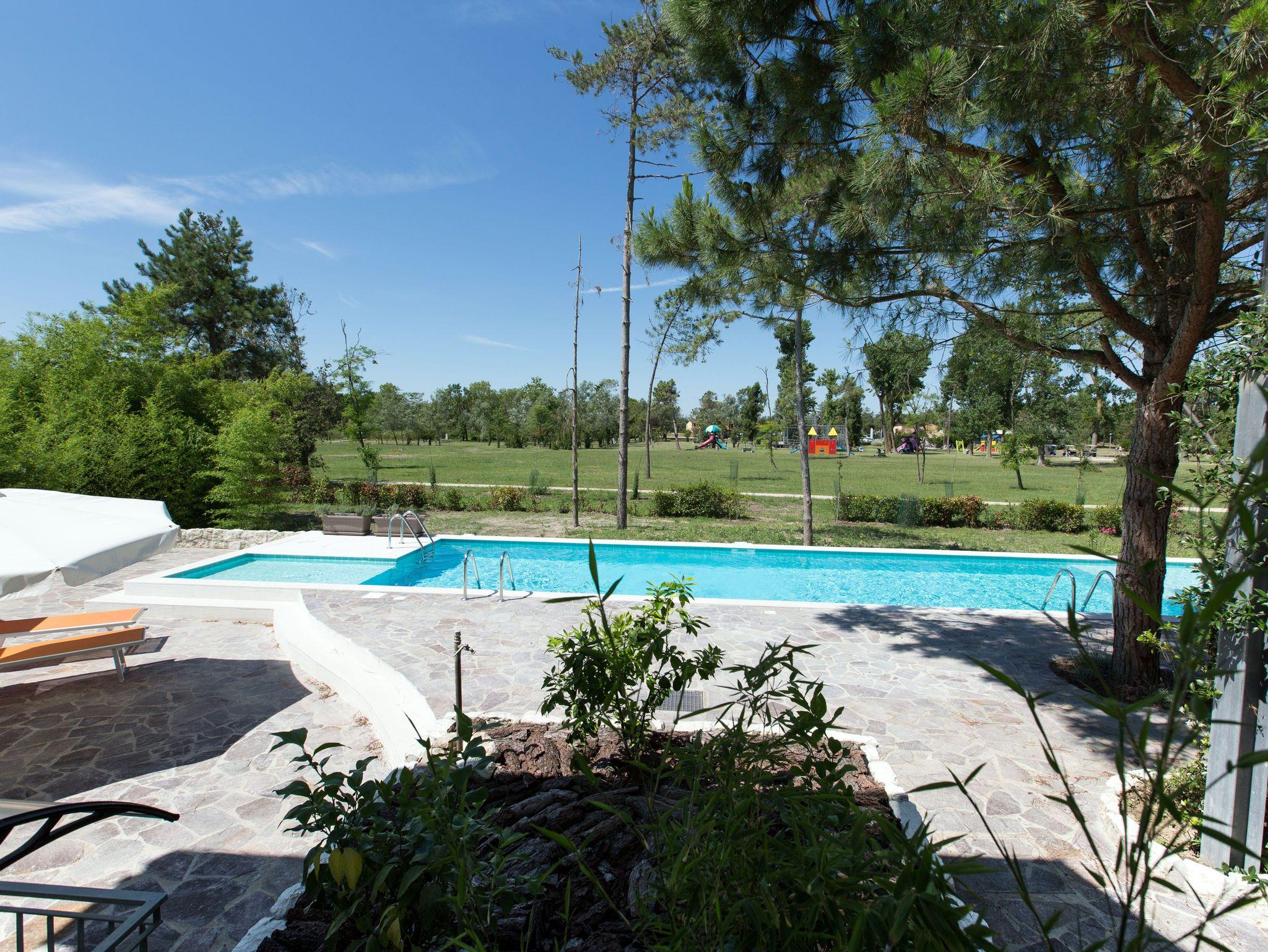 Schöner Garten mit Gartenmöbel, Liegen und Außengrill (2 Stück zur gemeinschaftlichen Nutzung) und freiem Blick auf die große Wiese sowie einem großen Gemeinschaftspool. Der Ausgang zur Poolterrasse wird zusätzlich mit einer Kindersicherung versehen, so dass die Türe zur Terrasse aufgelassen werden kann, ohne dass kleine Kinder ungewollt zum Pool können