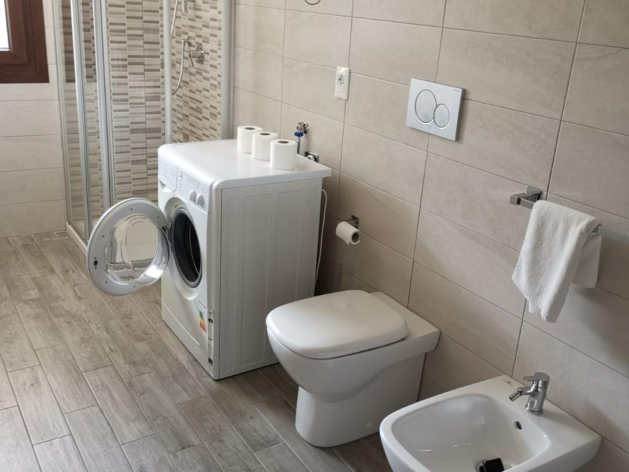 • Ein Bad mit Dusche, WC, Bidet und Waschmaschine