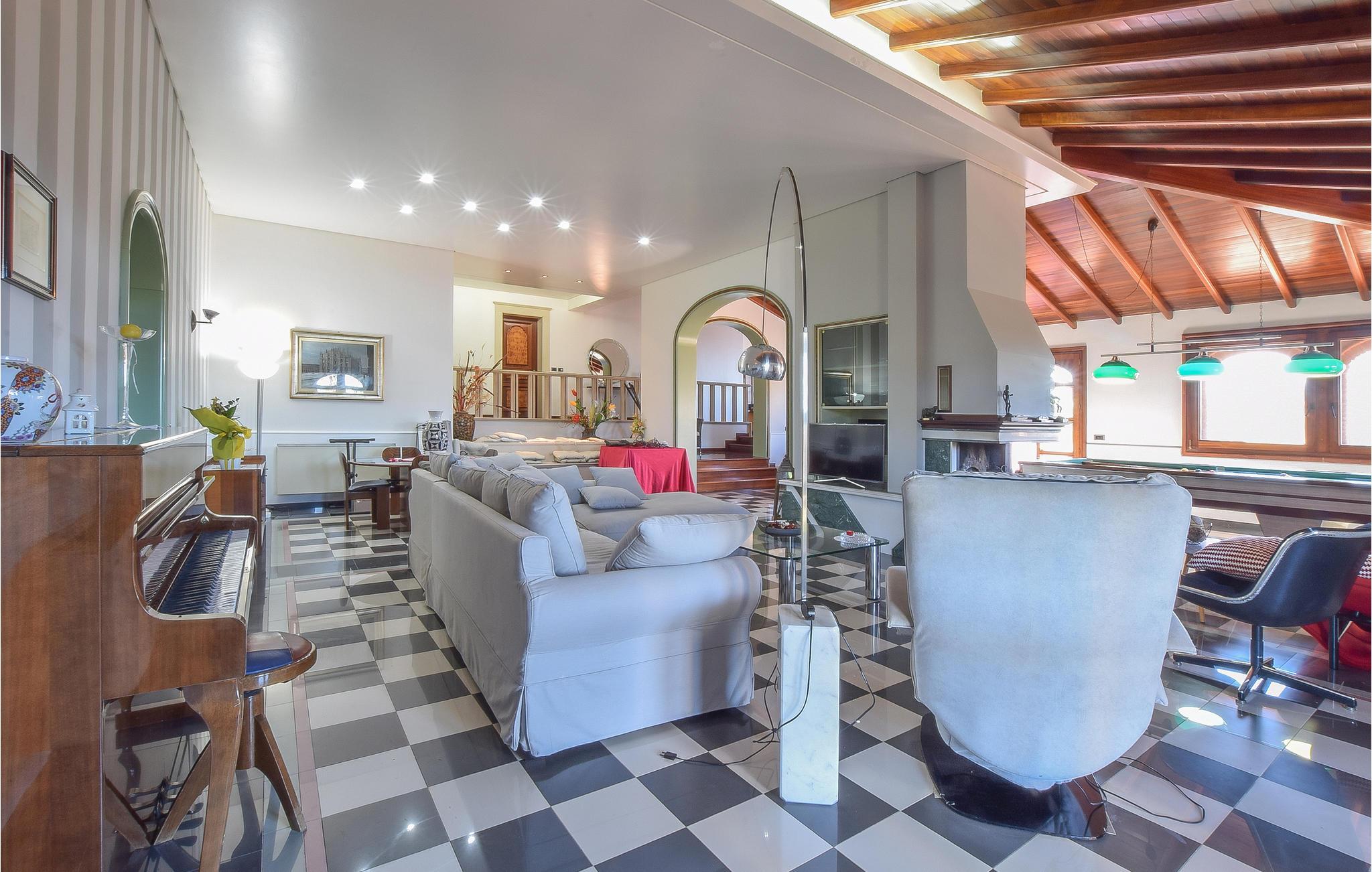 Machen Sie es sich zu jeder Jahreszeit mit einer größeren Gruppe in diesem einladenden Ferienhaus gemütlich, das mit 4 Schlafzimmern und 6 Bädern Platz für bis zu 14 Personen bietet. Genießen Sie einen fantastischen Blick auf die Landschaft der Umgebung. Die Ausstattung des Ferienhauses bietet jeden Komfort, u.a. haben Sie einen Fitnessraum und Whirlpool. Dank Klimaanlage ist es in den Räumen auch an heißen Sommertagen angenehm, an kühleren Tagen können Sie es sich am Kamin bequem machen, Brennholz steht gratis zur Verfügung.