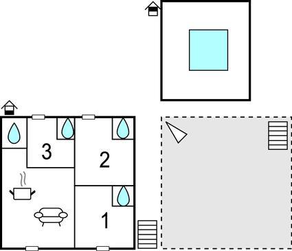 Badezimmer (nr. 3) - WC. Warmes und kaltes Wasser. Dusche