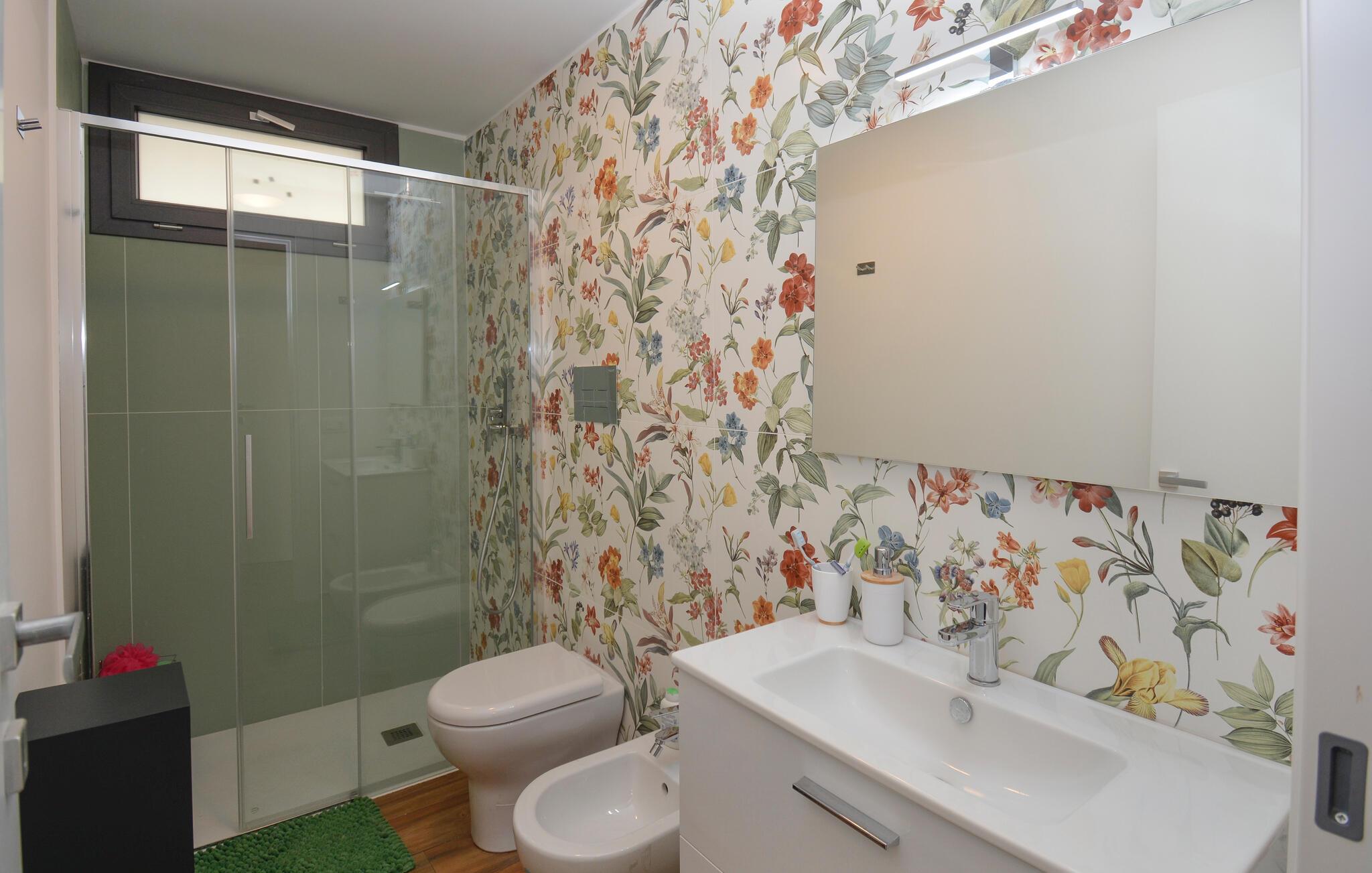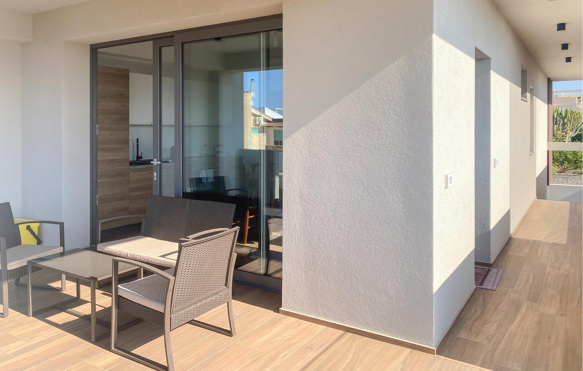 Gehen Sie hinaus auf die überdachte Terrasse und nehmen Sie Platz auf den gemütlichen Sitzmöbeln. Genießen Sie den Blick in die Umgebung und lassen Sie Ihren Blick bis zum Meer schweifen. Setzen Sie sich auf den Balkon, starten Sie den Tag mit einem Frühstück im Freien oder beenden Sie ihn bei einem Glas Wein. Entdecken Sie weitere Sitzmöglichkeiten rund um die Wohnung und nutzen Sie die Gelegenheit, die mediterrane Stimmung in aller Ruhe zu genießen.