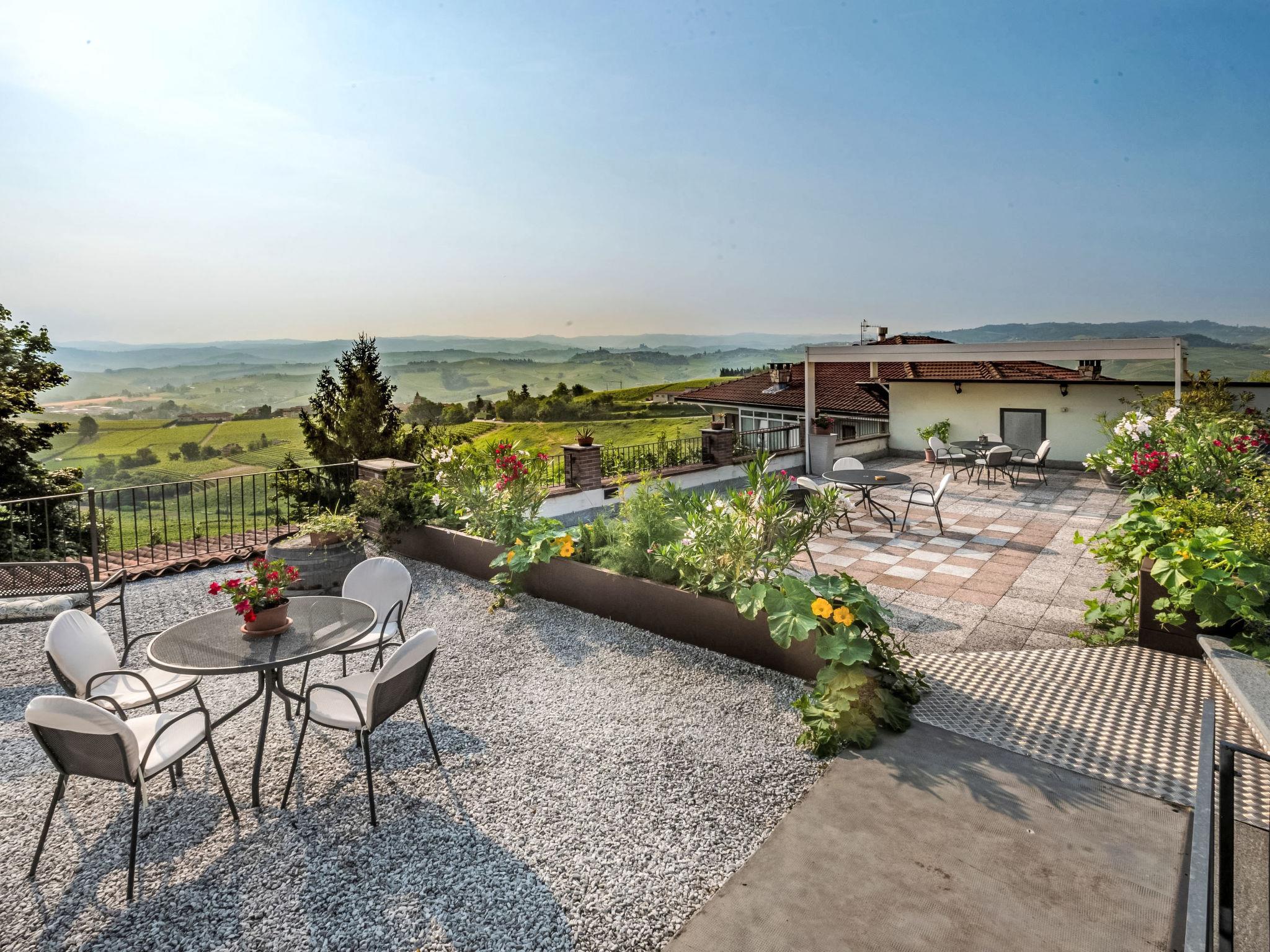 Sehr gemütlich auf Weingut "Ca' del Pozzo", umgeben von Weinbergen. 4 Wohnungen in der Residenz. Im Weiler Pozzo, 1.5 km vom Zentrum von La Morra, 5 km vom Zentrum von Barolo, 15 km vom Zentrum von Alba. Zur Mitbenutzung: Grundstück 500 m2 (eingezäunt) mit Naturgarten, Wiese, Aufstellpool (6 x 3 m, 140 cm tief, saisonale Verfügbarkeit: 08.Jun. - 14.Sep.). Sitzplatz, Terrasse, Grill (Schaukel). Im Hause: Waschmaschine (zur Mitbenutzung). Frühstück möglich auf Anfrage (extra). Parkplatz (überdacht) beim Haus auf dem Grundstück. Einkaufsgeschäft 1.5 km, Bushaltestelle "La Morra" 300 m, Bahnstation "Alba" 15 km, Freibad 5 km. Ab Hof Verkauf von bäuerlichen Produkten.