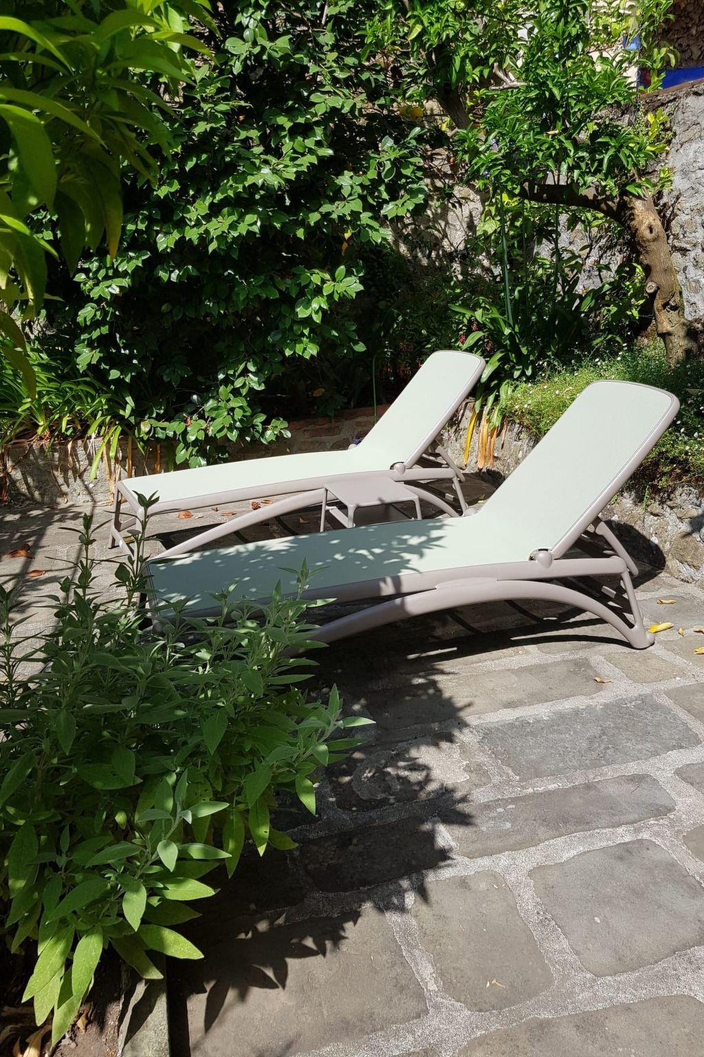 Draußen gibt es eine Veranda. Hier können Sie Ihre Mahlzeit genießen oder einfach nur entspannen. Es gibt auch eine kleine Terrasse und einen eingezäunten Garten mit Pampelmusen-, Orangen- und Zitronenbäumen, die Sie exklusiv nutzen können.