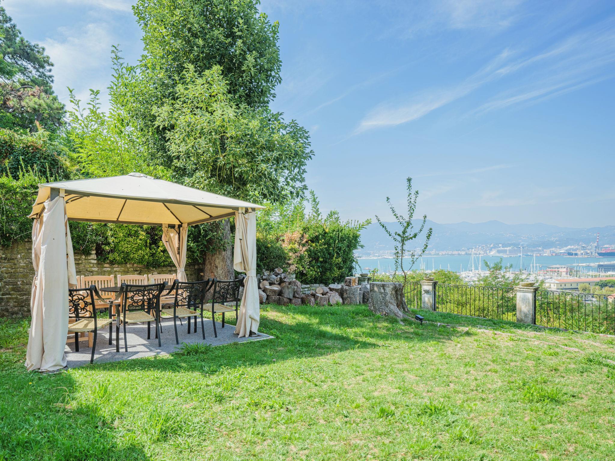 Haus "Villa Diana", auf 2 Stockwerken. 5.5 km vom Zentrum von Lerici, 4 km vom Zentrum von La Spezia, erhöhte Lage in einem Wohnquartier, 3.5 km vom Meer, 5.5 km vom Strand, im Grünen. Zur Alleinbenutzung: naturbelassenes Grundstück 400 m2 (eingezäunt), terrassierter Garten. Im Hause: Wireless LAN. 100 m lange steile, schmale Zufahrt bis zum Haus (20 m Rampe). Breite der Zufahrtsstrasse: 185 cm. Parkplatz (für 2 Autos) auf dem Grundstück, öffentliche Parkplätze 100 m auf der Strasse. Supermarkt 2.3 km, Restaurant 1.4 km, Bar 500 m, Bushaltestelle 700 m, Sandstrand "San Terenzo" 3.5 km. Nahe gelegene Sehenswürdigkeiten: Portovenere 19 km, Riomaggiore 22 km, Bonassola 26 km, Pisa 87 km, Lucca 77 km, Firenze 148 km. Bekannte Seen in der Umgebung sind gut erreichbar: Torre del Lago 60 km, Massaciuccoli 68 km. Wandergebiete: Parco delle 5 Terre 22 km. Bitte beachten: Fahrzeug empfohlen. Der Besitzer akzeptiert keine Jugendgruppen. Schmale Zufahrt zum Haus. In der letzten scharfen Kurve vor der Einfahrt, kommen Autos bis 185cm Breite (Audi A4) gut durch. Grössere Fahrzeuge können weiter unterhalb der Strasse abgestellt werden.