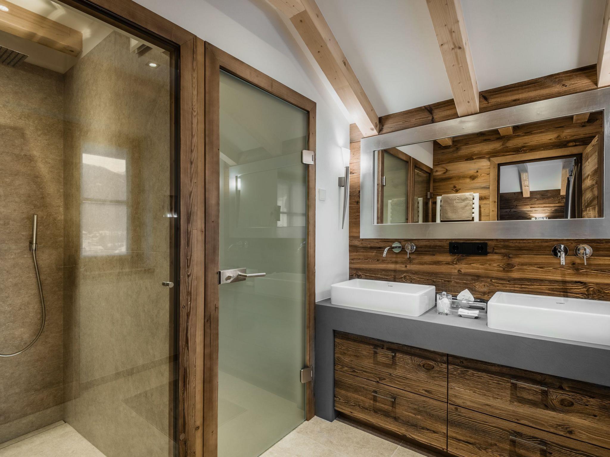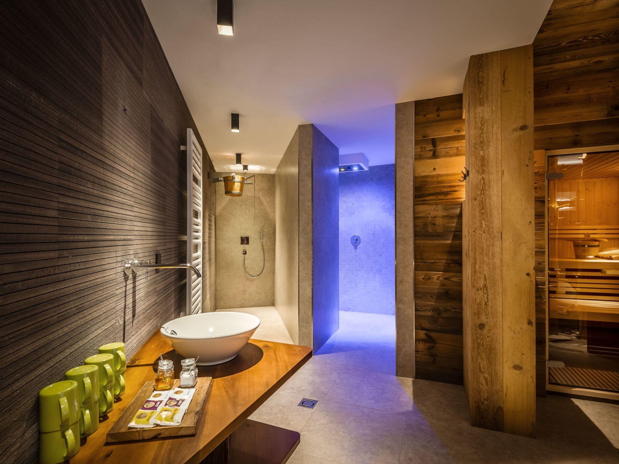 Eine Wohltat für Körper und Seele: relaxen in dem privaten Spa mit Finnischer Sauna, Regen- und Dampfdusche sowie Frischluft-Ruhebereich mit Jacuzzi. In den schneebedeckten Wintermonaten heizt die Fußbodenheizung das Chalet auf eine angenehme Raumtemperatur.