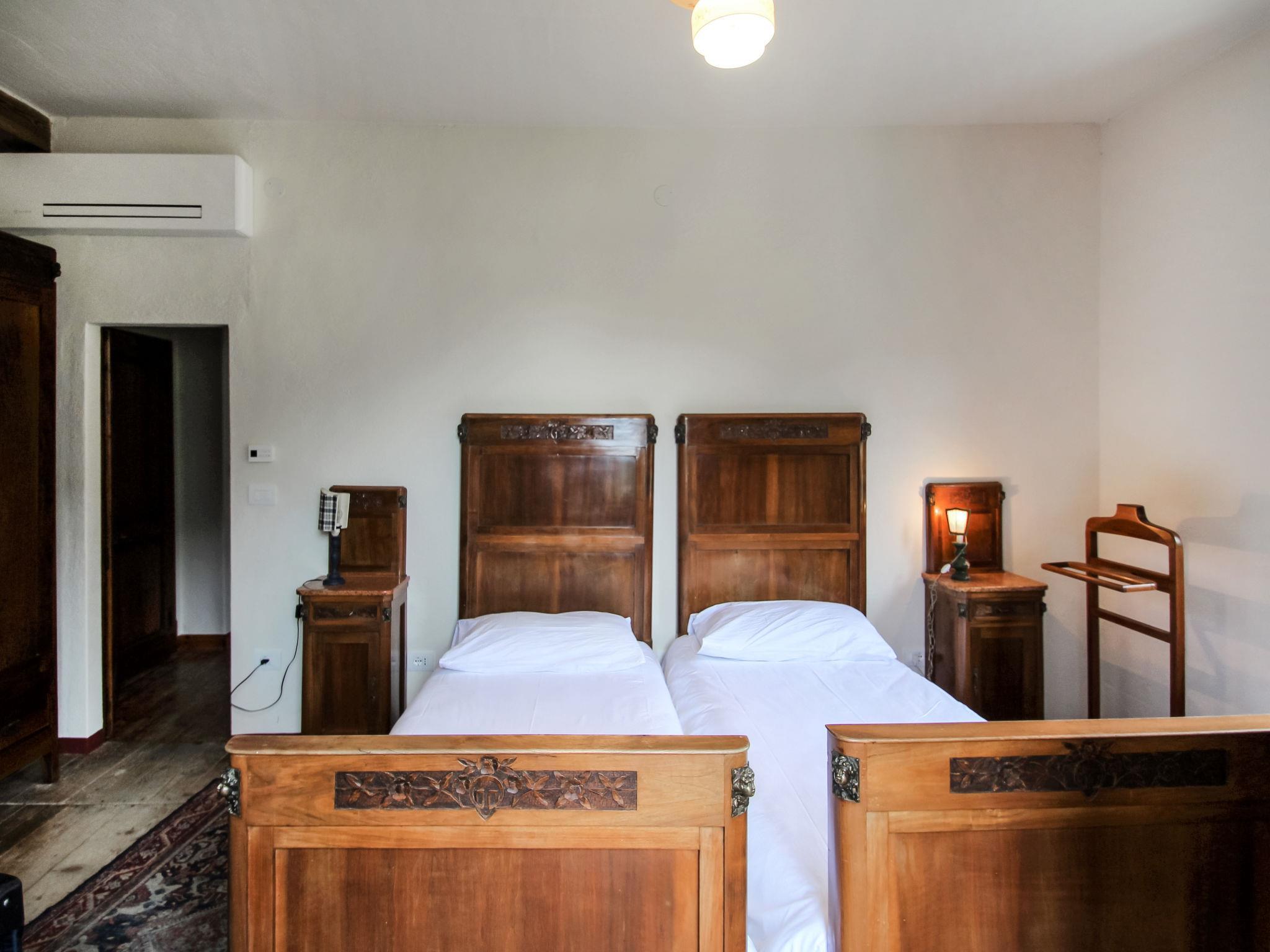7-Zimmer-Haus 200 m2 auf 3 Stockwerken. Rustikal und antik eingerichtet: grosses Wohn-/Esszimmer mit 1 Schlafmöglichkeit (Länge 180 cm), TV. Ausgang zur Terrasse. Küche (Backofen, 4 Induktionskochplatten, Mikrowelle, Tiefkühler). Sep. WC. Obergeschoss: 2 kleine Zimmer, jedes Zimmer mit 1 Bett. 3 Zimmer, jedes Zimmer mit 2 Betten. 2 Duschen/Bidet/WC. 2. Obergeschoss: 1 Doppelzimmer mit Dusche/WC. Heizung (extra). Holzdielenboden. 2 Balkone, grosse Terrasse 40 m2. Terrassenmöbel, Gartengrill. Schöne Sicht auf den See und die Berge. Zur Verfügung: Babybett bis 3 Jahre. Internet (WLAN, gratis). Maximal 2 Haustiere/Hunde erlaubt. IT022229C2RRSNK7SF
