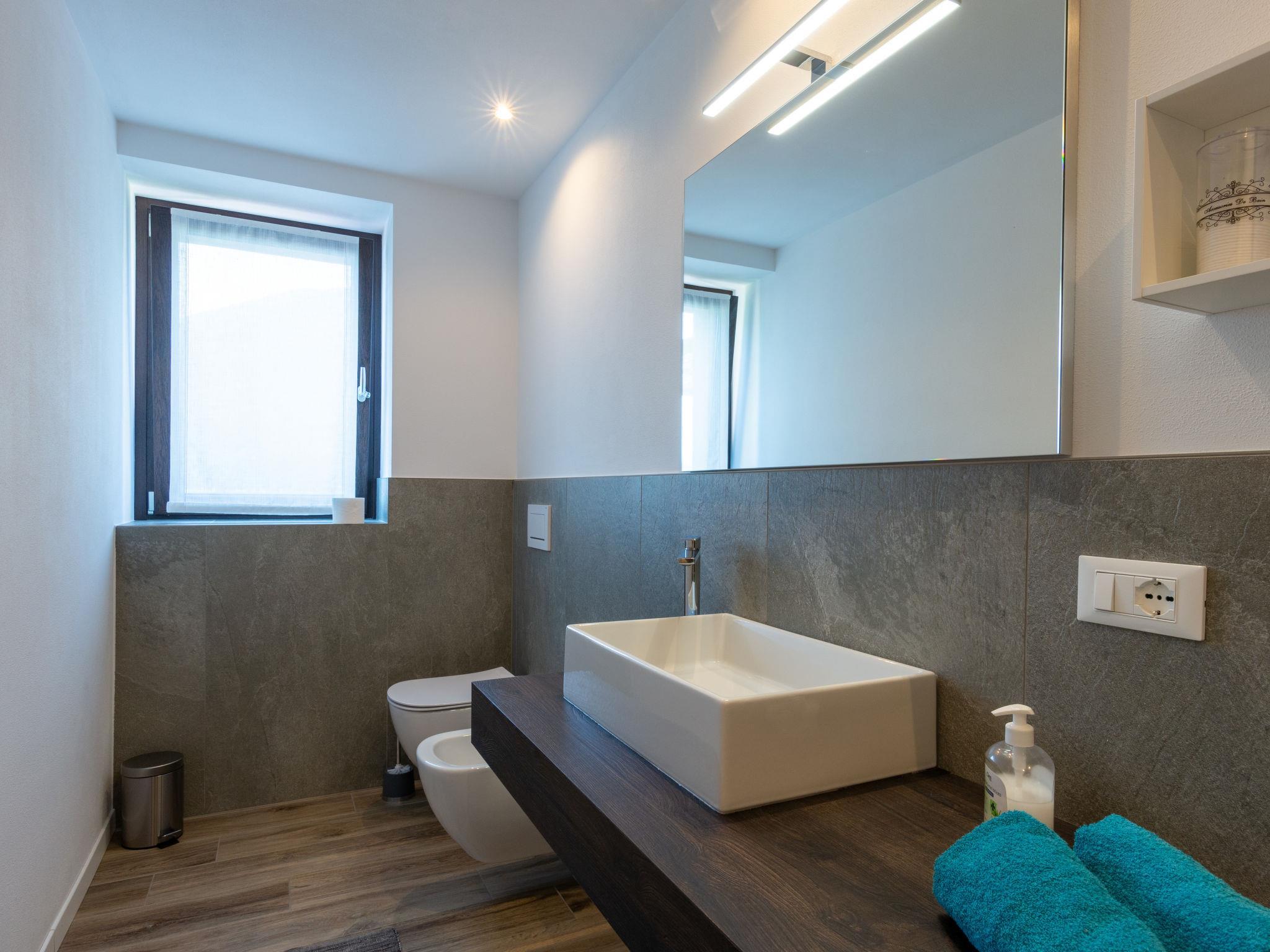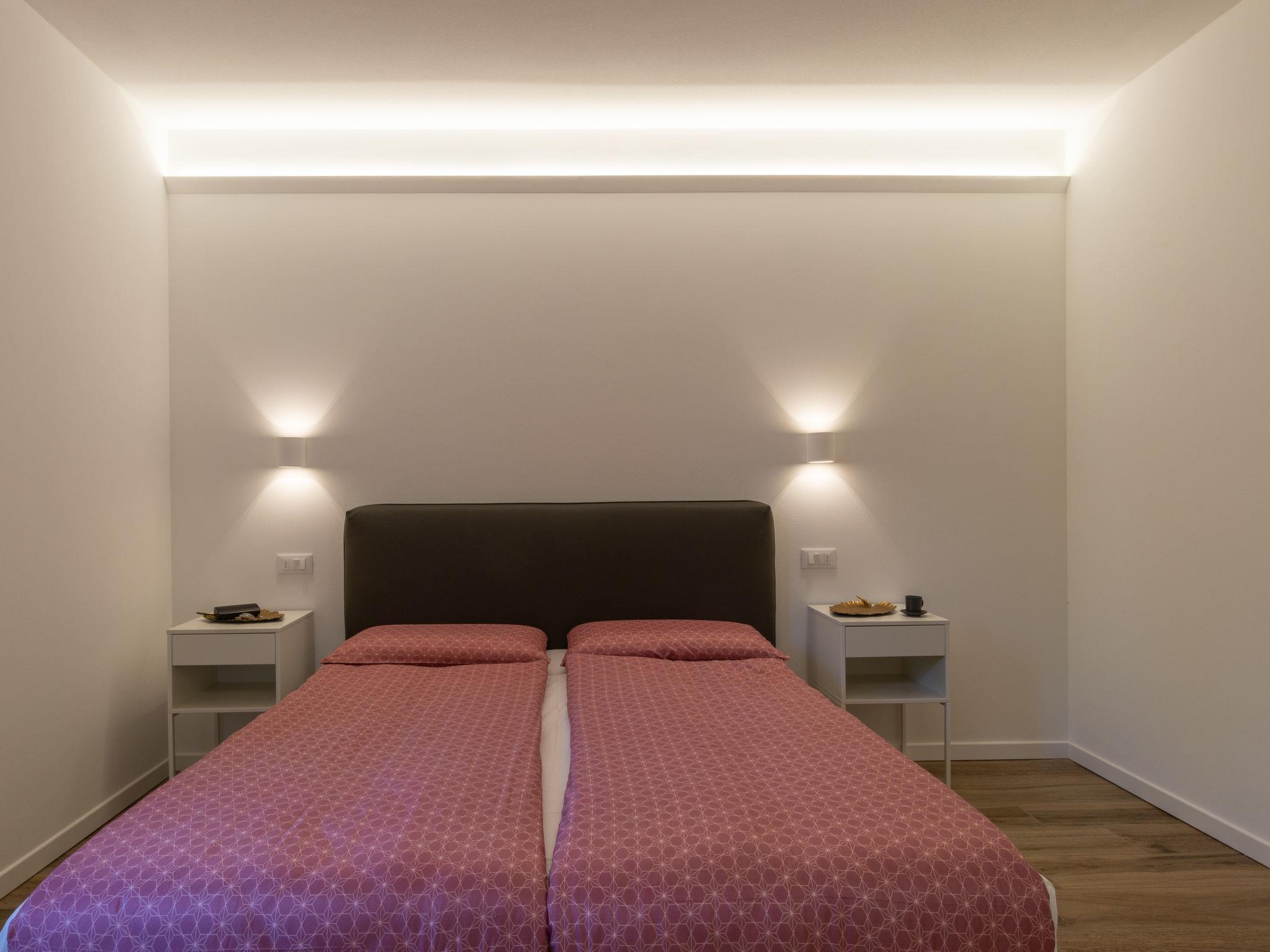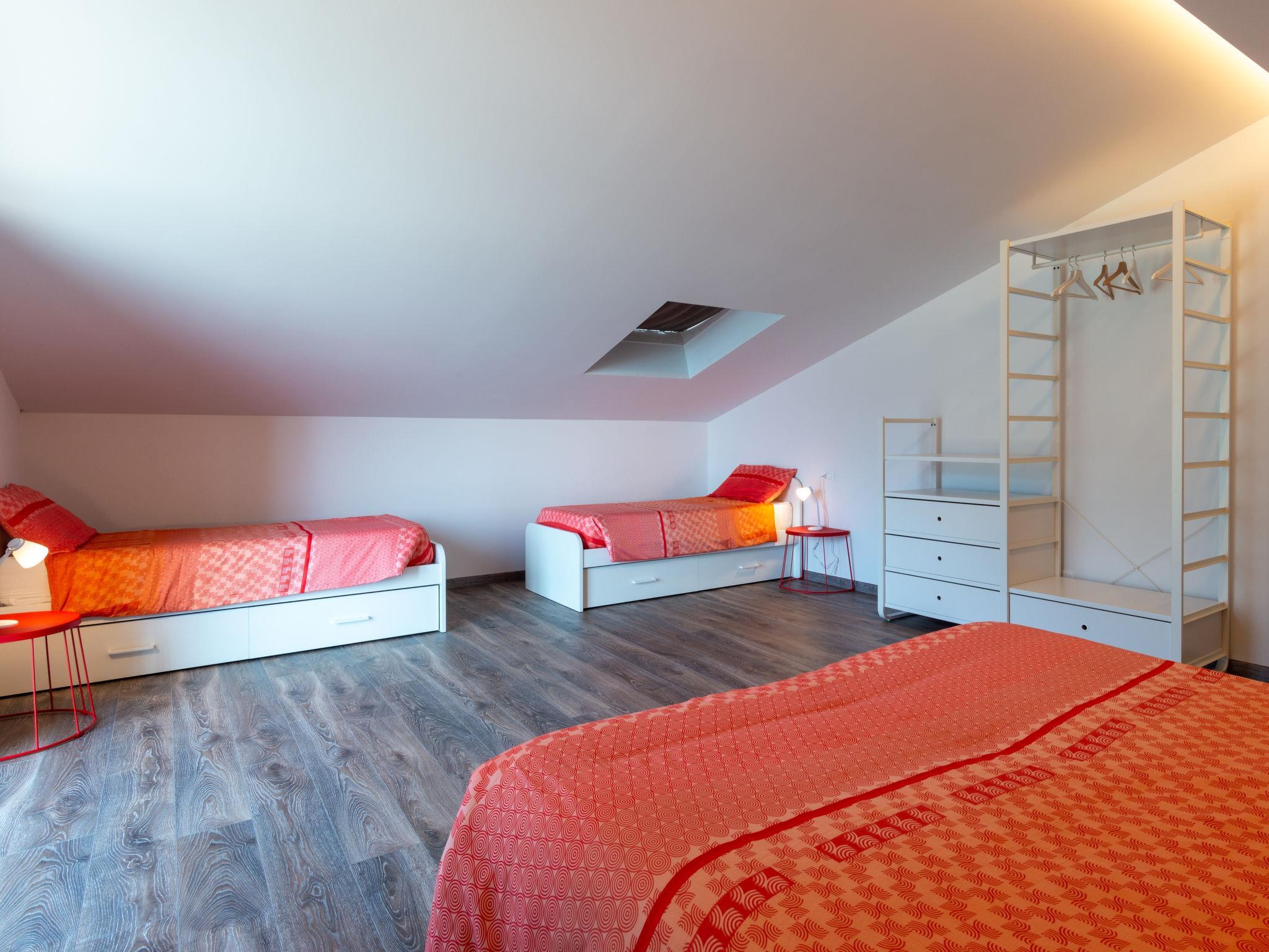 6-Zimmer-Doppelhaushälfte 190 m2 auf 3 Stockwerken. Hell, modern und geschmackvoll eingerichtet: offenes Wohn-/Schlafzimmer mit Schiebetür, Panoramafenster mit 1 Doppeldiwanbett und Sat-TV. 1 Doppelzimmer mit Bidet, sep. WC und Dusche. 1 Doppelzimmer. Grosse, offene Küche (Backofen, Geschirrspüler, 4 Induktionskochplatten, Toaster, Wasserkocher, Mikrowelle, Tiefkühler, elektrische Kaffeemaschine) mit Esstisch. Ausgang zum Garten. Dusche/Bidet/WC. Fussbodenheizung. Obergeschoss: Wohn-/Esszimmer mit Esstisch und Sat-TV. Ausgang zur Terrasse. 1 Doppelzimmer mit Dusche/WC. Offene Küche (Backofen, Geschirrspüler, 4 Induktionskochplatten, Toaster, Wasserkocher, Mikrowelle, elektrische Kaffeemaschine). Dusche/WC. Dachgeschoss: (geländerlose Treppe) 1 abgeschrägtes, offenes Zimmer mit 2 Betten, 1 Doppelbett und 1 Ausziehbett. Fussbodenheizung. Grosse Terrasse, grosser Garten, Rasen. Terrassenmöbel, Gartengrill, Liegestühle (8). Sehr schöne Panoramasicht auf den See und die Berge. Zur Verfügung: Waschmaschine, Kinderhochstuhl, Babybett bis 2 Jahre. Internet (WLAN, gratis). Parkplatz (4 Autos). Bitte beachten: Nichtraucher-Unterkunft. IT014075C23SN69WRX