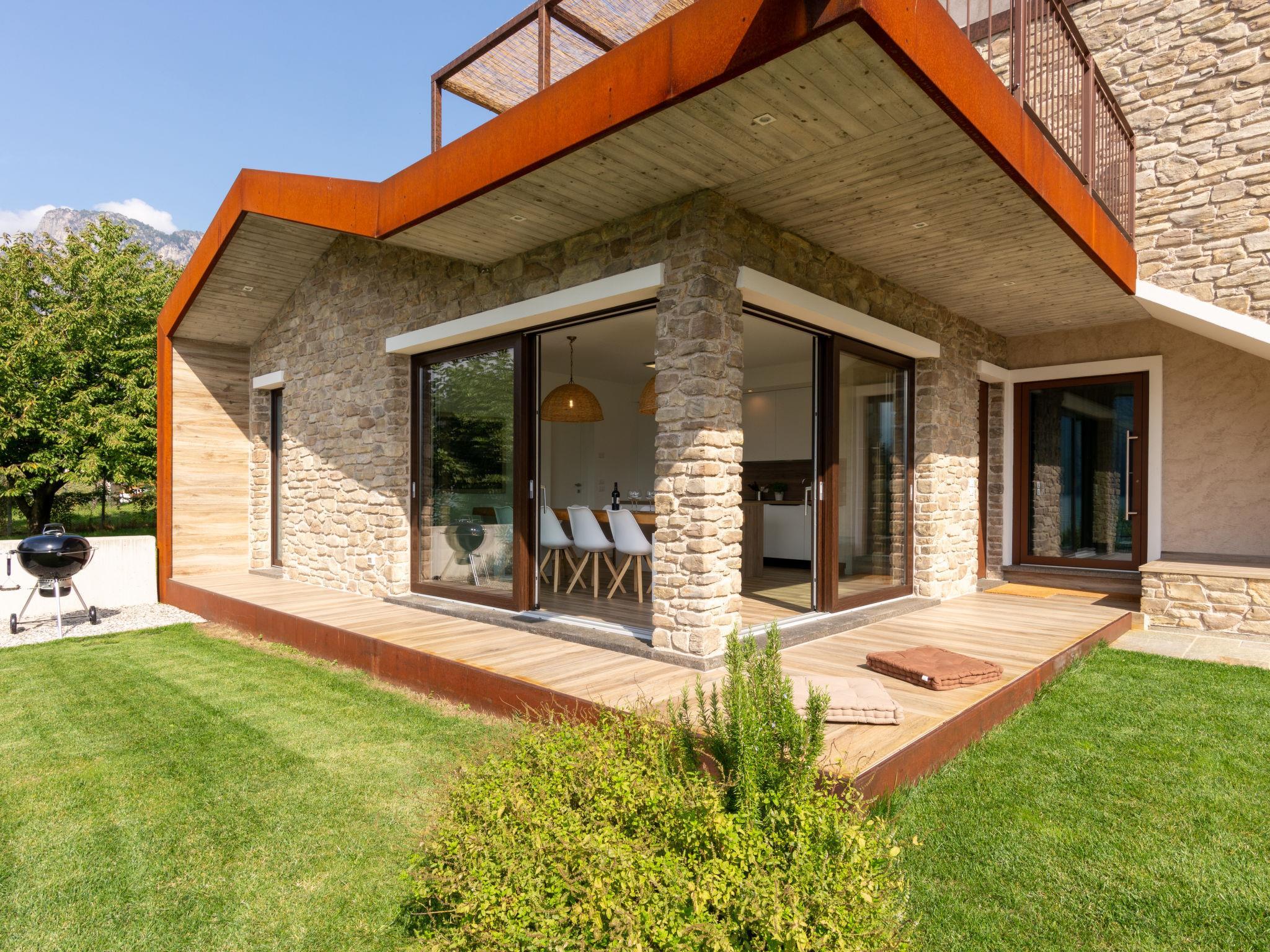 Modernes Haus "Brezza di Lago", einseitig angebaut. 2 Wohnungen im Ferienhaus. 200 m vom Zentrum von Verceia, 16 km vom Zentrum von Chiavenna, 67 km vom Zentrum von Como, in einem Wohnquartier, 5 m vom See, in einer Sackgasse. Einkaufsgeschäft 450 m, Supermarkt 3 km, Bushaltestelle 40 m, Bahnstation "Verceia" 1 km, Sandstrand "Lago di Como: Spiaggia 'La Punta'" 9 km, Kieselstrand "Verceia" 150 m, Freibad 12 km, Hallenbad 16 km. Jacht-Hafen 5 m, Golfplatz (18 Loch) 42 km. Nahe gelegene Sehenswürdigkeiten: Museo Etnografico Valle Codera, Tempieto di San Fedele, Parochiale della Santissima Trinitá. Bekannte Skigebiete sind gut erreichbar: Skiarea Valchiavenna. Wandergebiete: Sentiero Roma, Sentiero Italia, Pian di Spagna. Bitte beachten: Hauptstrasse 20 m vom Haus. Eisenbahnlinie 20 m vom Haus.
