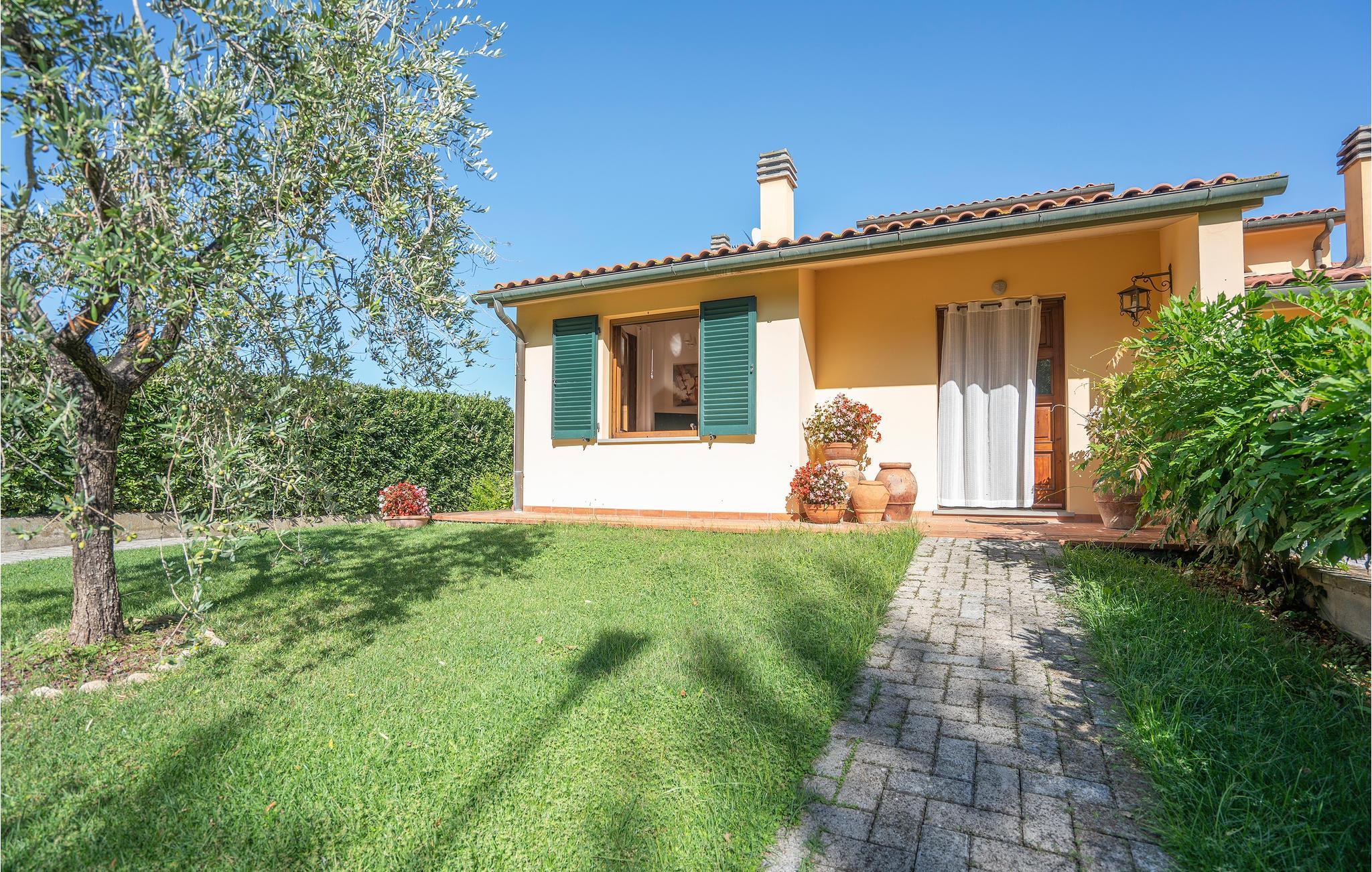 Schöne Ferienwohnung in Zweifamilienhaus in der Nähe von Lajatico, Heimatstadt des Tenors Andrea Bocelli, in der Provinz von Pisa, mit Privatgarten und fantastischem Panoramablick auf das Tal, wo sich das einzigartige Amphitheater im Freien Teatro del Silenzio befindet, 300 m vom Haus entfernt, und wo einmal jährlich im Juli ein Konzert des weltberühmten Tenors gehalten wird. Gepflegte und elegante Einrichtung mit moderner Ausstattung. Schöner, privater und umzäunter Garten, ausgestattet, um entspannende Stunden in grüner Umgebung zu verbringen. Einige der schönsten toskanischen Kunststädte sind leicht erreichbar: 20 km Volterra, die Hügelstadt etruskischen Ursprungs; 32 km San Gimignano, die mittelalterliche Stadt der Türme; 50 km Pisa mit dem berühmten Schiefen Turm; 56 km die lebendige Hafenstadt Livorno Lajatico mit Geschäften aller Art ist 200 m entfernt und auch zu Fuß erreichbar. 40 km die schönen Sandstrände der Etruskerküste.