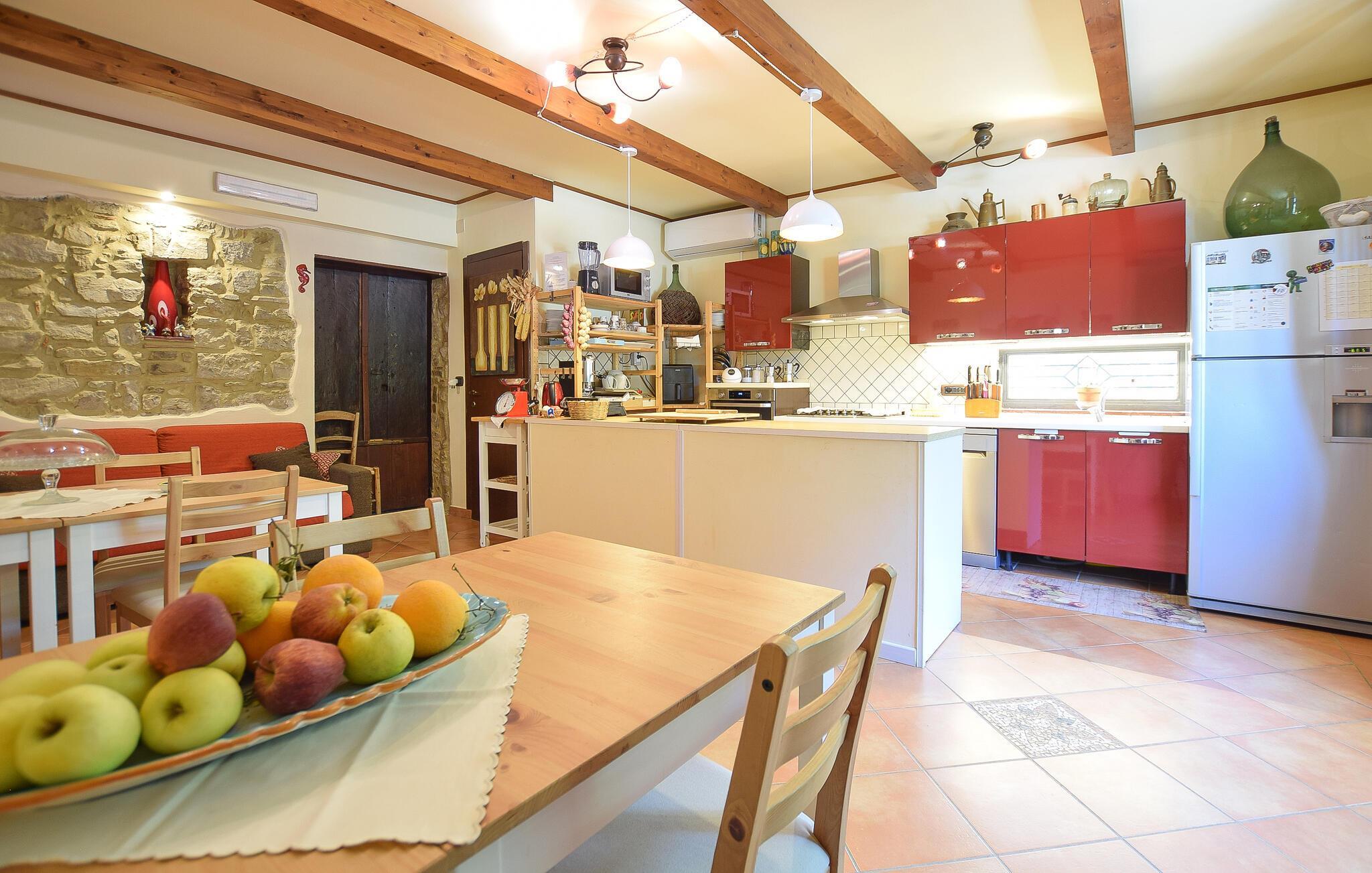 Im Inneren der Ferienwohnung erwartet Sie eine gut ausgestattete, moderne Küche, in der Sie ein italienisches Abendessen zubereiten können. Genießen Sie Ihre Mahlzeiten im großzügigen Essbereich, der mit viel Holz und warmen Farbtönen eine einladende Atmosphäre schafft. Nutzen Sie die Terrasse, um Ihr Frühstück mit einem Blick auf die bezaubernde umliegende Landschaft zu genießen. Setzen Sie sich in den gemütlichen Gartenbereich, der mit komfortablen Sitzmöbeln und Sonnenliegen ausgestattet ist, und genießen Sie die Ruhe und das Grün um Sie herum. Für Entspannung pur sorgt Ihr Whirlpool.