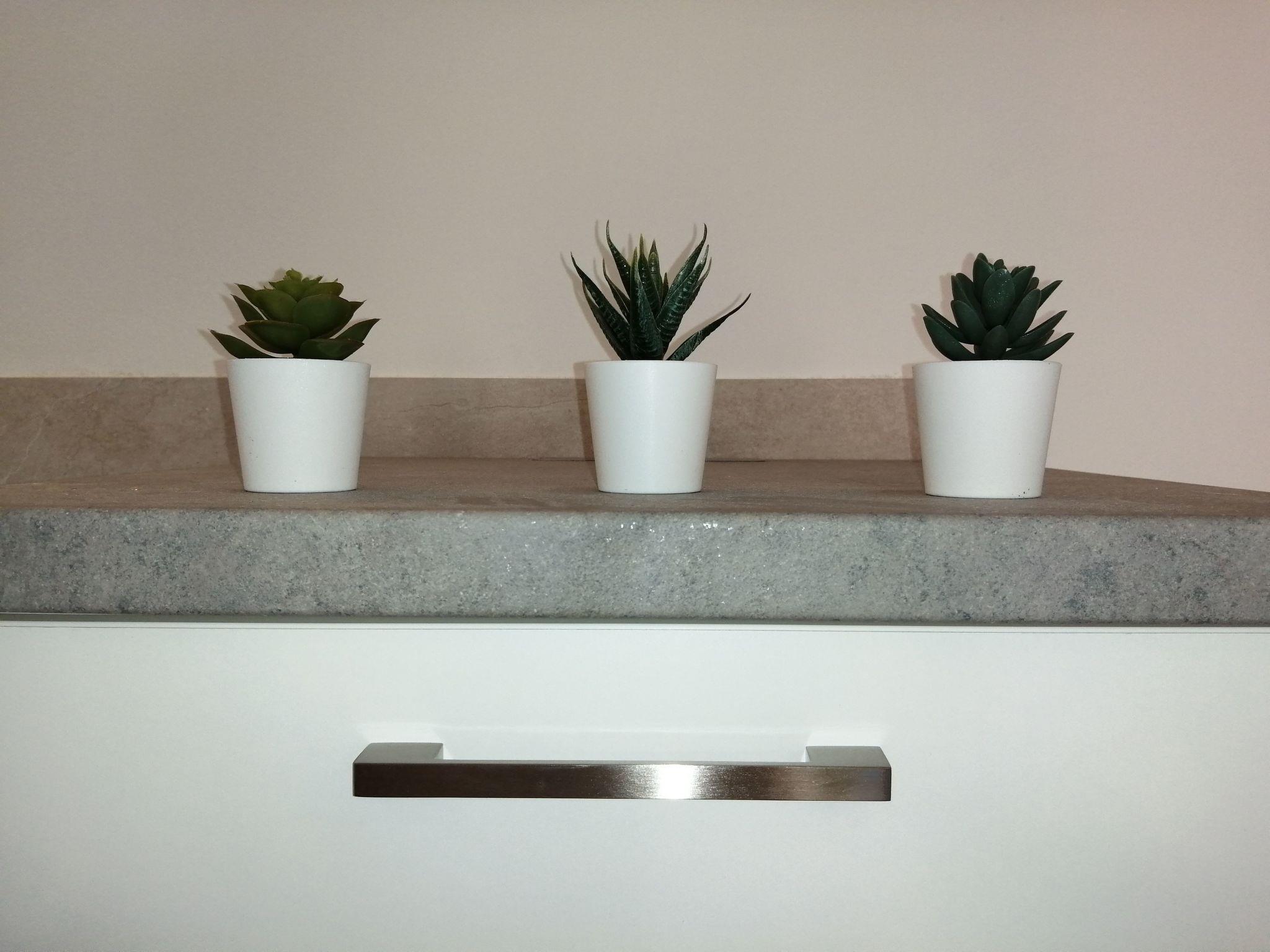 Die Unterkunft verfügt über einen Wohnbereich mit einer Küche, die alle Annehmlichkeiten bietet (vier Gasflammen, Backofen, Kaffeemaschine, Kühlschrank mit Gefrierfach, Geschirrspüler) mit einem Esstisch für 4 Personen und ein großes Wohnzimmer mit einem Schlafsofa für zwei Personen. Es gibt ein Schlafzimmer mit einem Doppelbett (160x190 cm). Das Bad ist mit einer großen Dusche, Waschbecken, WC, Bidet und Waschmaschine ausgestattet.