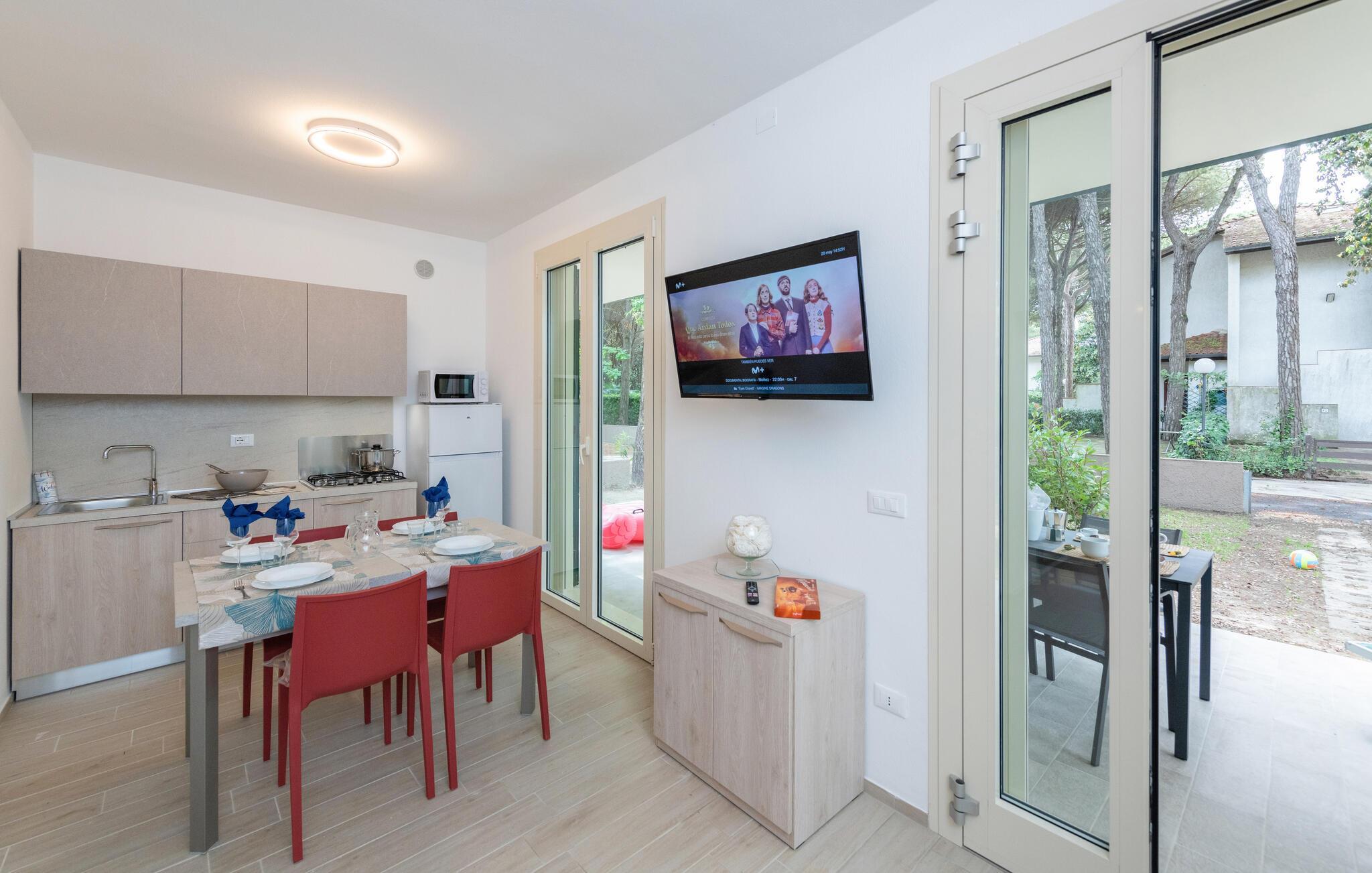 Ein vergnügter Urlaub wird hier auf dem Programm stehen: Willkommen an der Küste der Emilia-Romagna, nahe des Po-Deltas. Hier freuen Sie sich über die ständige Nähe zum Wasser, und können jederzeit einen erfrischenden Sprung ins kühle Nass des Meeres oder des Gemeinschaftspools wagen. Ihre Unterkunft liegt in einer ruhigen Wohnecke der Anlage, und bietet Ihnen allen Komfort, den Sie sich für einen gelungenen Urlaub nur wünschen könnten.