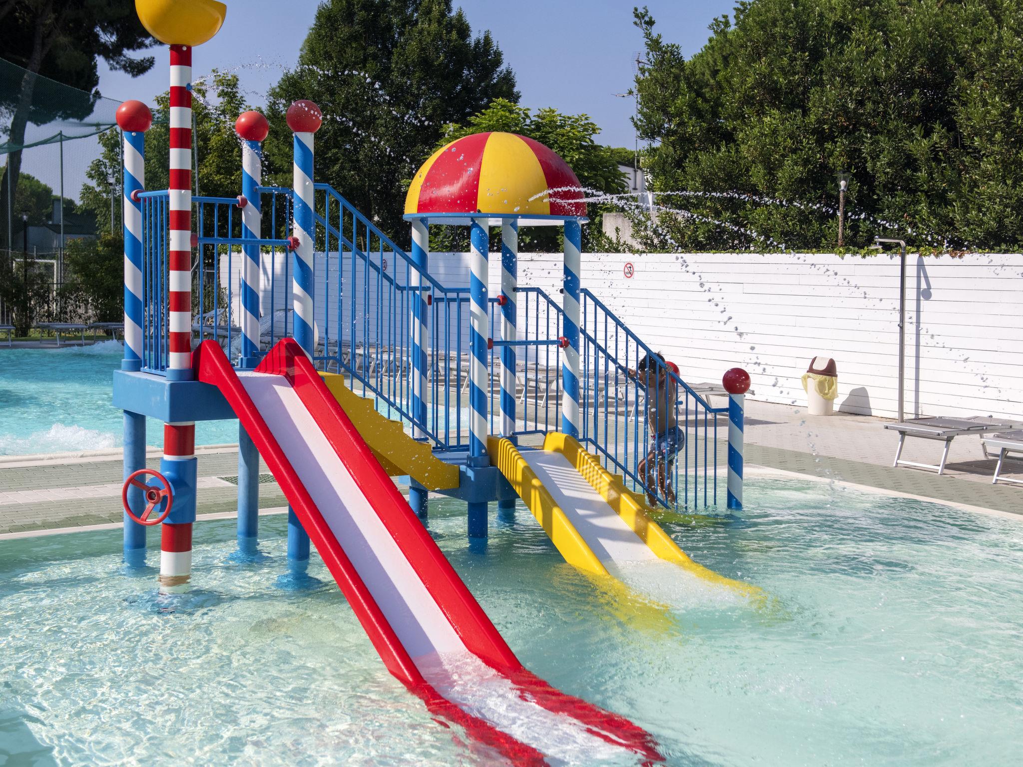 Lidi Ferraresi: Grosse, kinderfreundliche Ferienanlage "Mare e Pineta", umgeben von Bäumen. 500 m vom Zentrum von Lido di Spina, 1 km vom Zentrum von Lido degli Estensi, 500 m vom Meer, 500 m vom Strand, im Grünen. Zur Mitbenutzung: naturbelassenes Grundstück 16 ha mit Pflanzen und Bäumen, Schwimmbad (25 x 12 m, 140 cm tief, saisonale Verfügbarkeit: 16.Mai. - 20.Sep.). Kinderbecken, Rutschbahn, Aussendusche, Sprudelbad, Basketball, Boccia, Beachvolleyball. In der Anlage: Empfang, Restaurant, Bar, Wireless LAN, Sauna (extra). Fitnessraum (extra). Einkaufsmöglichkeit, Kiosk, Waschmaschine, Wäschetrockner (zur Mitbenutzung, extra), Fahrradverleih. Parkplatz (beschränkte Anzahl). E-Ladestation. Bushaltestelle 300 m, Bahnstation "Ravenna" 30 km, Park "Parco del Delta del Po" 46 km. Nahe gelegene Sehenswürdigkeiten: Comacchio 10 km, Abbazia di Pomposa 30 km, Ravenna 31 km, Mirabilandia 46 km, Ferrara 60 km. Bitte beachten: Animation in der Saison. Geeignet für Familien.