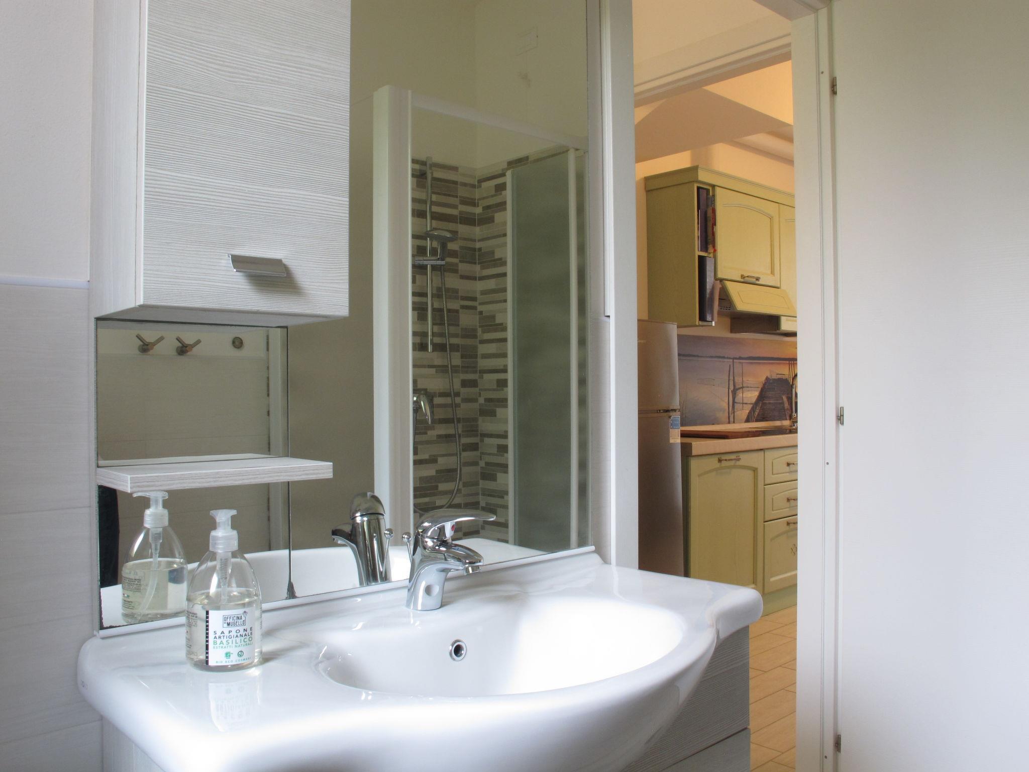 "Veronica", 3-Zimmer-Reihenhaus 58 m2 auf 2 Stockwerken. Hell, komfortabel eingerichtet: Wohn-/Esszimmer mit Sat-TV und Klimaanlage. Ausgang zum Garten, zur Terrasse. Offene Küche (Geschirrspüler, 4 Induktionskochplatten, Toaster, Wasserkocher, Mikrowelle, Tiefkühler). Dusche/Bidet/WC. Obergeschoss: 1 Doppelzimmer mit Klimaanlage. Ausgang zum Balkon. 1 Zimmer mit 2 Betten. E-Heizung. Balkon 10 m2, Terrasse 10 m2, überdacht, Garten 182 m2. Terrassenmöbel. Zur Verfügung: Waschmaschine, Bügeleisen, Fliegengitter. Internet (WLAN, gratis). Parkplatz (eingezäunt, 2 Autos) beim Haus, Breite 230 cm. Bitte beachten: geeignet für Familien. Nichtraucher-Haus. Eigener Eingang. IT038006B4KCD3WF7D