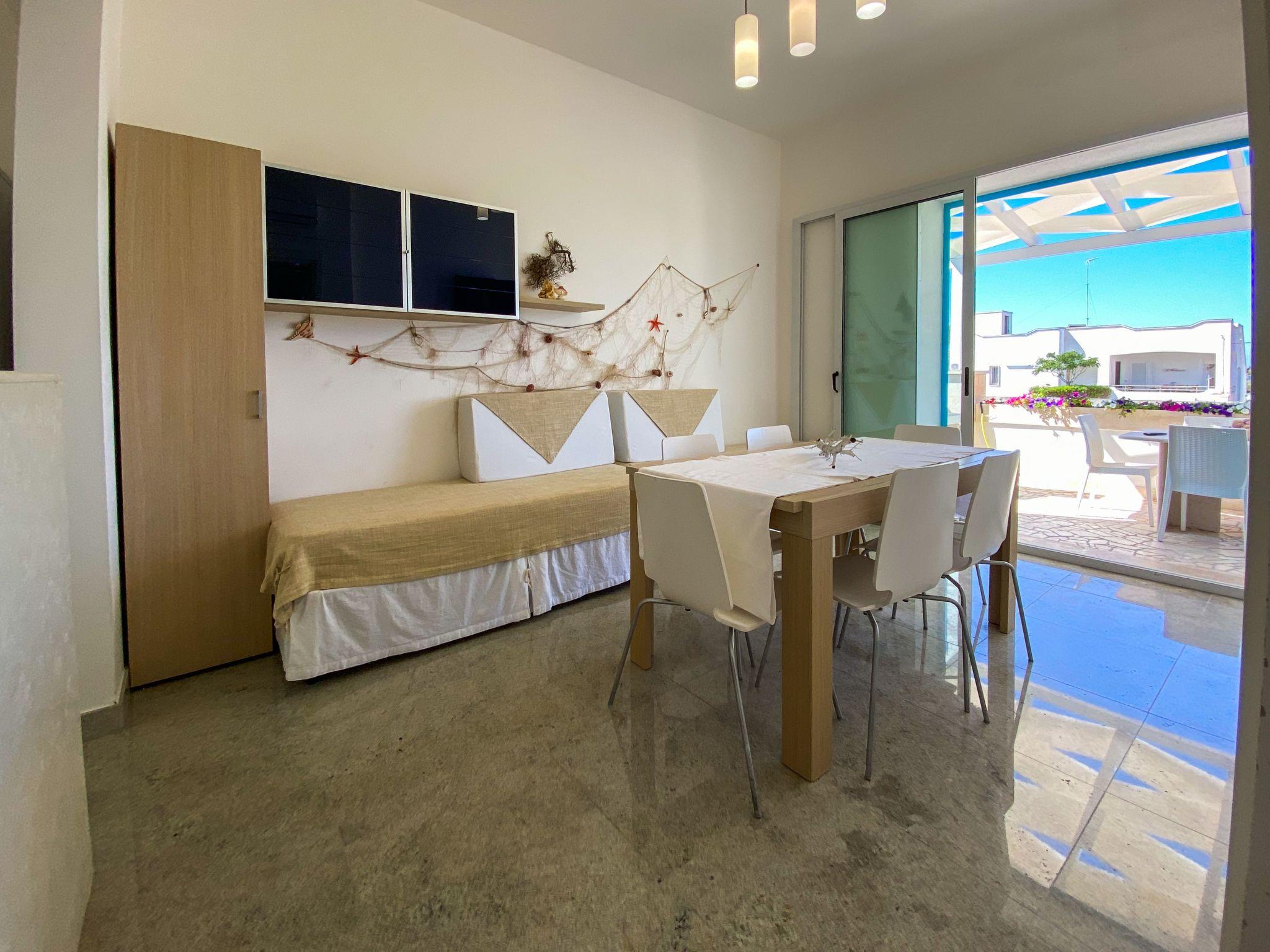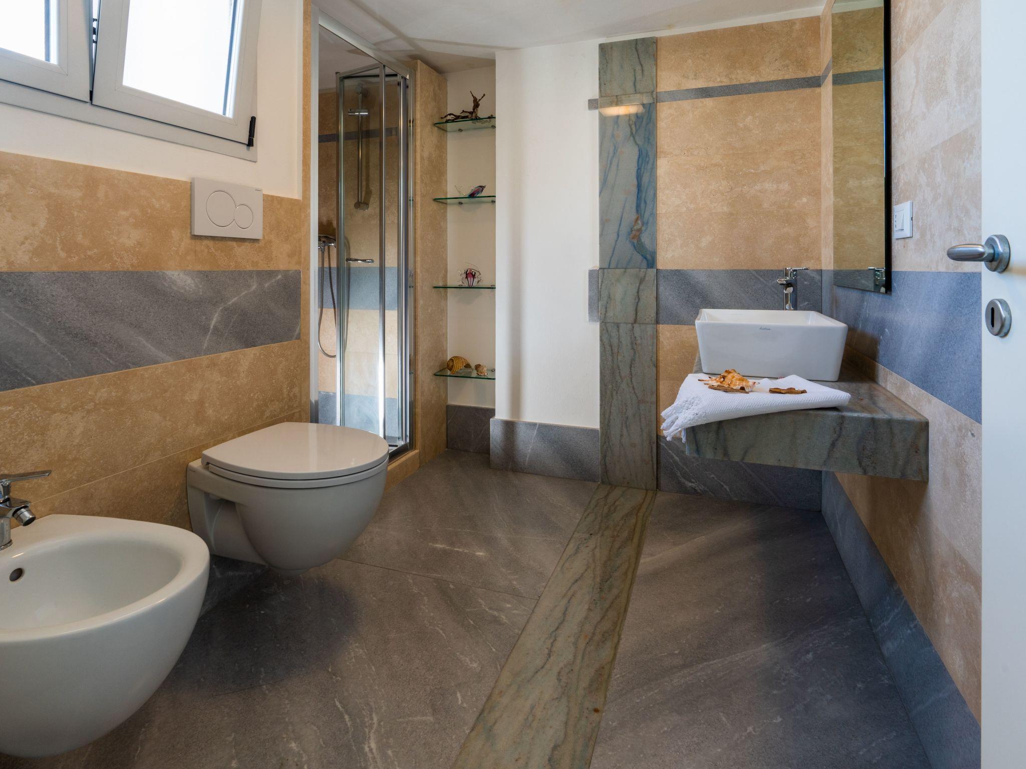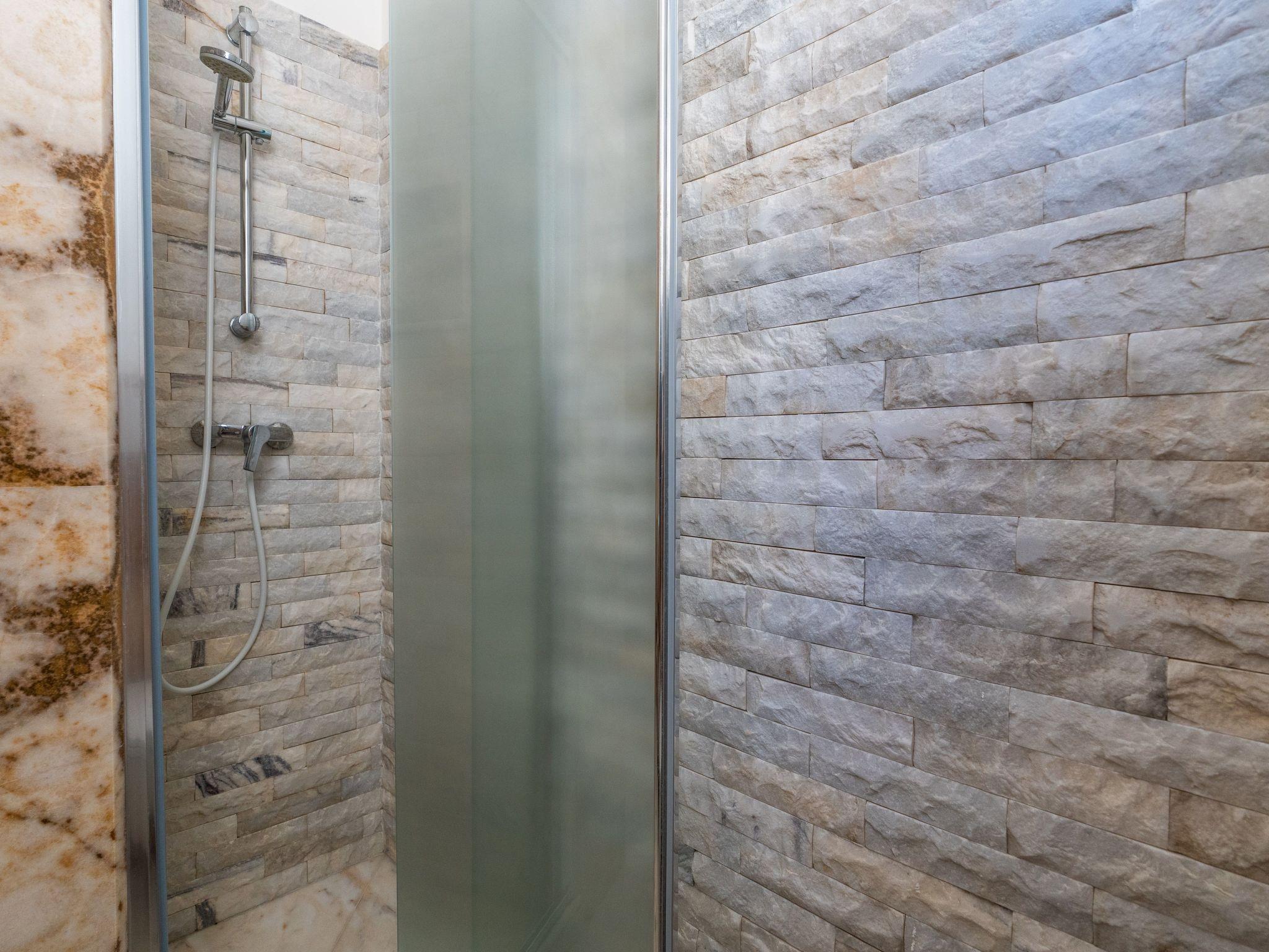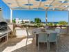 Auf der Veranda vor der Wohnung finden Sie einen Tisch und Stühle. Hier können Sie Ihre Mahlzeiten einnehmen und den Blick auf das Meer genießen. Es gibt auch einen privaten Grill. Auf der hinteren Veranda gibt es zwei Außenduschen. Eine Treppe führt auf die Dachterrasse, von der aus Sie eine herrliche Aussicht genießen können.