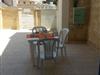 Im Außenbereich befindet sich eine Terrasse mit Tisch und Stühle um draußen gemütlich zu essen.