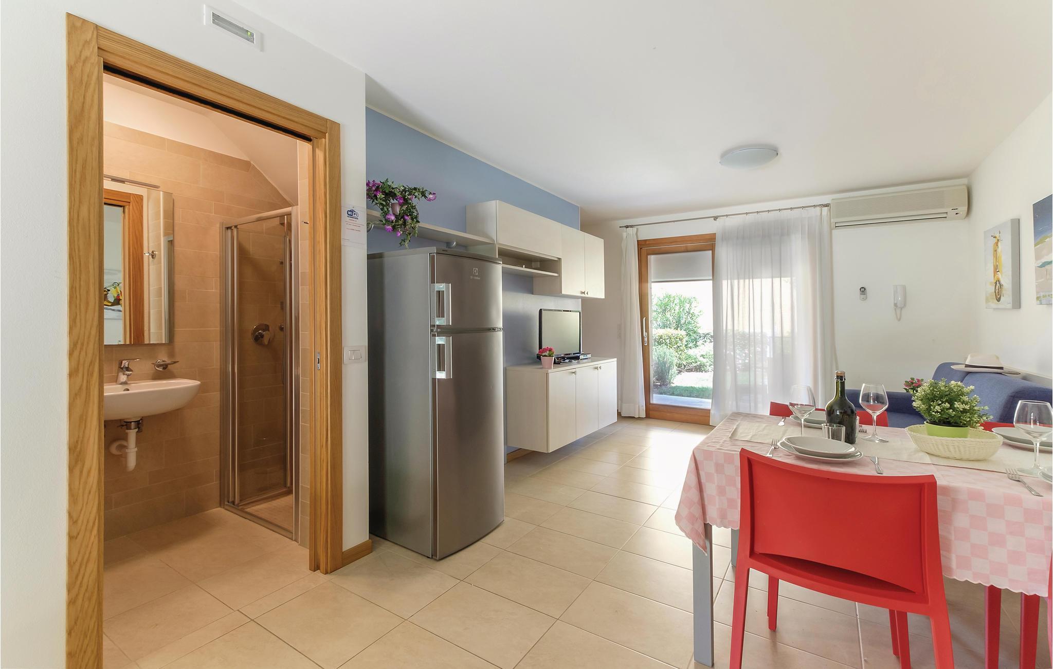 Reihenhaus in einer schönen Residenz bei Lignano Sabbiadoro mit ausgestattetem Pool. Der Strand ist 600 m und das Zentrum von Lignano Sabbiadoro etwa 500 m entfernt. Im Erdgeschoss: Wohnzimmer mit Kochnische, Esstisch, Doppelschlafsofa und Bad mit Dusche. Auf der ersten Etage gibt es ein Doppelbettzimmer, ein Zweibettzimmer, ein Badezimmer mit Dusche. Im Erdgeschoss, mit direktem Blick auf den Pool, befindet sich der private Garten mit einer schönen Terrasse mit Grill und Gartenmöbeln, ideal für Entspannung und angenehme Abende mit Ihrer Familie. Klimaanlage und Safe sind auch vorhanden. Das Anwesen liegt etwa 600 m vom langen Sandstrand entfernt (zu Fuß oder mit dem Fahrrad erreichbar), der entlang des Badeortes bis zur Mündung des Flusses Tagliamento verläuft. Im Umkreis von 300 m gibt es Restaurants, Bars, Supermärkte und andere kommerzielle Aktivitäten. Darüber hinaus gibt zahlreiche Radwege, ideal für kurze oder lange Ausflüge in die Umgebung. Lignano Sabbiadoro ist ein berühmter Badeort in der Region Friaul-Julisch Venetien, der sich durch viel Grün und ausgedehnte Pinienwälder wie den berühmten Hemingway Park auszeichnet. Hier erwarten Sie auch viele Attraktionen für Erwachsene und Kinder (Golf Club, Zoo Park und verschiedene Wasser- und Themenparks). Für Kunstliebhaber ist die charmante Stadt Venedig 100 km entfernt und das schöne Triest etwa 95 km. Sehenswert ist auch die Stadt Aquileia (50 km), ein berühmter Hafen des Römischen Reiches mit seinem interessanten archäologischen Stätten und seinem renommierten Nationalen Archäologischen Museum. Hier finden Sie auch eine bezaubernde Kathedrale mit wunderschönen Mosaiken. Das 30 km entfernte Portogruaro ist reich an Geschichte, Museen und Denkmälern, sowie die Stadt Concordia mit ihren Ruinen der antiken römischen Stadt. Besuchen Sie auch die Stadt Cividale del Friuli (70 km, UNESCO-Weltkulturerbe), ein altes mittelalterliches Dorf mit dem berühmten Dom und Gebäuden aus der longobardischen Zeit. Ebenfalls sehenswert ist die Stadt San Daniele del Friuli (65 km), auf den Hügeln über der Stadt Udine, mit ihrem Dom und der historischen Guarneri-Bibliothek mit einer Sammlung antiker Texte. Diese Stadt ist auf der ganzen Welt auch für die Herstellung von IGP-Rohschinken bekannt. Verpassen Sie nicht die Möglichkeit, Schinkenfabriken zu besuchen und an köstlichen Verkostungen teilzunehmen. Anreise ausschließlich 17-19 Uhr.