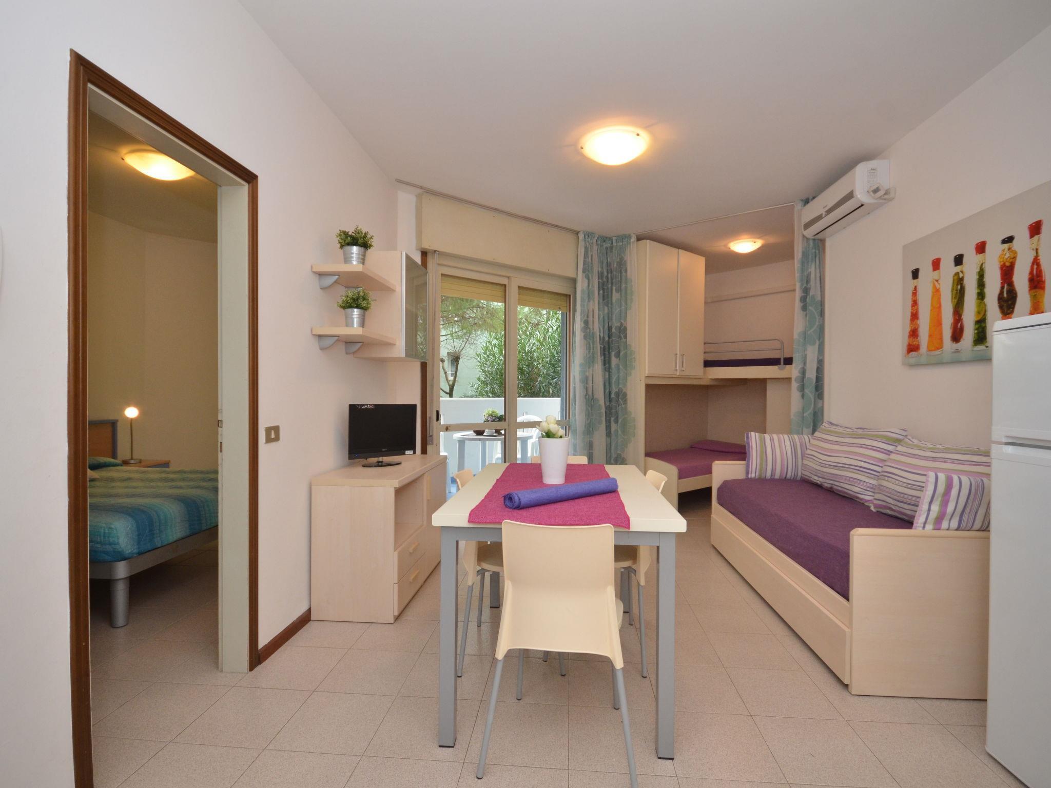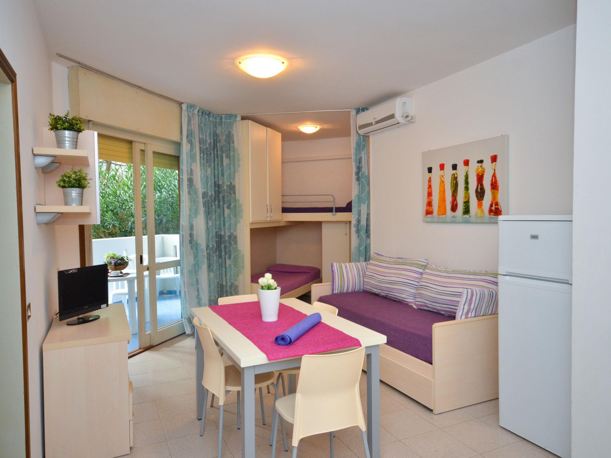 Appartementhaus "Residence Marco Polo", auf 8 Stockwerken. Im Ortsteil Sabbiadoro, 200 m vom Zentrum von Lignano-Sabbiadoro, 13 km vom Zentrum von Bibione, 95 km vom Zentrum von Trieste, 50 m vom Meer, Strasse zu überqueren. Zur Mitbenutzung: Grundstück (eingezäunt), gepflegter Garten mit Rasen und Bäumen, Schwimmbad (240 m2, saisonale Verfügbarkeit: 07.Jun. - 07.Sep.). Kinderbecken, Terrasse. Im Hause: Fahrstuhl, Fahrradverleih. Parkplatz beim Haus auf dem Grundstück, Gemeinschaftsgarage beim Haus. Maße: Höhe 205 cm. Einkaufsgeschäft, Restaurant 200 m, Bushaltestelle 600 m, Bahnstation "Latisana (Milano-Venezia-Triest)" 20 km, Sandstrand 50 m. Golfplatz (18 Loch) 7.2 km. Strandservice: ab ca. Anfang Mai bis ca. Mitte September sind 1 Sonnenliege, 1 Liegestuhl und 1 Sonnenschirm pro Wohneinheit im Mietpreis enthalten.