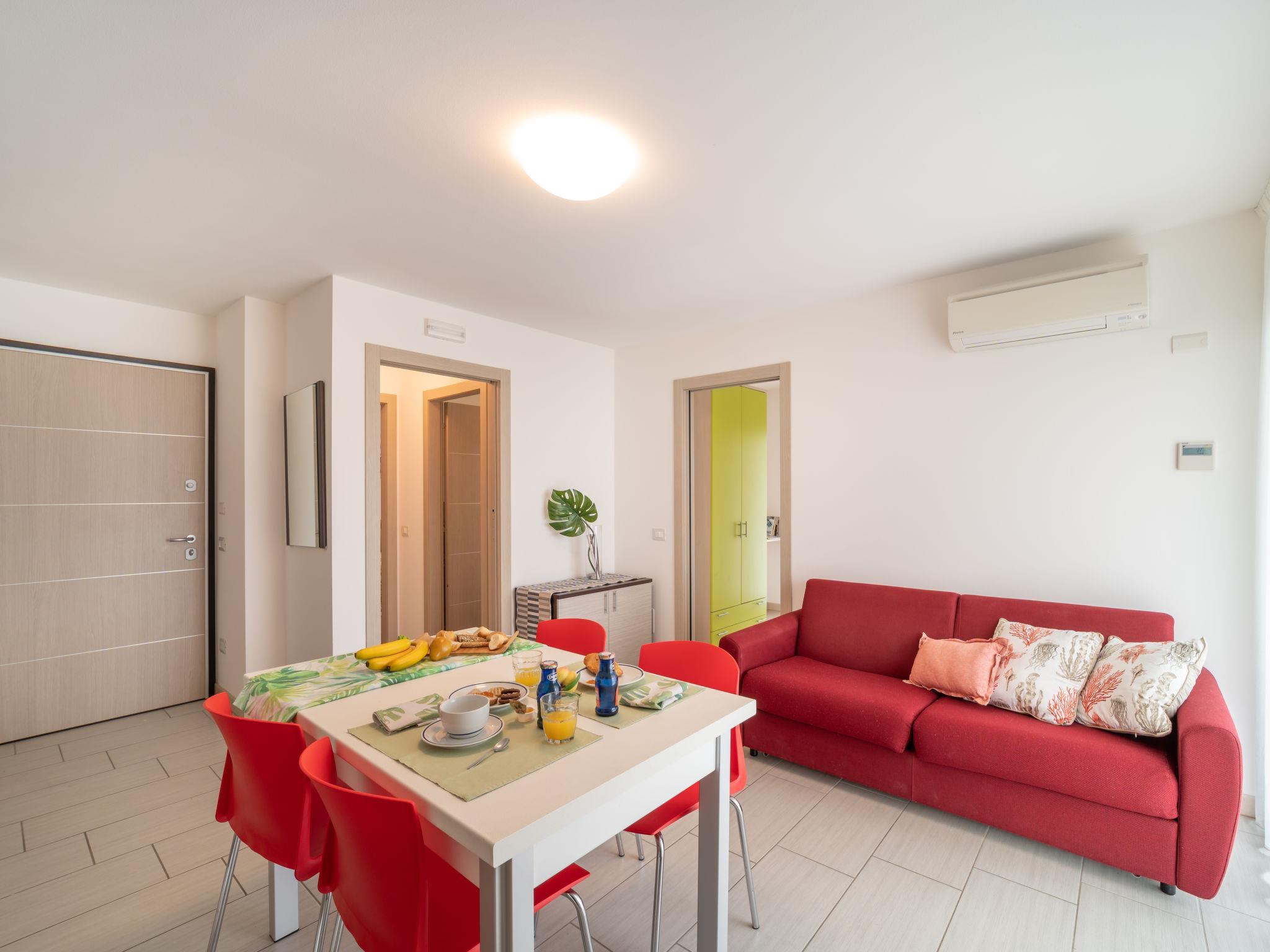 3-Zimmer-Wohnung 48 m2. Geschmackvoll eingerichtet: Wohn-/Schlafzimmer mit 1 Doppeldiwanbett, Esstisch, Küchenblock und Sat-TV. Ausgang zum Balkon. 1 Doppelzimmer. 1 Zimmer mit 2 Betten. Offene Küche (Geschirrspüler, 4 Glaskeramikplatten, Mikrowelle, Tiefkühler, elektrische Kaffeemaschine). Dusche/Bidet/WC. Klimaanlage, Warmluftheizung. Heizung nicht in allen Räumen. Balkon 25 m2. Balkonmöbel. Zur Verfügung: Waschmaschine, Safe, Kinderhochstuhl, Babybett. Internet (Wireless LAN, gratis). Parkplatz (1 Auto) beim Haus. IT030049B4Z4PQZJHT
