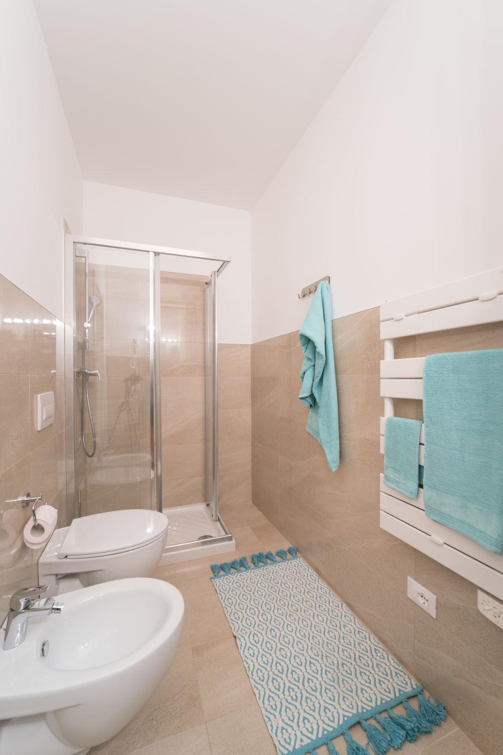 3-Zimmer-Wohnung 45 m2, im Obergeschoss. Modern und stilvoll eingerichtet: Wohn-/Schlafzimmer mit 1 Doppeldiwanbett, Esstisch, Küchenblock, Sat-TV, Klimaanlage und Warmluftheizung. Ausgang zum Balkon. 1 Doppelzimmer mit Klimaanlage und Warmluftheizung. 1 Zimmer mit 1 Bett, Klimaanlage und Warmluftheizung. Offene Küche (Geschirrspüler, 4 Induktionskochplatten, Gasherd, Mikrowelle, Tiefkühler, elektrische Kaffeemaschine). Dusche/WC. Balkon. Balkonmöbel. Zur Verfügung: Fliegengitter, Kinderhochstuhl, Babybett. Internet (WLAN, gratis). Parkplatz Nr. max. 5 m length (1 Auto), Höhe 210 cm, Breite 250 cm. Maximal 1 Haustier/Hund erlaubt. Es werden keine zusätzlichen Gebühren vor Ort fällig, ausgenommen der örtlichen Kurtaxe. Bettwäsche, Handtücher, Endreinigung und alle Energiekosten sind inkludiert. IT030049B4EV54XPC3