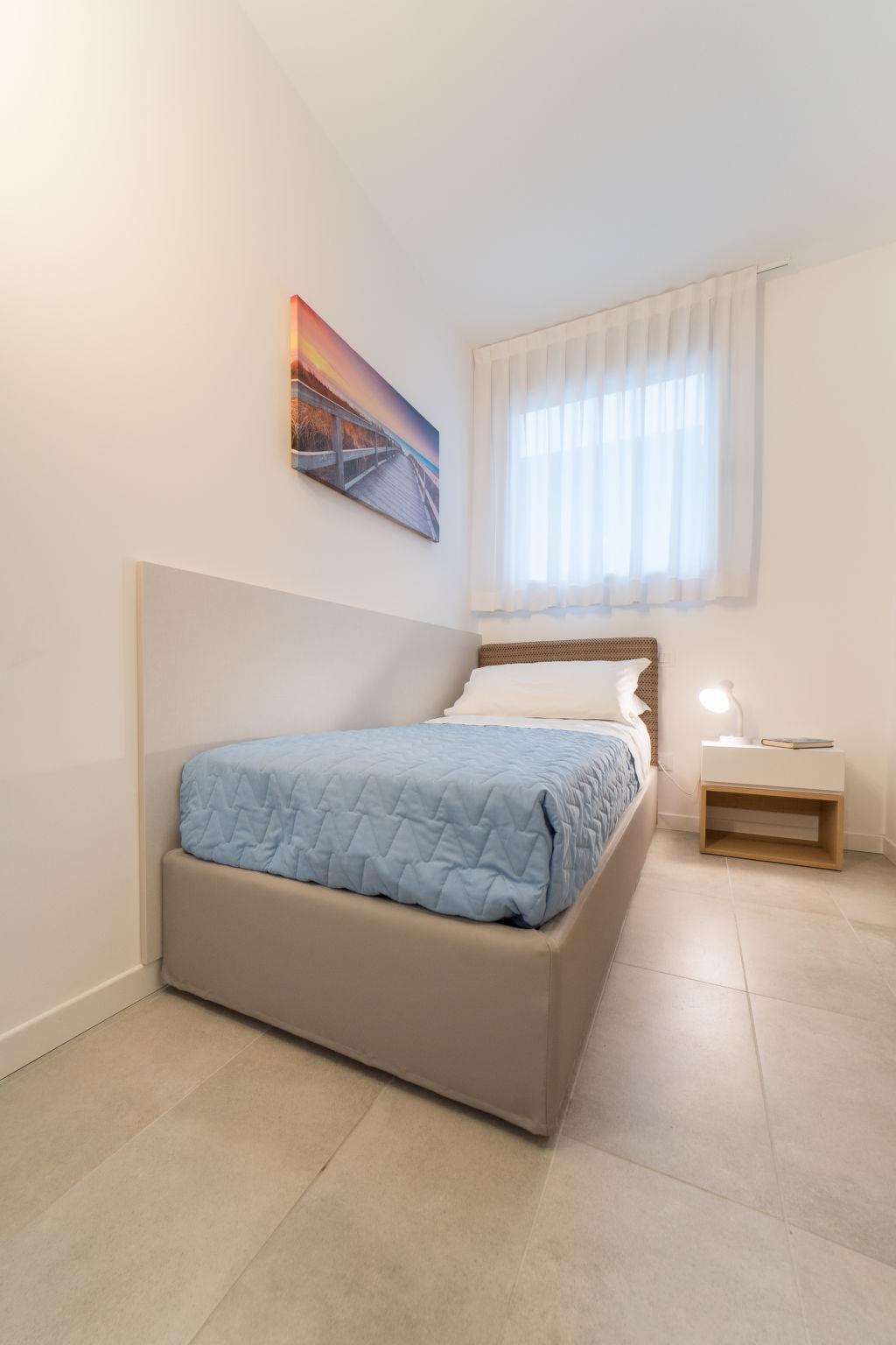 Appartementhaus "Torre Bianca", auf 8 Stockwerken, Baujahr 2019. 17 Wohnungen in der Residenz. Im Ortsteil Sabbiadoro, 250 m vom Zentrum von Lignano-Sabbiadoro, 13 km vom Zentrum von Bibione, 95 km vom Zentrum von Trieste, 400 m vom Meer. Im Hause: Fahrstuhl, Waschmaschine (zur Mitbenutzung, extra), Fahrradverleih. Parkplatz in 180 m. Supermarkt 350 m, Fußgängerzone, Bushaltestelle 250 m, Bahnstation "Latisana (Milano-Venezia-Triest)" 20 km, Sandstrand 400 m. Jacht-Hafen 1.2 km, Golfplatz (18 Loch) 7.2 km. Der Besitzer akzeptiert keine Jugendgruppen. Bitte beachten: Be- und Entladen am Ferienhaus möglich. Strandservice: Von ca. Anfang Mai bis ca. Mitte September sind jeweils 1 Liegestuhl, 1 Sonnenliege und 1 Sonnenschirm pro Wohnung im Mietpreis enthalten.