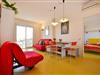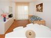 Kochnische(Kochplatte(4 Kochplatten, elektrisch), Kaffeemaschine, Mikrowelle, Kühl-/Gefrierkombination), Wohn-/Schlafzimmer(Einzelunterschiebebett, Doppelschlafcouch, TV(Satellit)), Badezimmer(Dusche, Toilette), Balkon, Klimaanlage, Gartenmöbel, Liegen, Sonnenschirm, Pool(Gemeinschaftliche Nutzung mit anderen Gästen, im Garten, Seperates Kinderschwimmbad (Tiefe 50 cm), geöffnet von 1/2 Mai bis einschließlich 1/2 Sep), Aufzug, Babybett (kostenpflichtig)